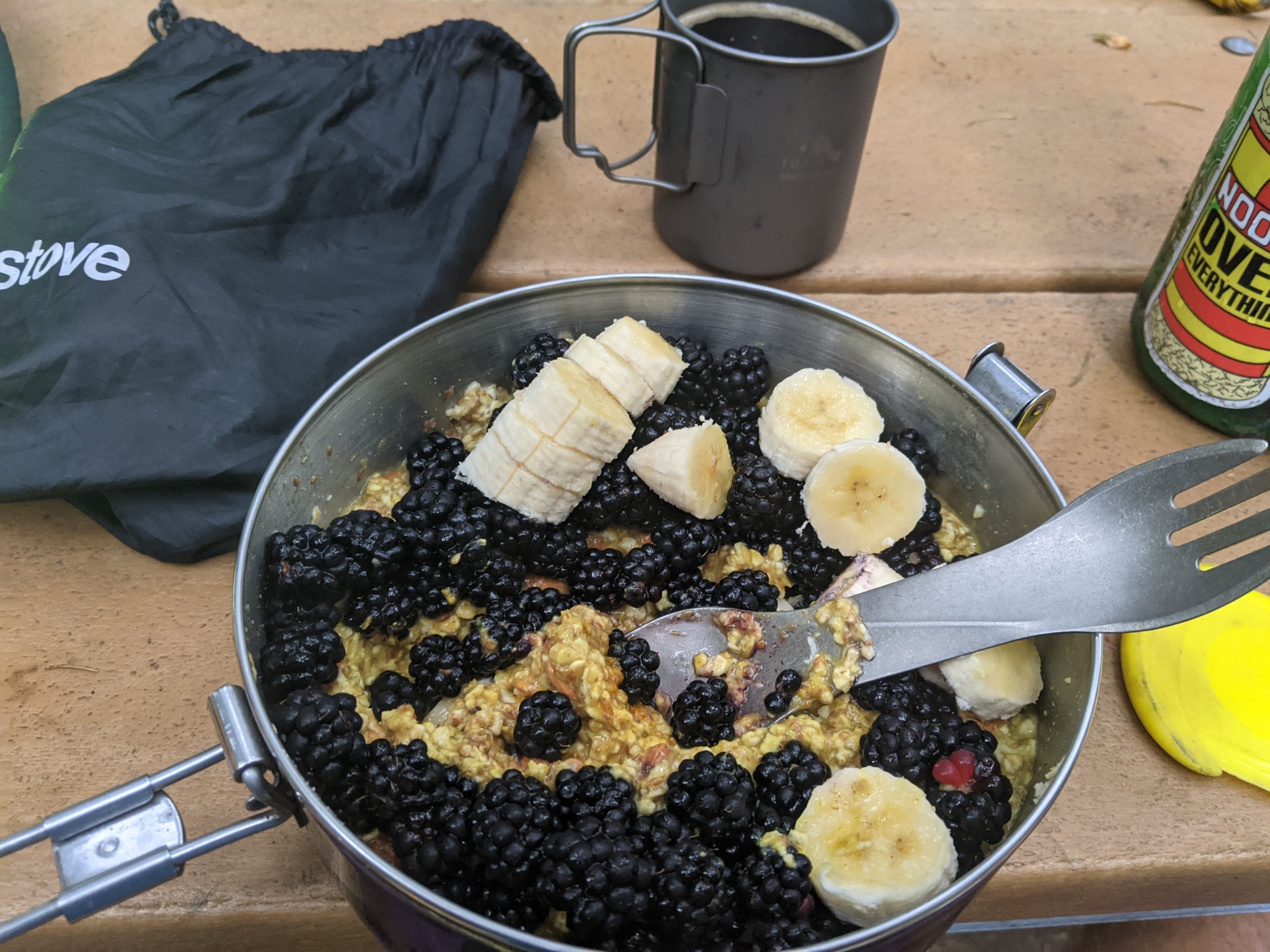 There were campers up untill 2 am last night. And I even saw someone with a fire even though there was a fire ban. You can tell the party campers by the exorbitant amount of stuff: their large tents, awnings, grills, griddles, full size mattresses, pets, and coolers for beer. These people graduate straight to RV as soon as their finances permit it. I wanted to make a bunch of noise now that they were the ones trying to sleep, but I just didn't have enough stuff to bang around or dogs to bark. We ate and packed in a light mist. The forecast was rain until 3 so we put away the tent before the rain got too bad. We left the park and and the rain was alot worse out of the trees. The cars on the interstate were kicking up huge mists. It wasn't as much raining as it was misting, but it made it hard to see going down hills. The mist would get all in your eyes. A few times I tried to wear my room jacket, but it was too hot. We planned our route using komoot, and it said there was a 2 mile, 800' hill with a 16% grade. I figured it was wrong, but sure enough, we found it. It was very steep, reminiscent of time zone hill, or stites hill, or anywhere in eastern Kentucky. I had to stop half way up to let my heart rate subside and a few times I was afraid I would run out of energy and fall over if I couldn't unclip.