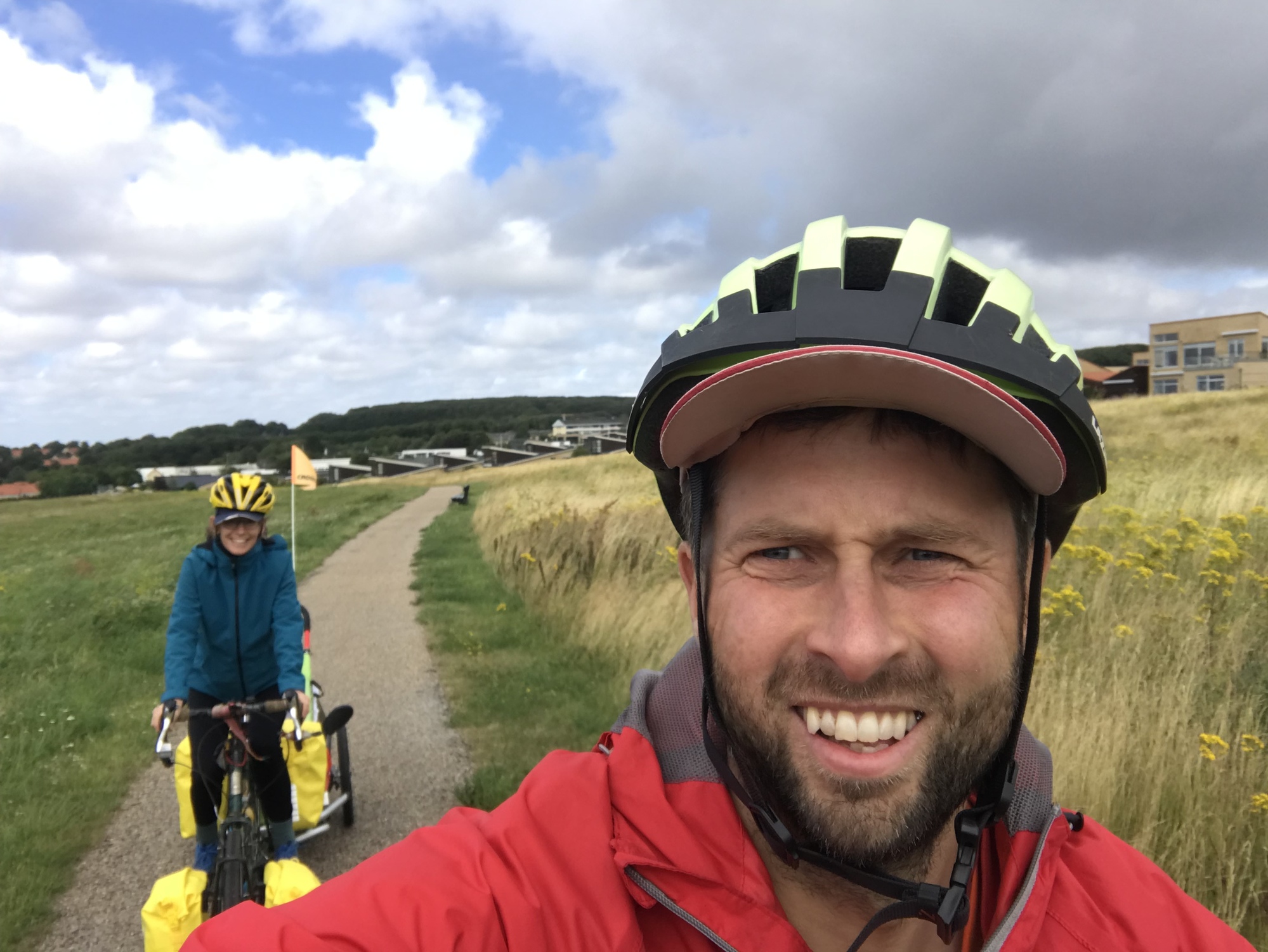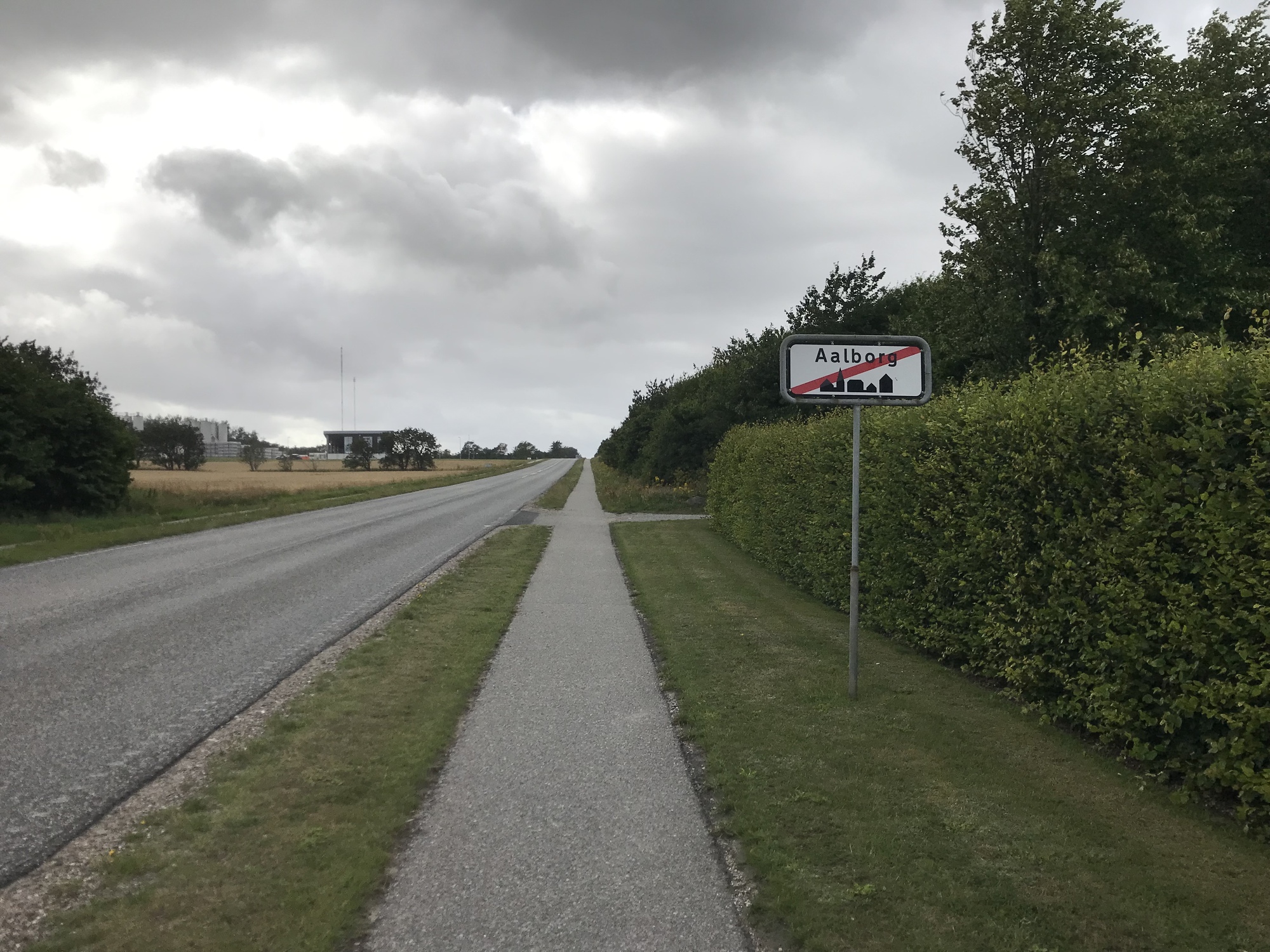 After the supermarket we cycled on some more paths through the rest of Aalborg then headed in a western direction out of town on a path beside a road directly into the face of a massive headwind. “Can I cycle right behind you?” Dea asked, and I felt like Wout Van Aert towing Jonas Vinegaard up the Pyrenees as we headed up a steep climb into the gale.
