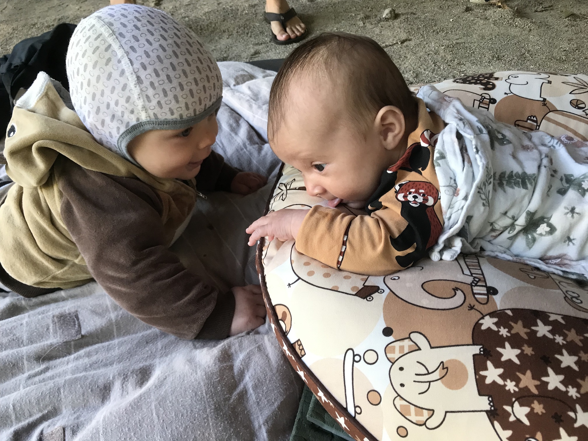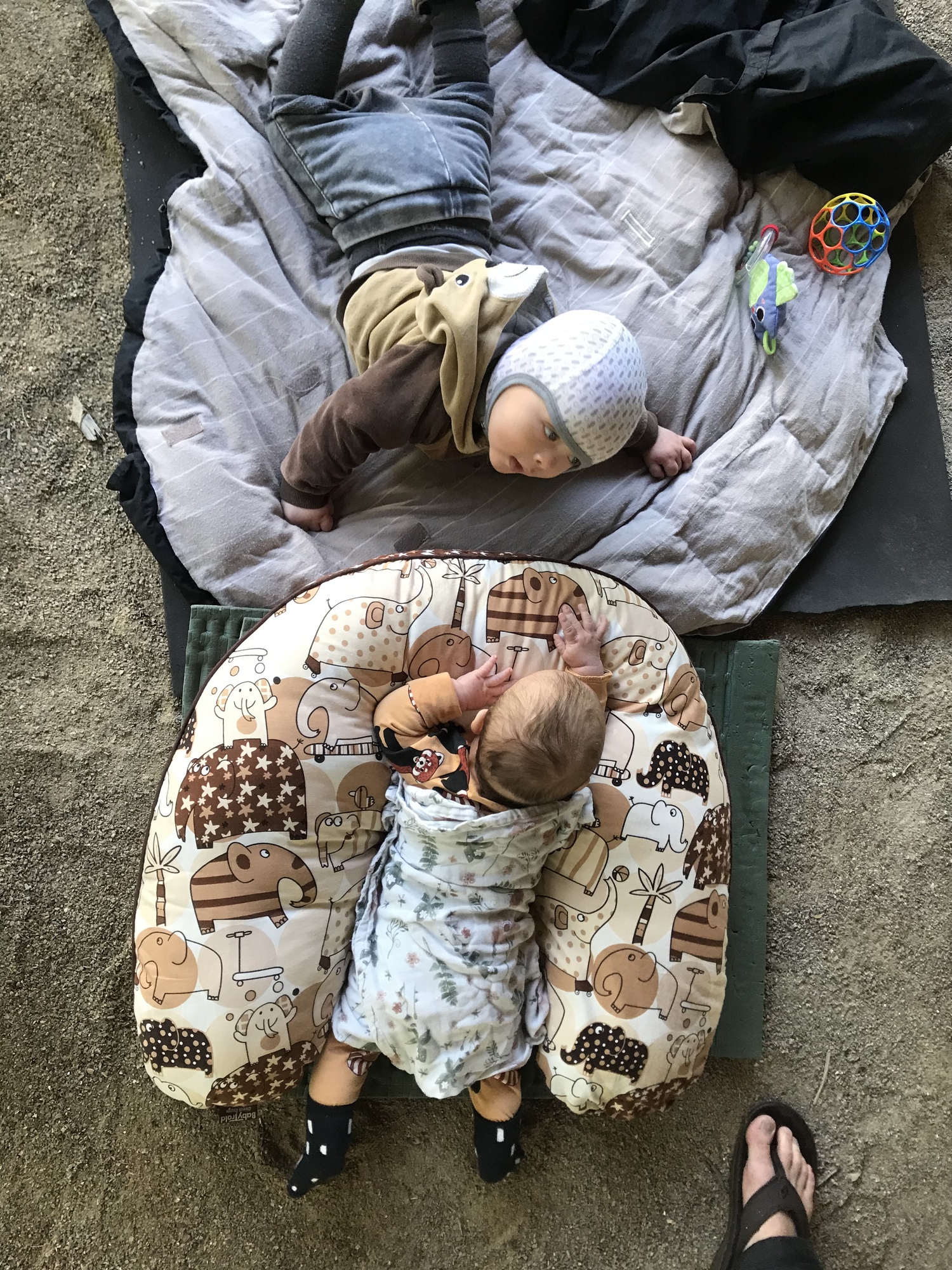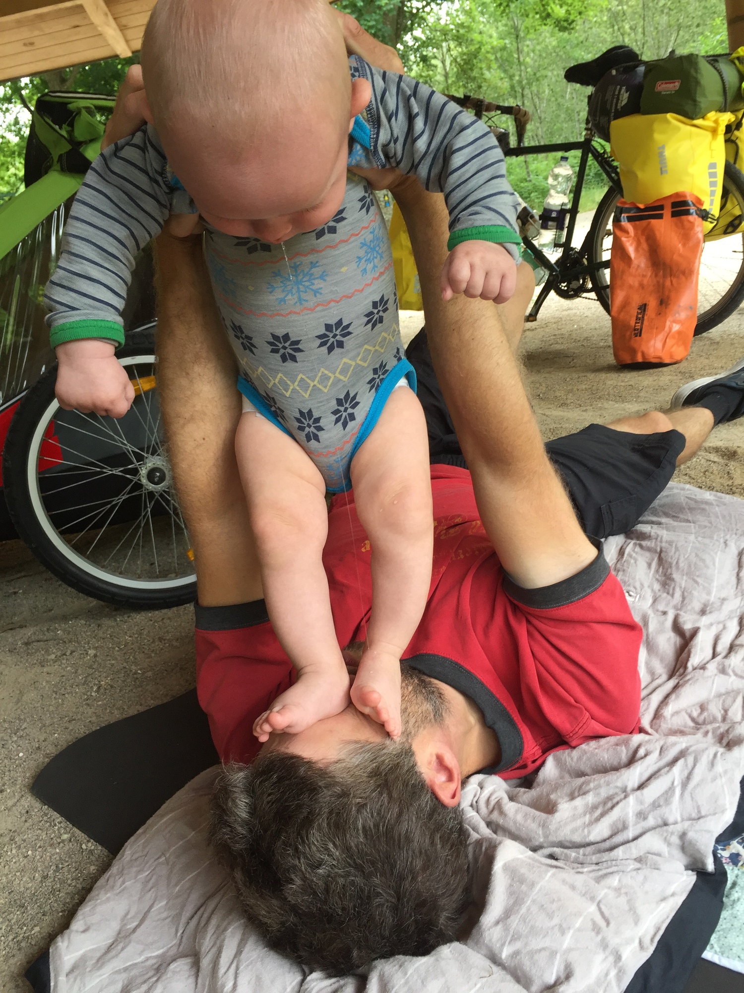 I was up with Kevin again at 5:30 to give Dea a chance to sleep. It might sound incredibly noble of me to keep doing that, but actually I only naturally sleep for seven hours before waking up and the early nights camping mean I’m quite happy to be up at that hour, especially as I get a little extra quality time with Kevin. Sometime after seven everybody else began to wake up and we ate breakfast and got ready for the day, all of which is just a very boring prelude to some incredibly cute baby photos.
