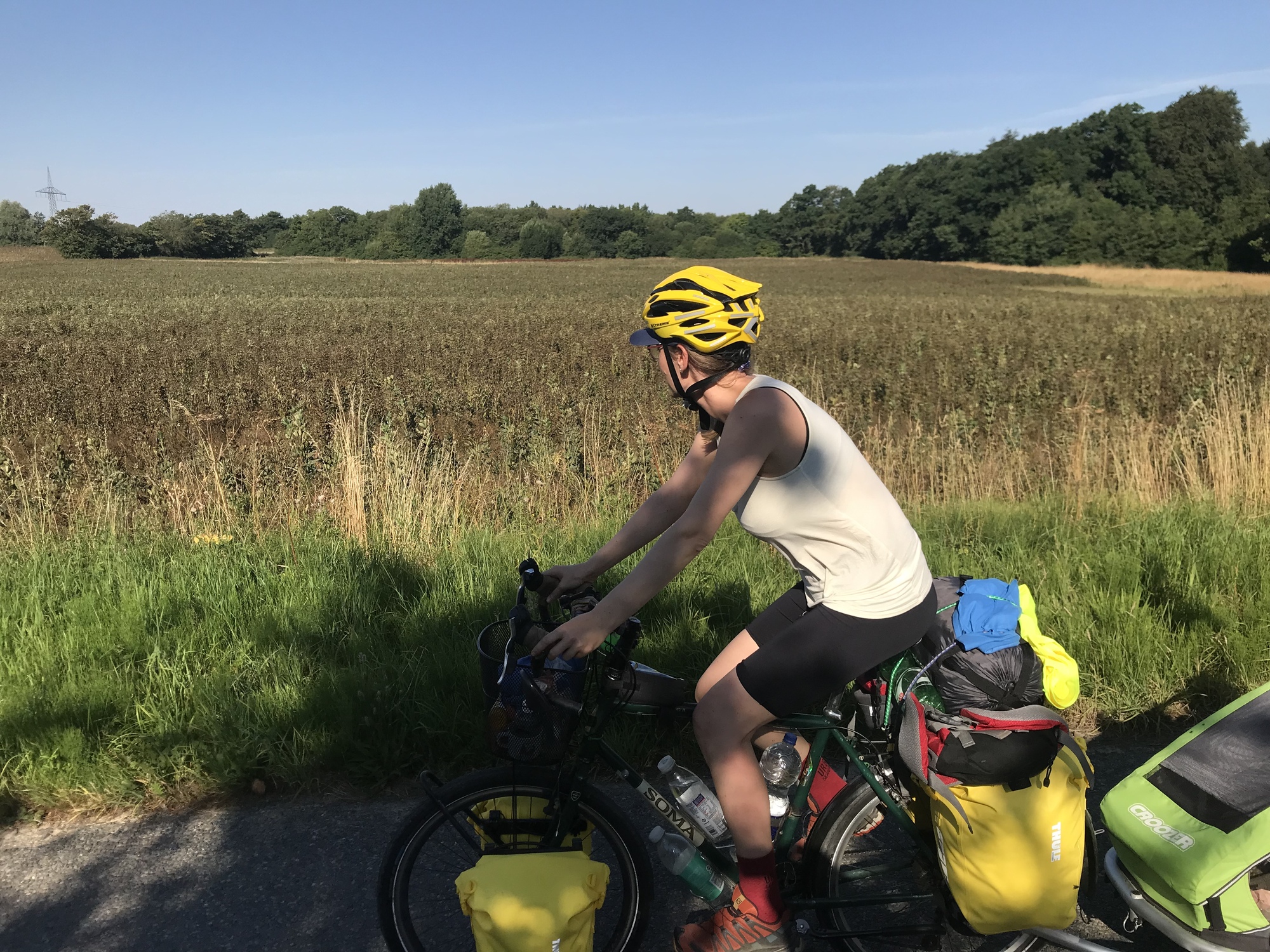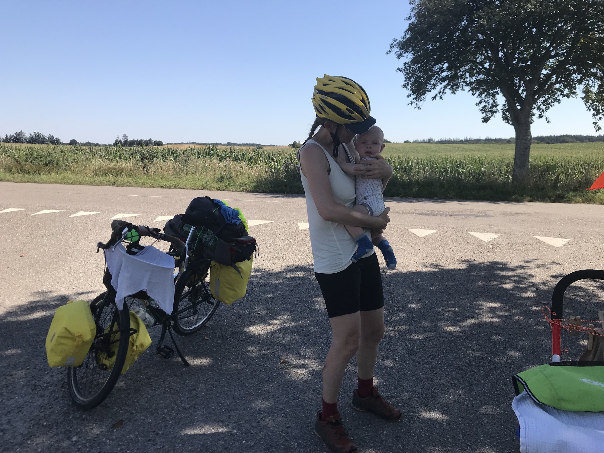 After a couple of hours it was time to hit the road again. I took over the role of towing the trailer as Dea was feeling tired. We had been taking it in turns each day but Dea hasn’t done much major exercise over the last year and also has to breastfeed, while as I usually work as a bicycle courier, this tour actually represents quite a decrease in my weekly mileage, so I really should be able to take on a bit more of the work.