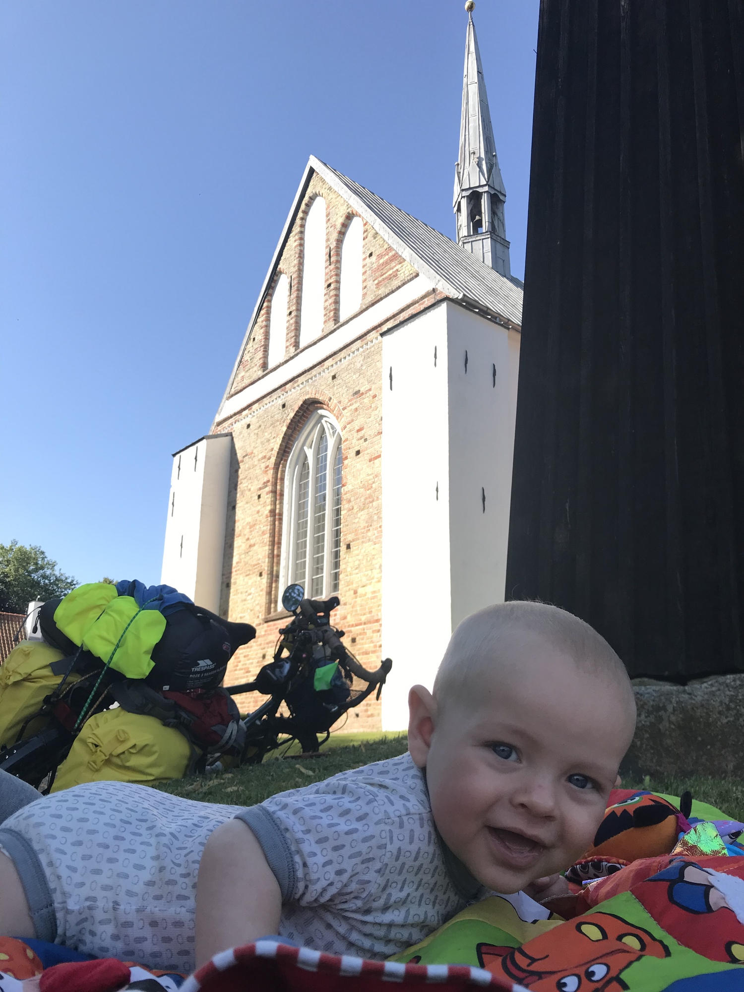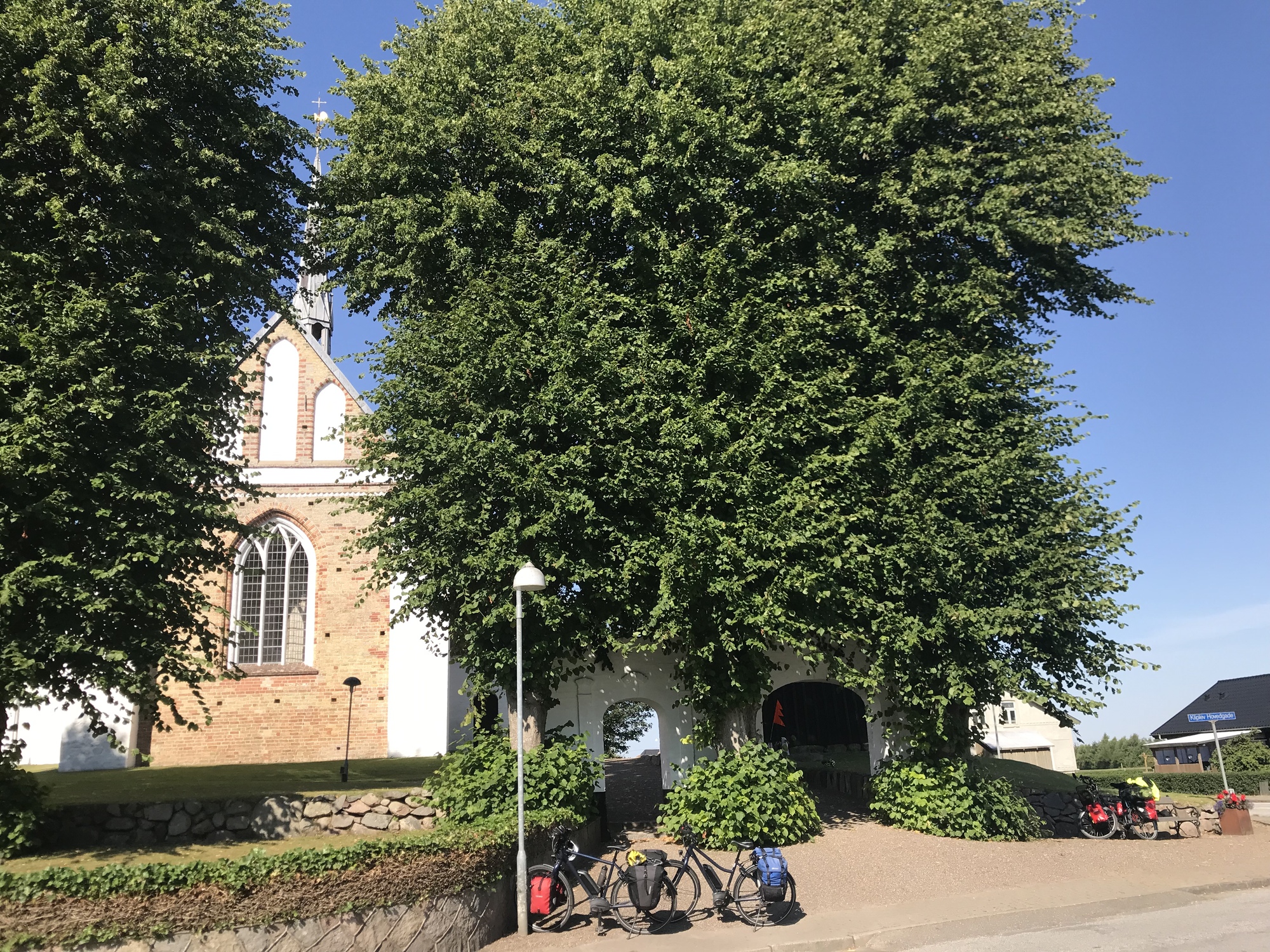I’m pretty sure it wasn’t. We took our first and only break of the day at a church in Kliplev. There were already two touring bikes there, and the owners soon came along. They were a Swiss couple who must have been a good way into their seventies. It was really inspiring to hear that they had been on the road seven weeks and all the way up to Nordkapp. They were on ebikes, but I think that’s fair enough. I’ll be alright with that if it means I can still tour in four decades time.