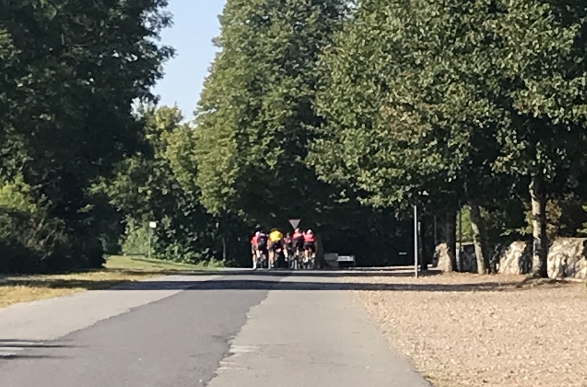We had some nice roads to cycle on, following cycle route eight again. At one point it looked like we were back on the Tour de France route when a group of road cyclists came by with one of them wearing yellow.