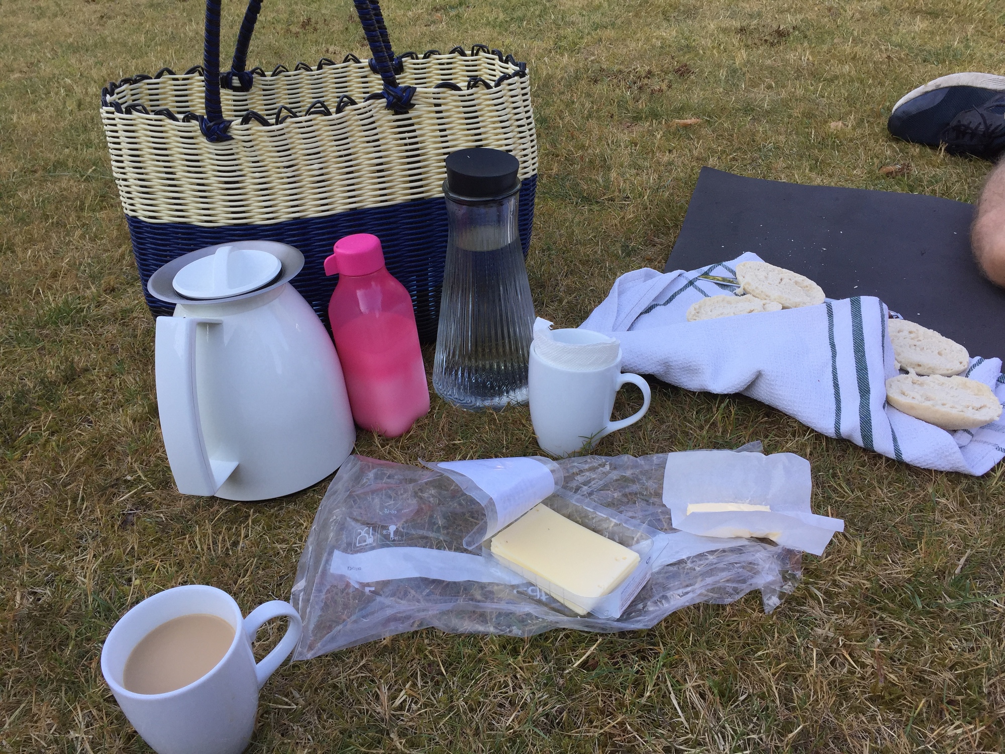 We had a nice surprise when I got back. The nice neighbour who had come by the night before had left us a hamper with coffee, buns and cheese to enjoy for breakfast. They probably would have invited us over but they were leaving early themselves. This was a very thoughtful gesture and we enjoyed the breakfast sitting in the garden.