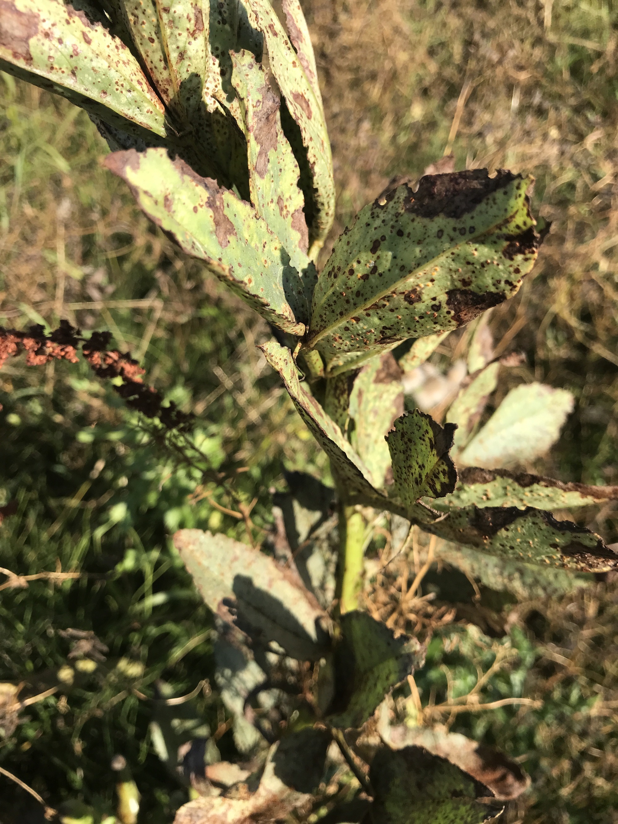 “I could use my plant app,” I volunteered, an app I have on my phone for identifying plants. So I came to a stop and tried to take a photo. “I’ll keep going,” Dea said, for she was towing Kevin today. “And you catch up.”
