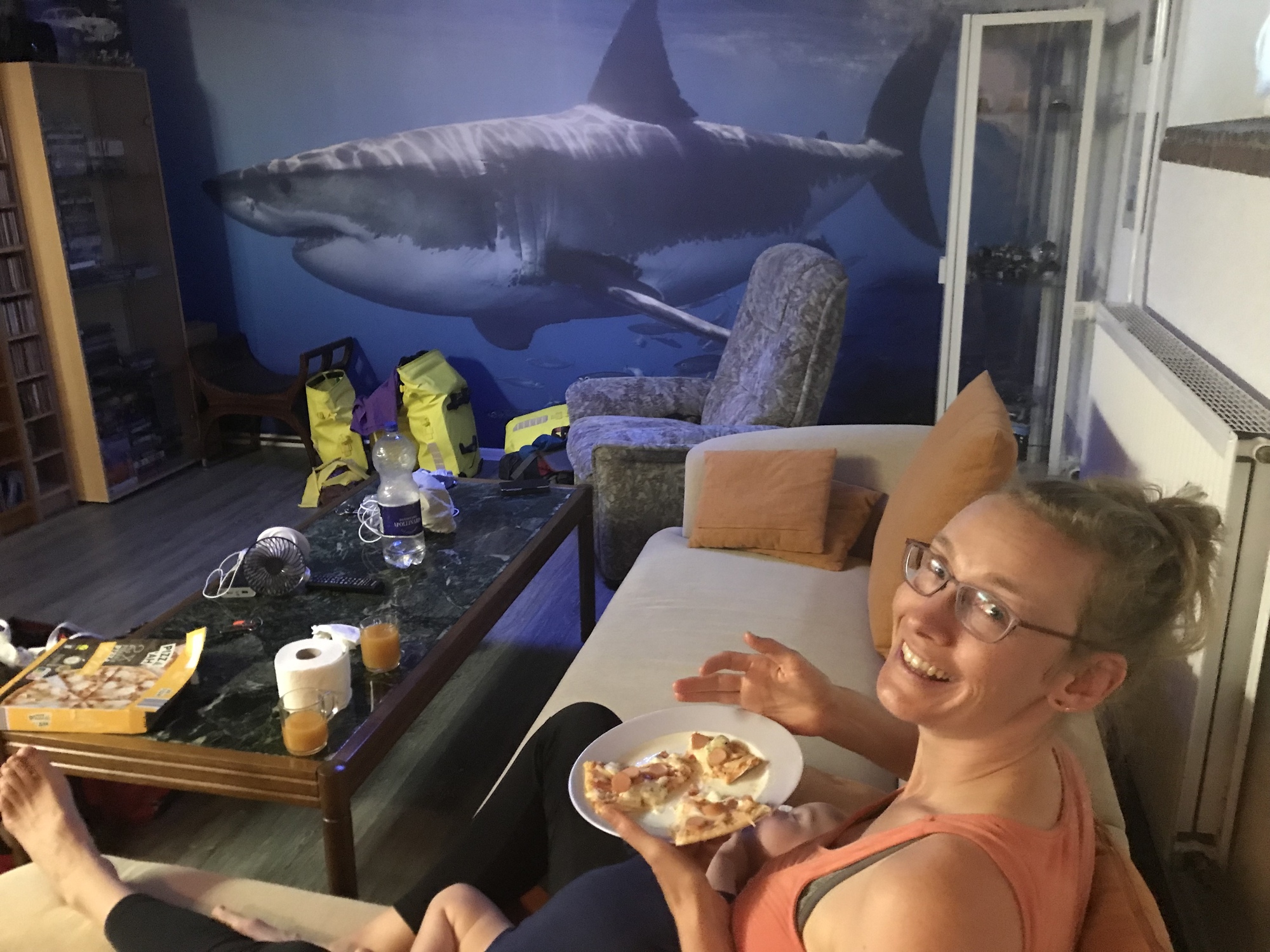 I volunteered to go to the supermarket and was quite excited to be going in a proper German Aldi again. It wasn’t quite as good as I remembered, but the prices were certainly a lot better than north of the border. I bought frozen pizza for dinner, seeing as we had an oven for the night. Many times during our world tour Dea and I had eaten pizza upon reaching big towns after difficult stretches of cycling. I’m not sure if 24 kilometres of Schleswig-Holstein bike paths count, but it felt like we had come through our first major challenge of the trip. The day had been a great success - we had slowed down and found a way to make it work for both us and most importantly for Kevin. And that, I think you’ll agree, merited a celebratory pizza!