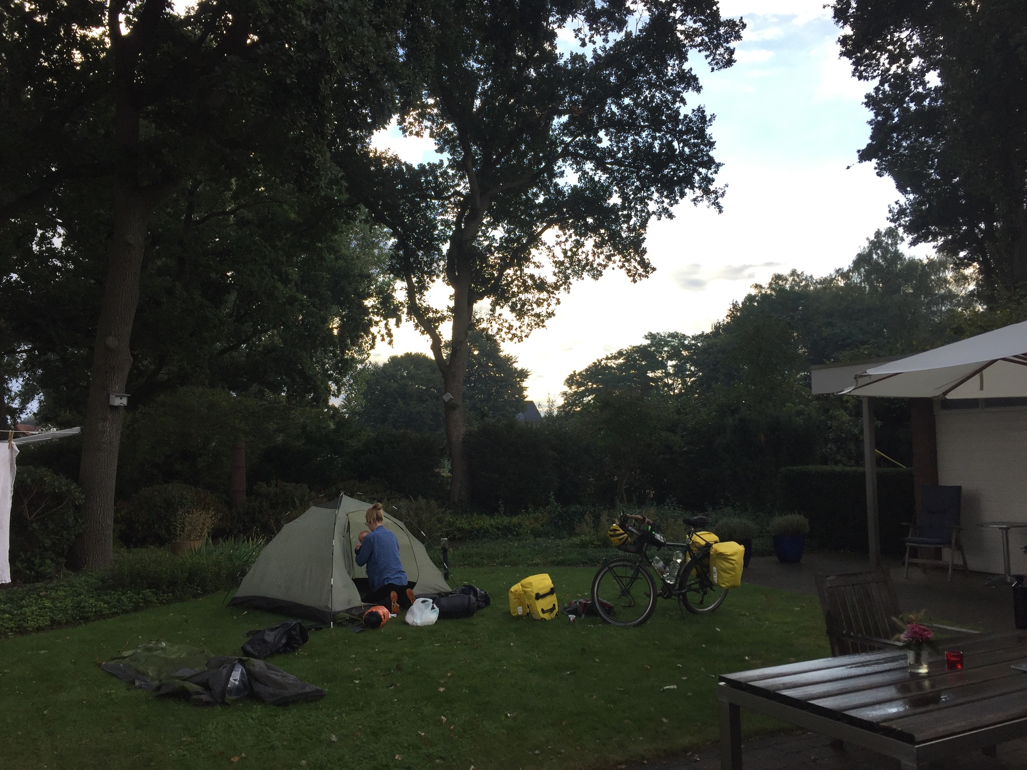 There was a little bit of light rain in the night but it soon cleared up when we got up. Our hosts still invited us to sit inside and talk with them for a bit. Leo and his wife (whose very Dutch name I didn’t catch well enough to dare to try and spell) were very friendly people. Their kindness this morning was particularly generous given that their bedroom was facing the garden and they had been woken up many times in the night by our screaming child. We don’t know why but Kevin has started waking more in the night and waking everyone else with his screams too. Luckily he is so cute that everyone forgives him very easily.