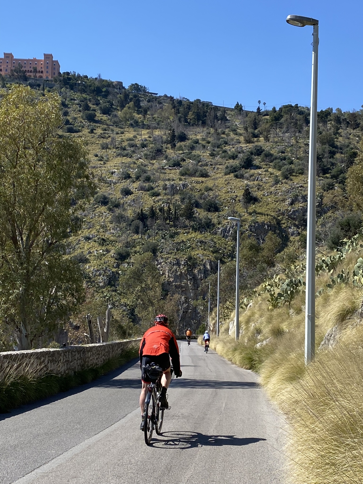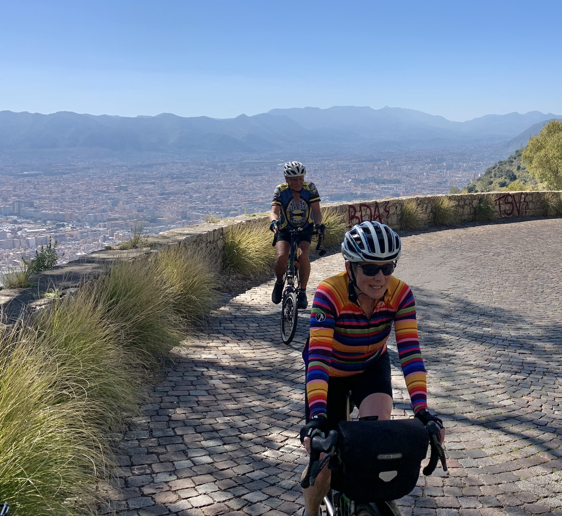 We got out on our bikes today to ride up Monte Pellegrino, which looms over Palermo to the north. It’s always good to make sure the bike is working well before leaving the city but it’s great to do it with fellow CycleBlazers Scott & Rachael Anderson.