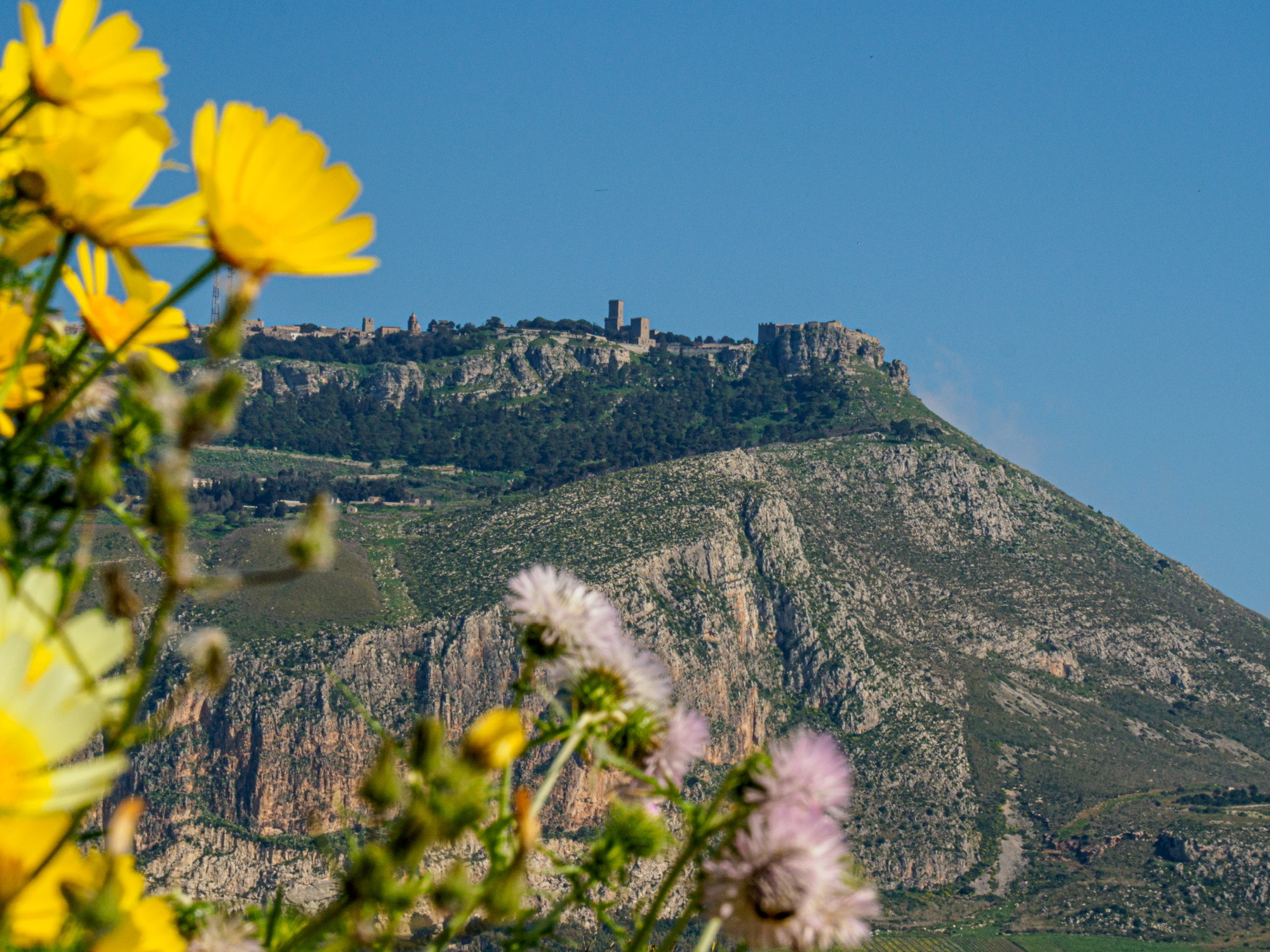 This morning we packed up and headed out. Leaving Trapani was once again fairly straightforward, as there are long one-way streets leading off the peninsula. The route out of town could be broken into a series of sections: old town (narrow streets), newer town (one-way streets), town fringes (two-way arterial), suburbia (minor highways lined with flowers and garbage), rural (quiet “paved” roads lined with wildflowers).