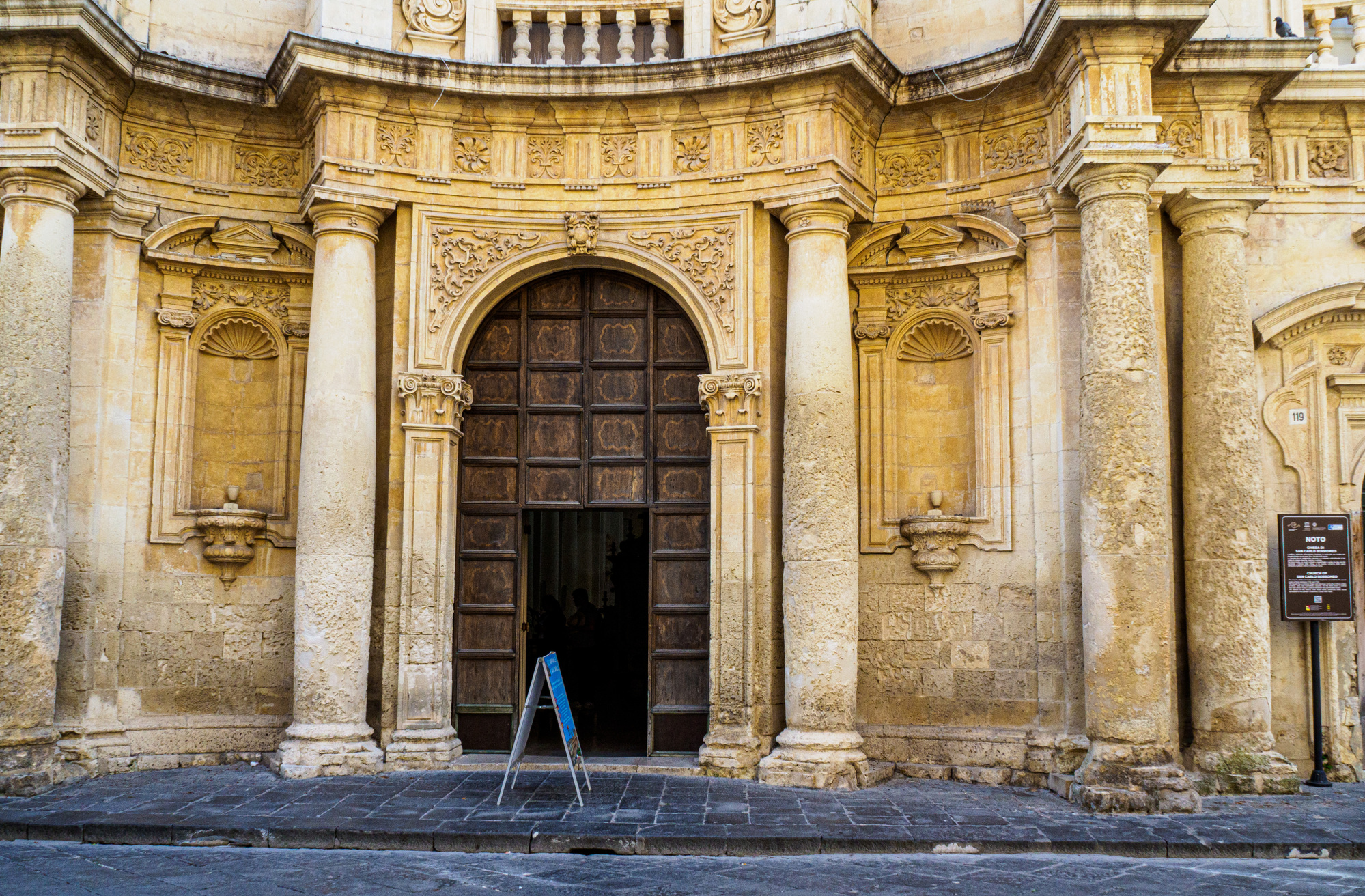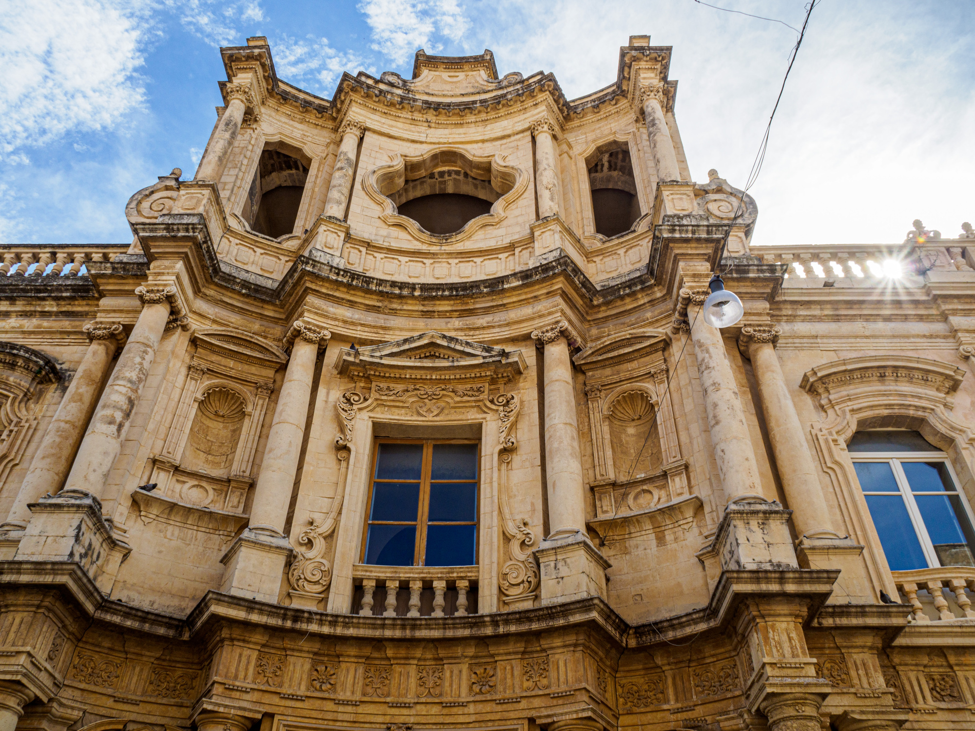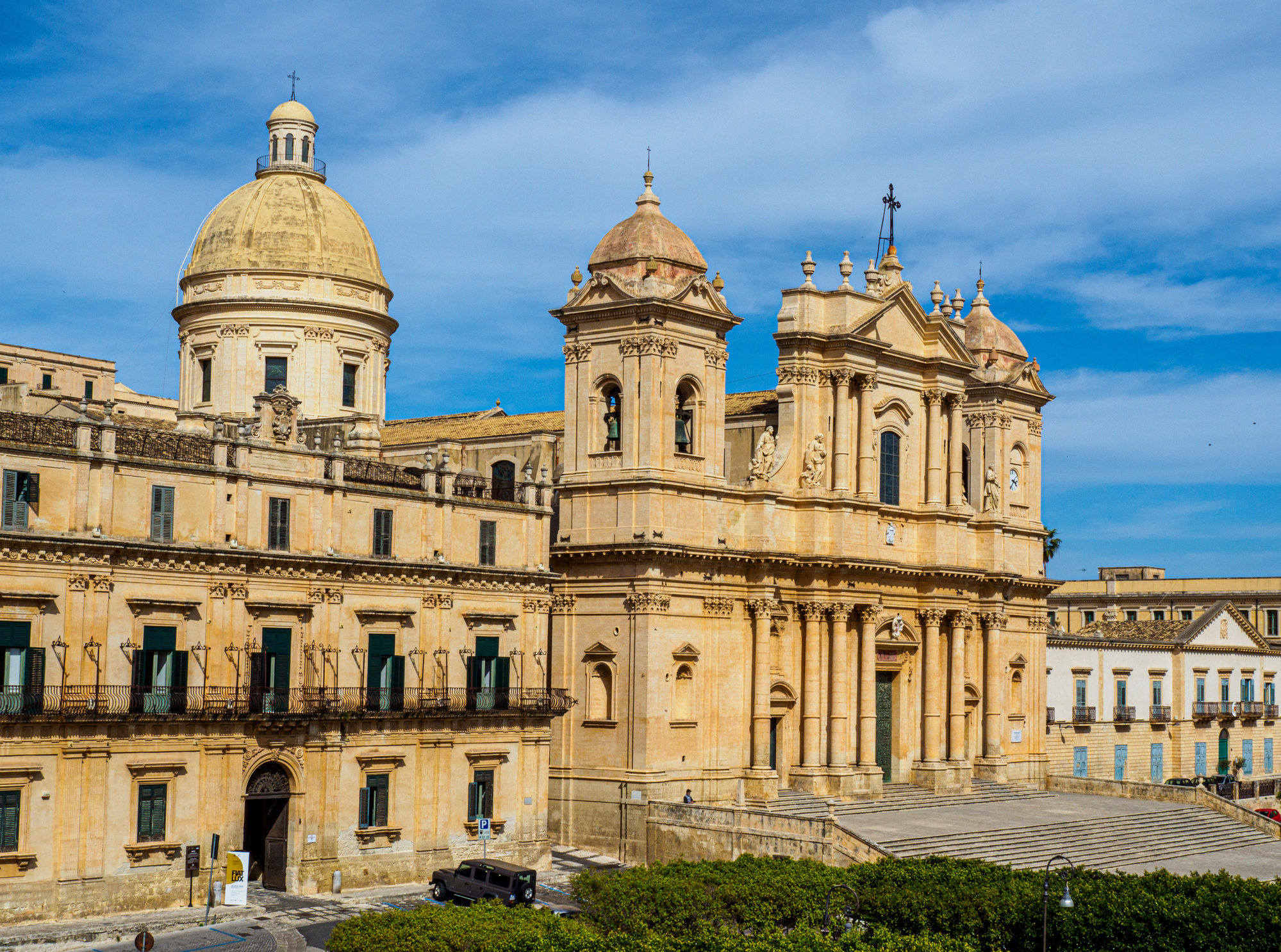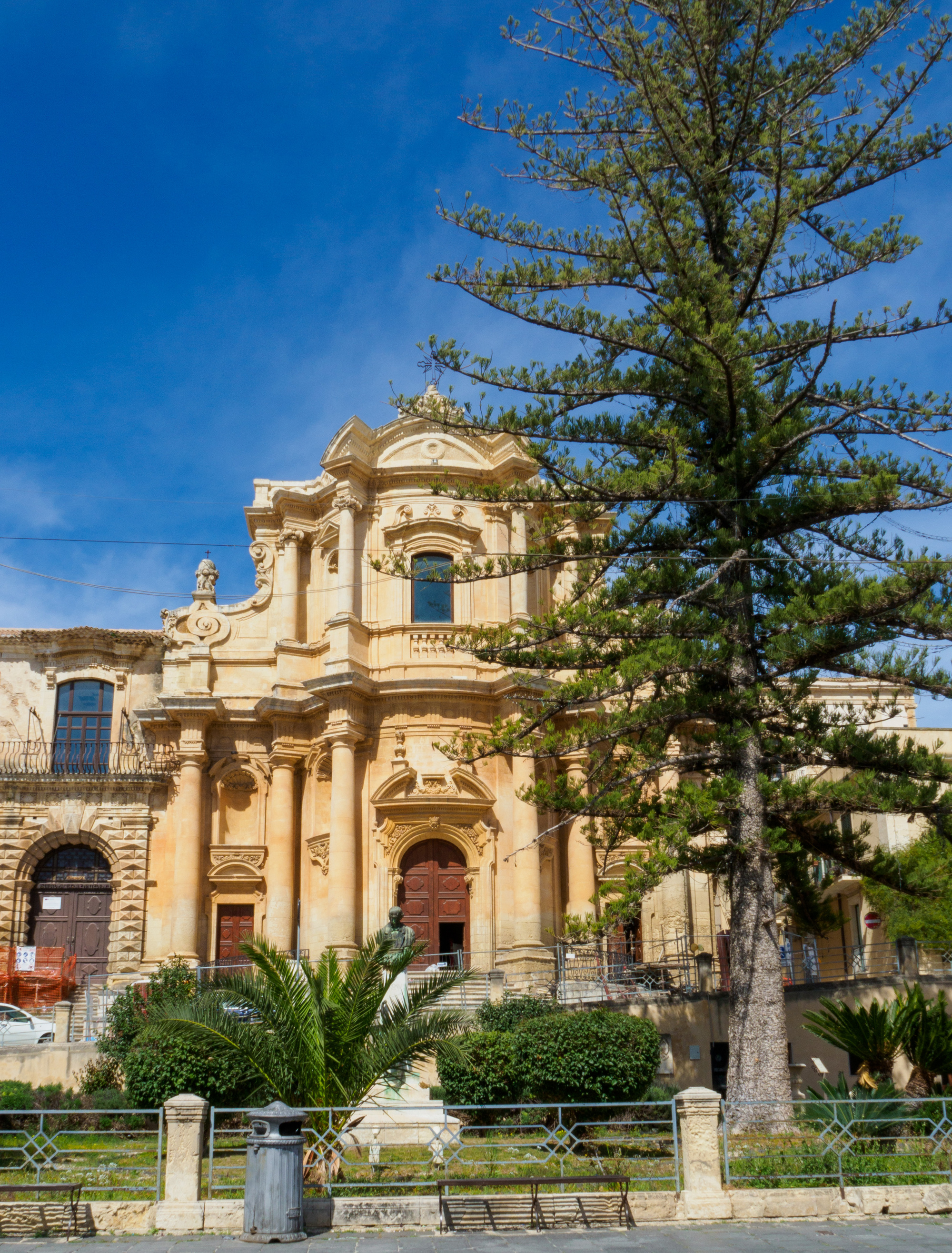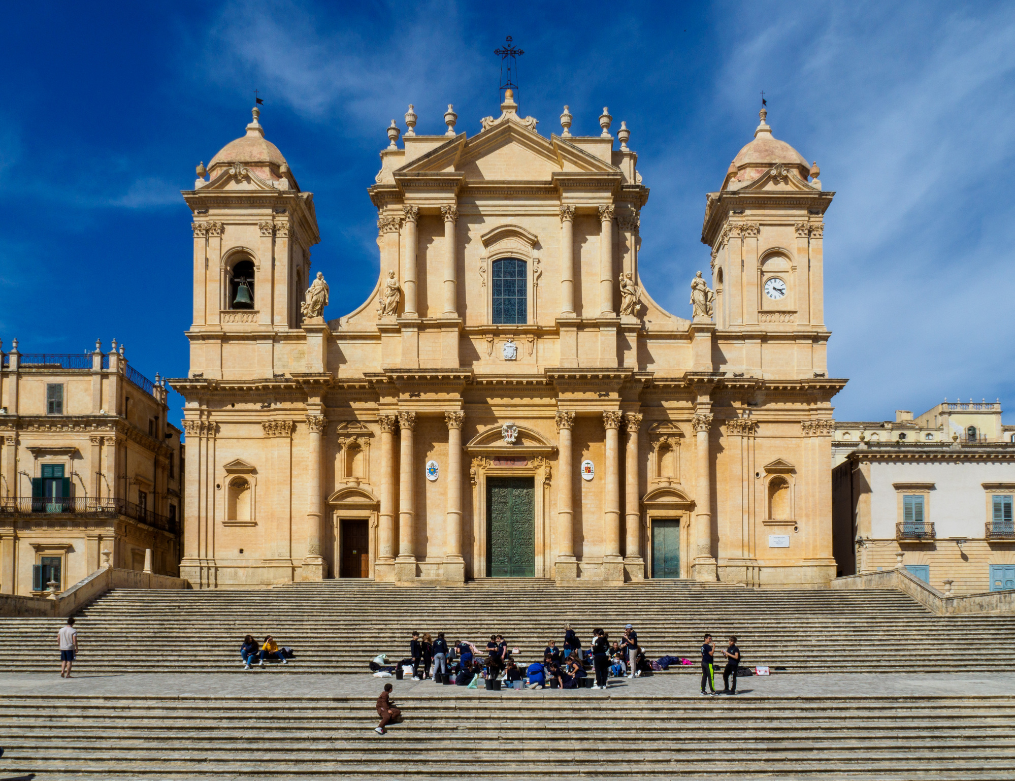 Noto Cathedral. Its dome (not visible from this angle) collapsed in March 1996 and was “reconstructed by applying the most advanced earthquake proof techniques.”
