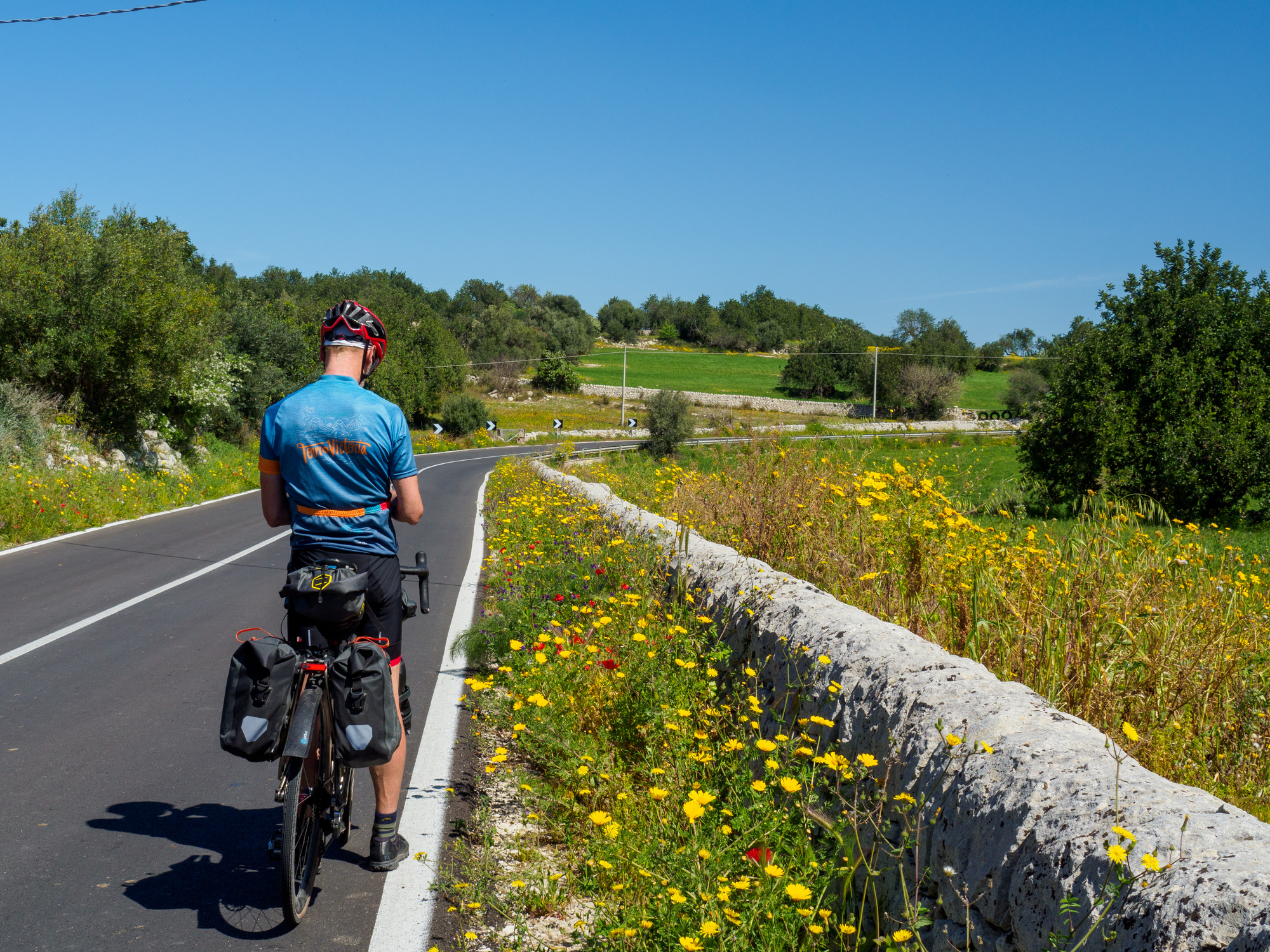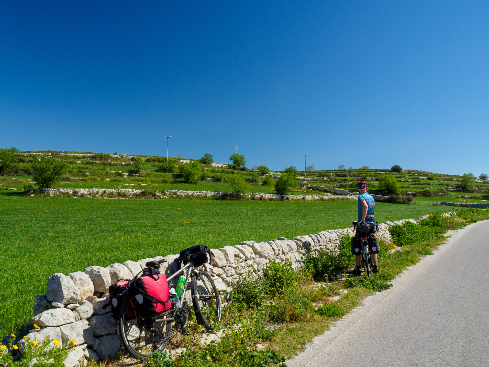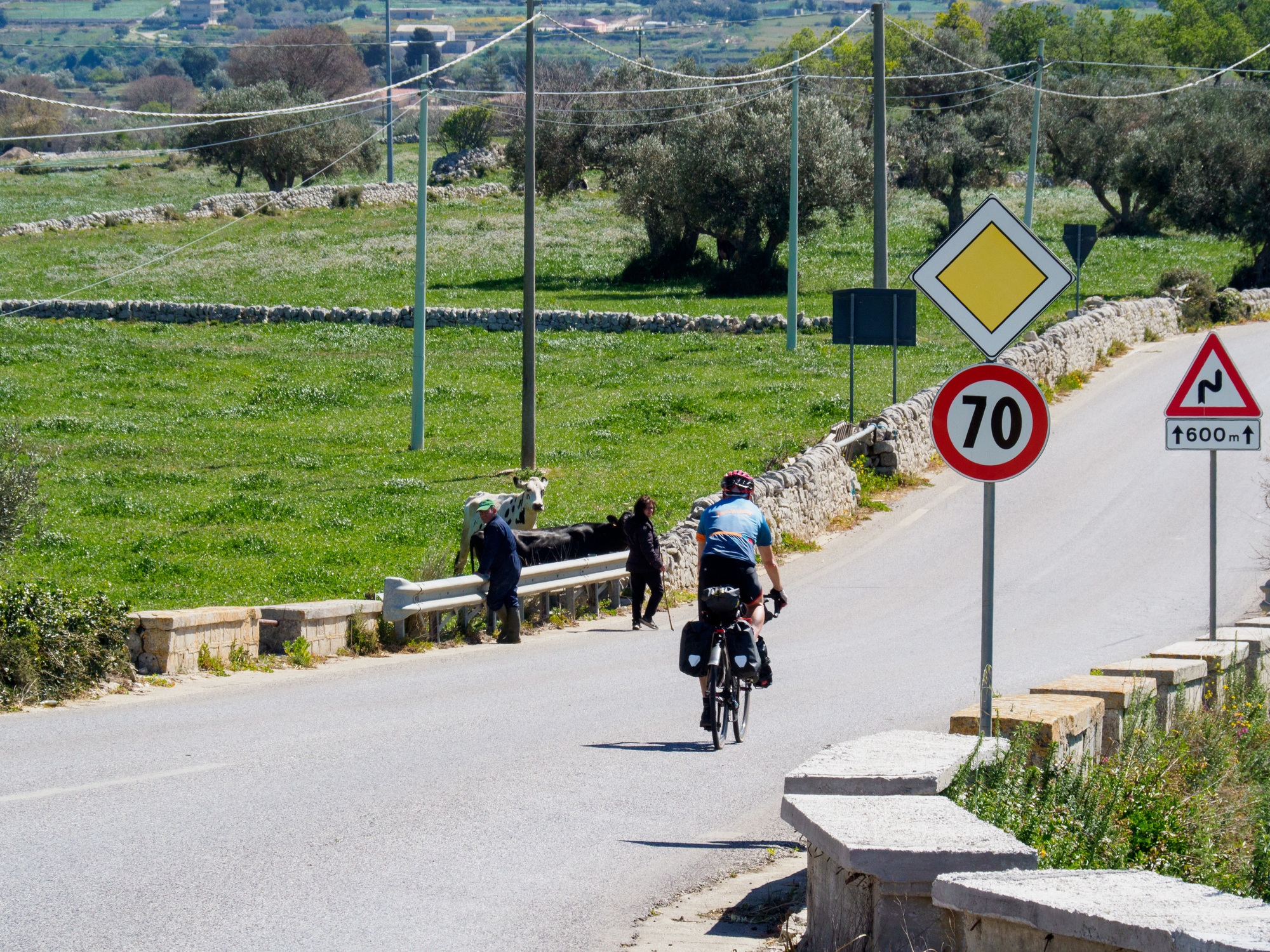 We turned off SS 194, which follows a valley bottom to Giarratana, and immediately began climbing the steep switchbacks of SP 58. We followed that to SP 59, still climbing but much more gently. We descended on other Strada Provinciale and it was a beautiful ride—until we hit SS 115 for the last 15 km into Noto. That last part wasn’t particularly bad, but it wasn’t pleasant, especially compared to what we’d just had.