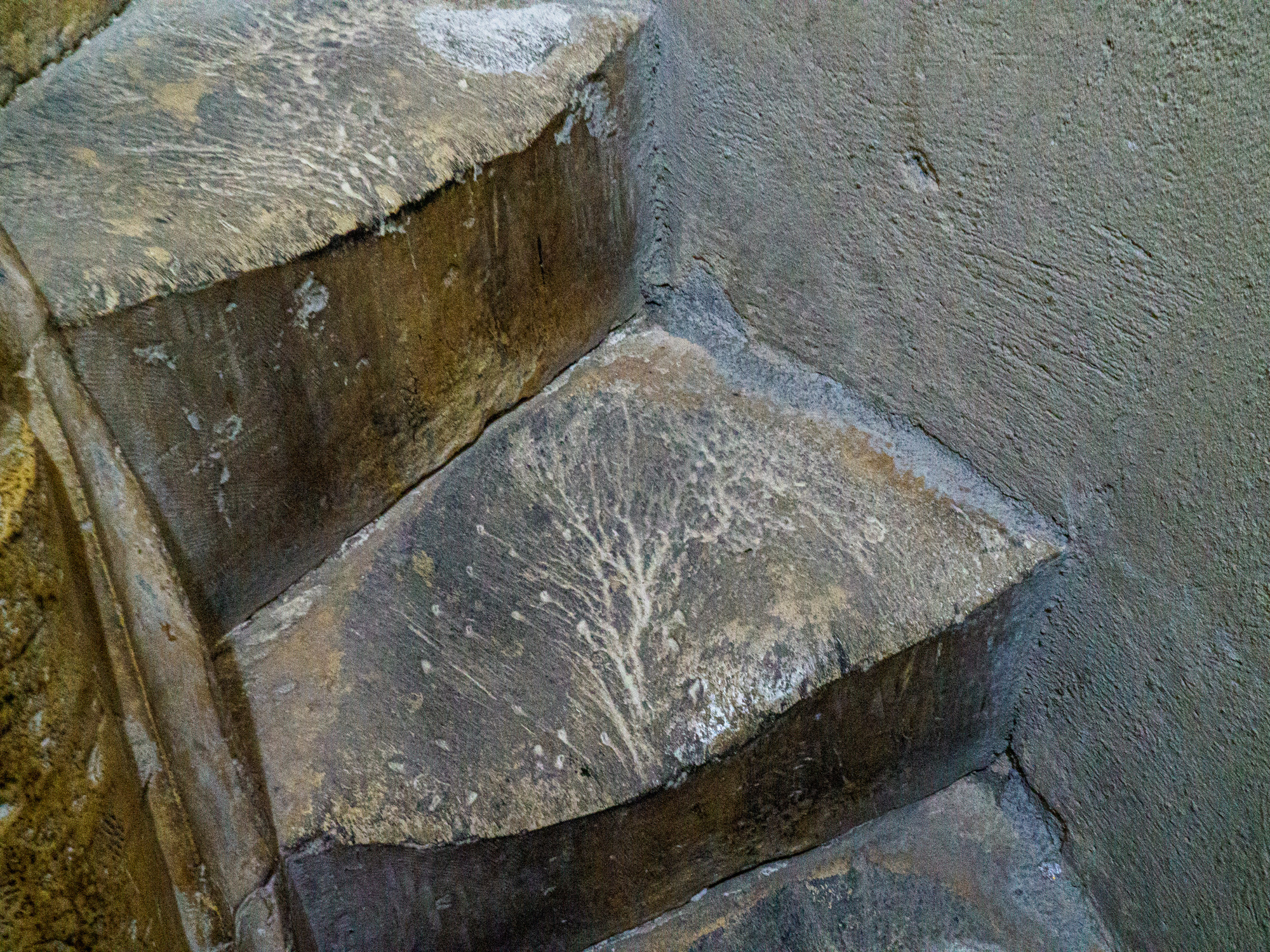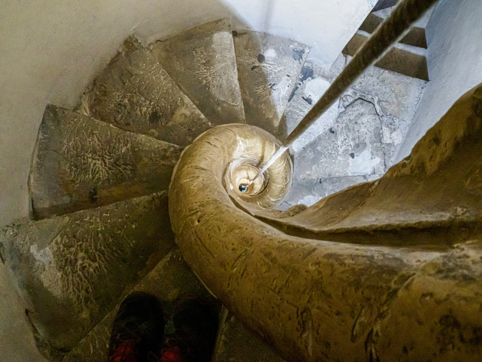 Going down the spiral staircase. The rope was shaking madly, presumably others were trying to pull themselves up? The inner stone I was holding onto is a spiral, not a straight vertical as I would have expected.