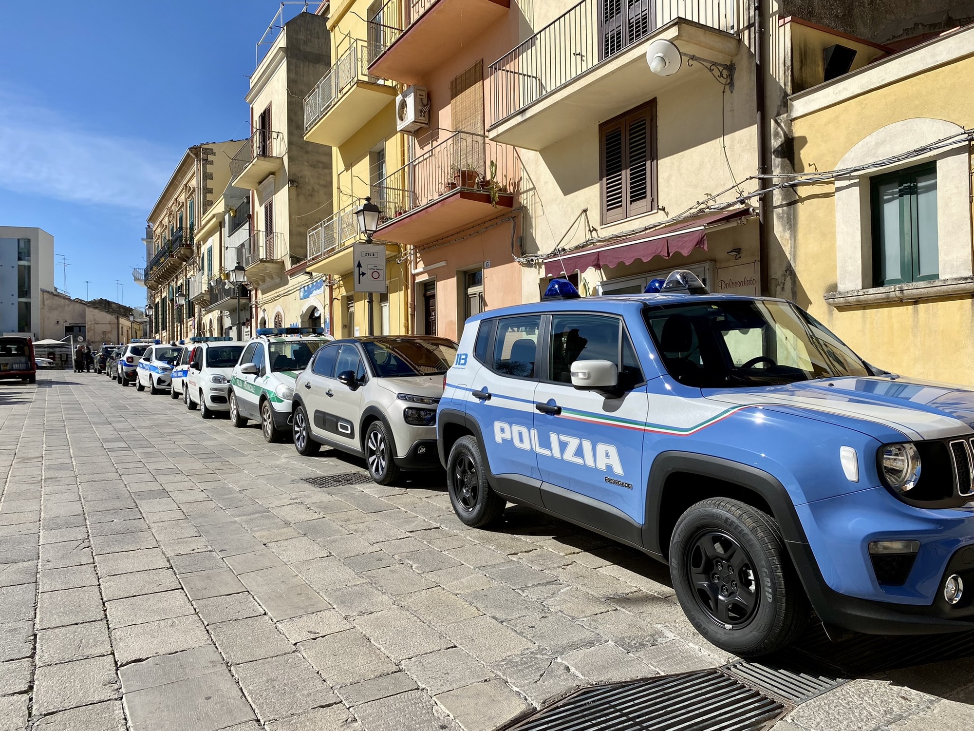Leaving Ragusa Ibla, all varieties of police were attending something in enclosed event tents in a piazza. Representatives from every level, from local police to the coast guard, had parked their marked cars in the street.