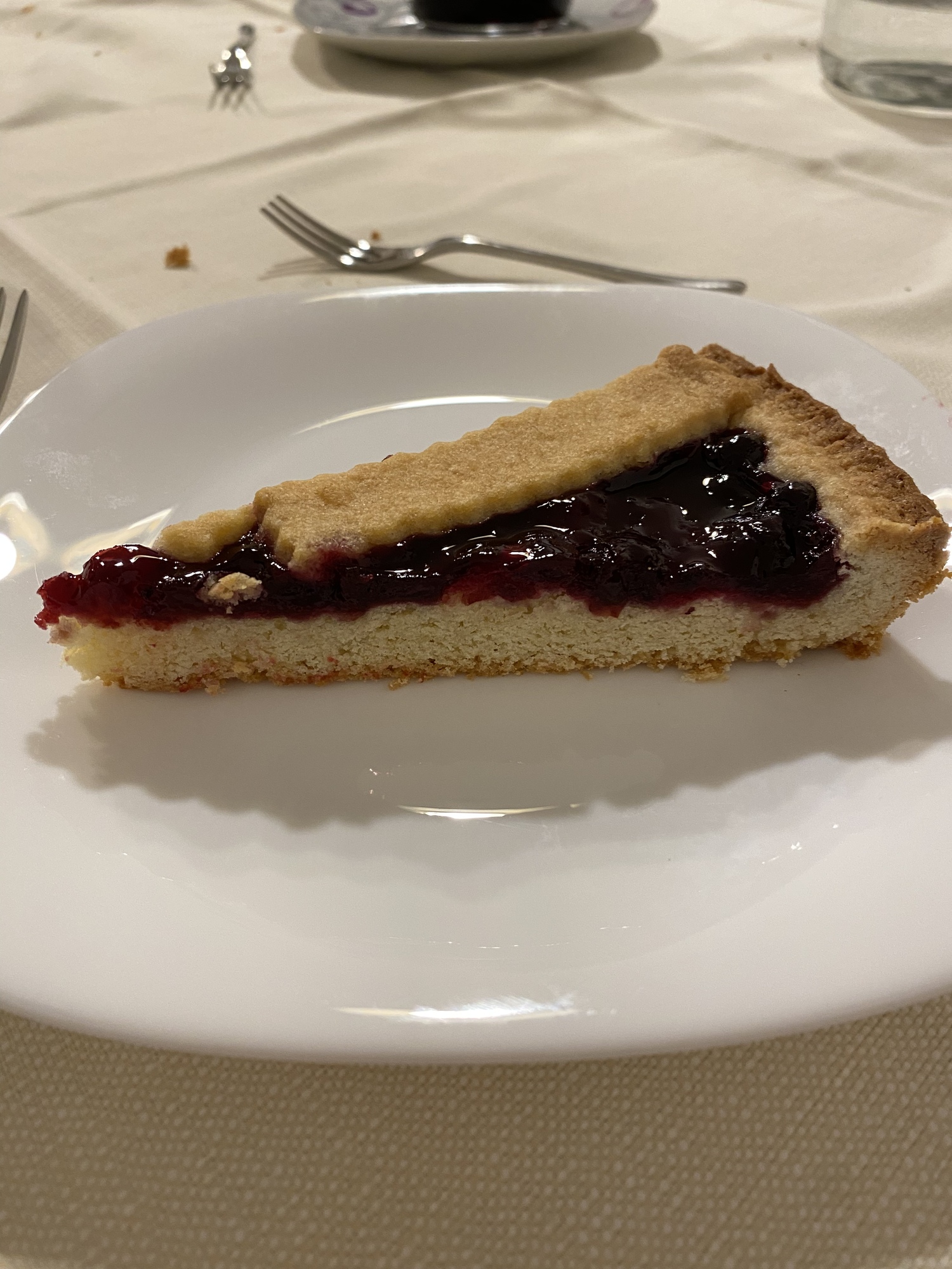 It turns out he’s a retired chef; his restaurants didn’t survive Covid. But we benefited because now he cooks for the B&B guests. He has a tiny kitchen and dining area that seats 12 directly across the narrow street from the B&B. A multi-course dinner accompanied by his own wine for 35€ per person. Lots of food—he offered seconds of everything. The limoncello digestif was needed!