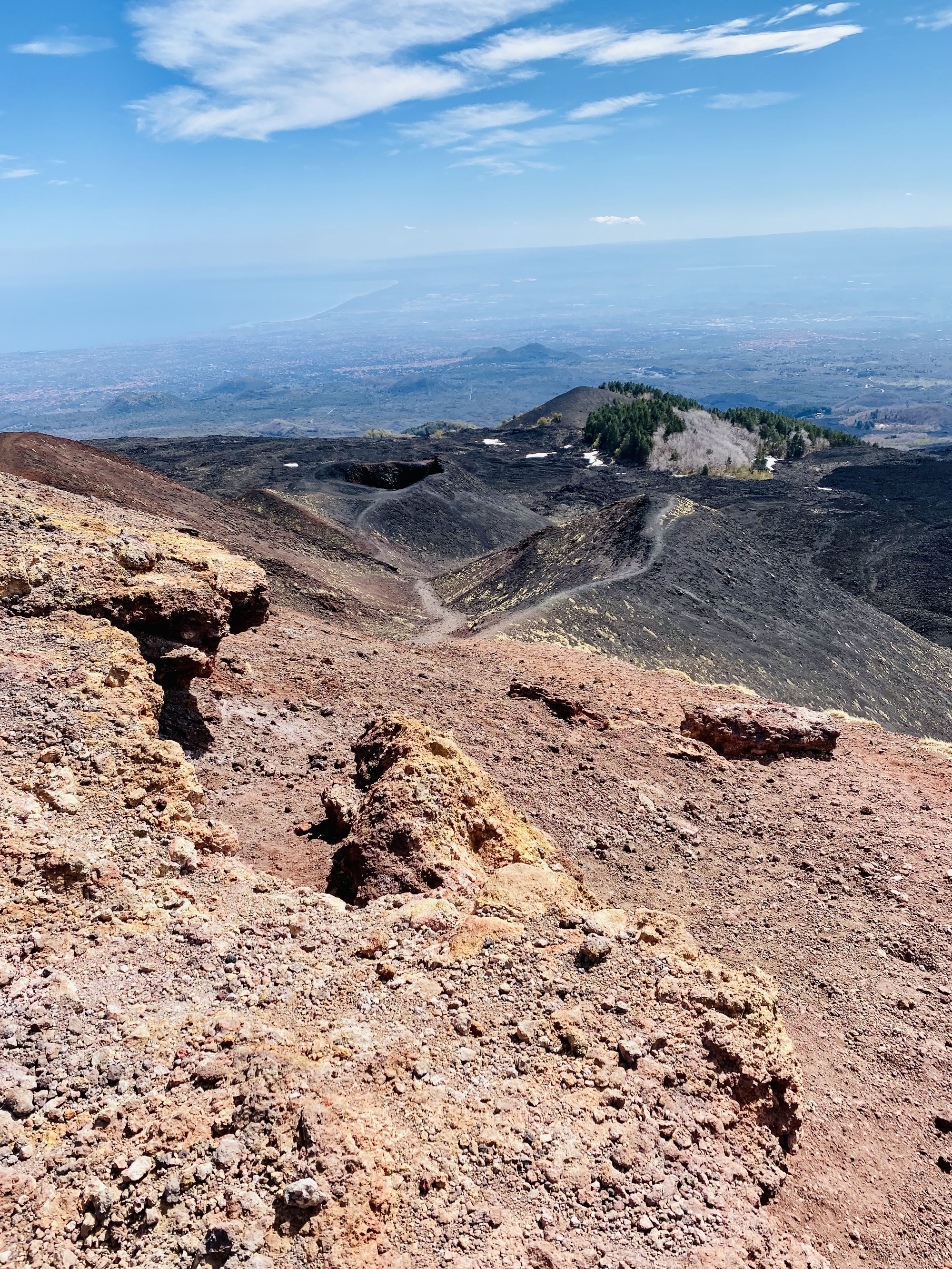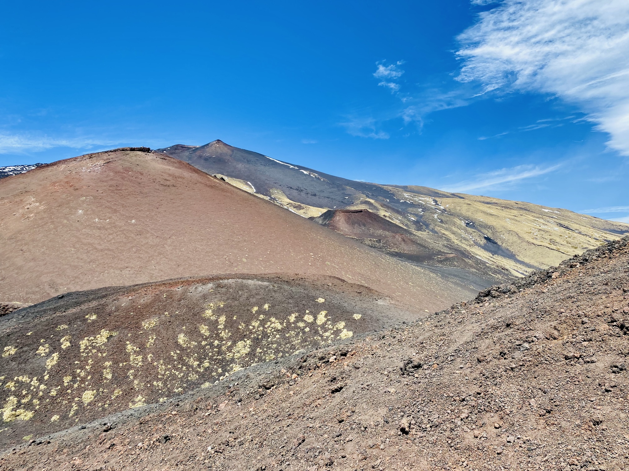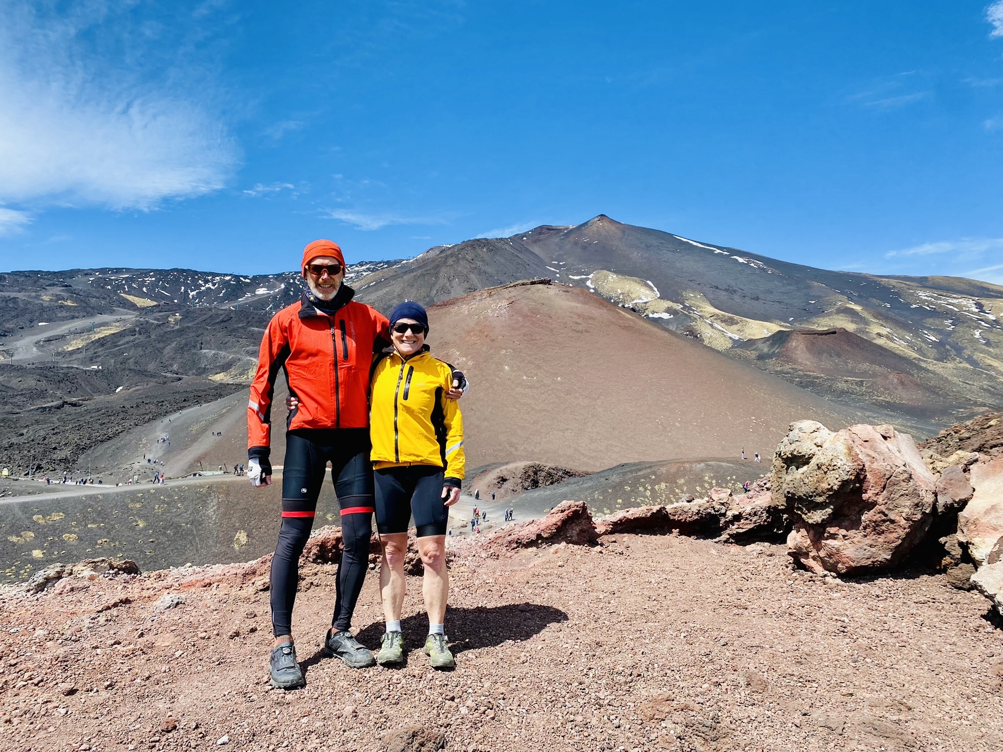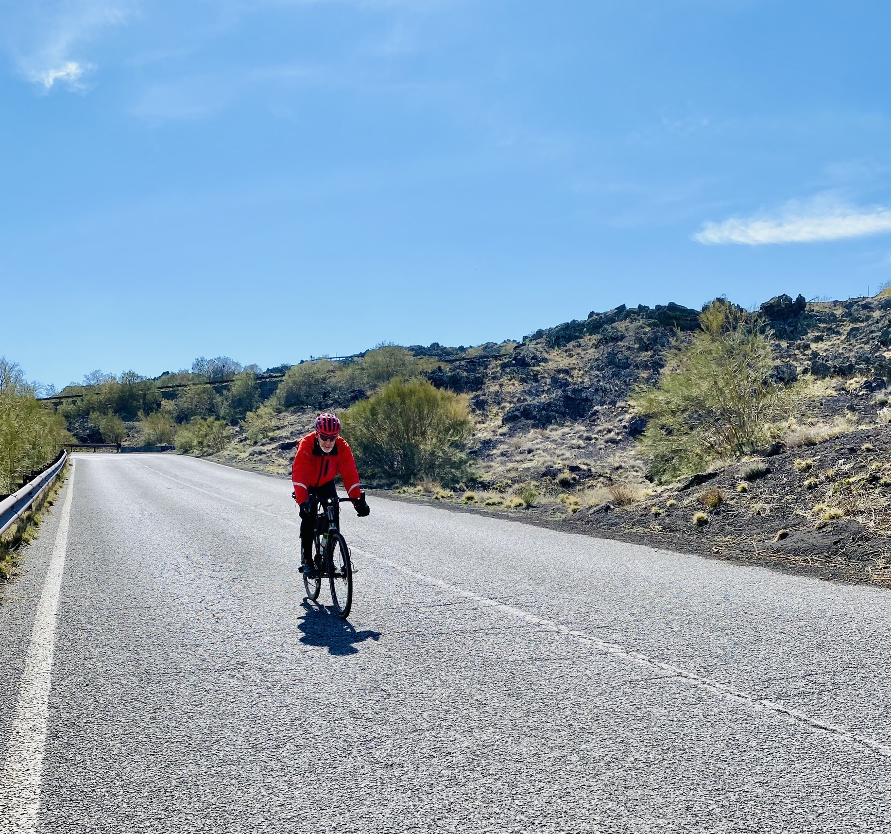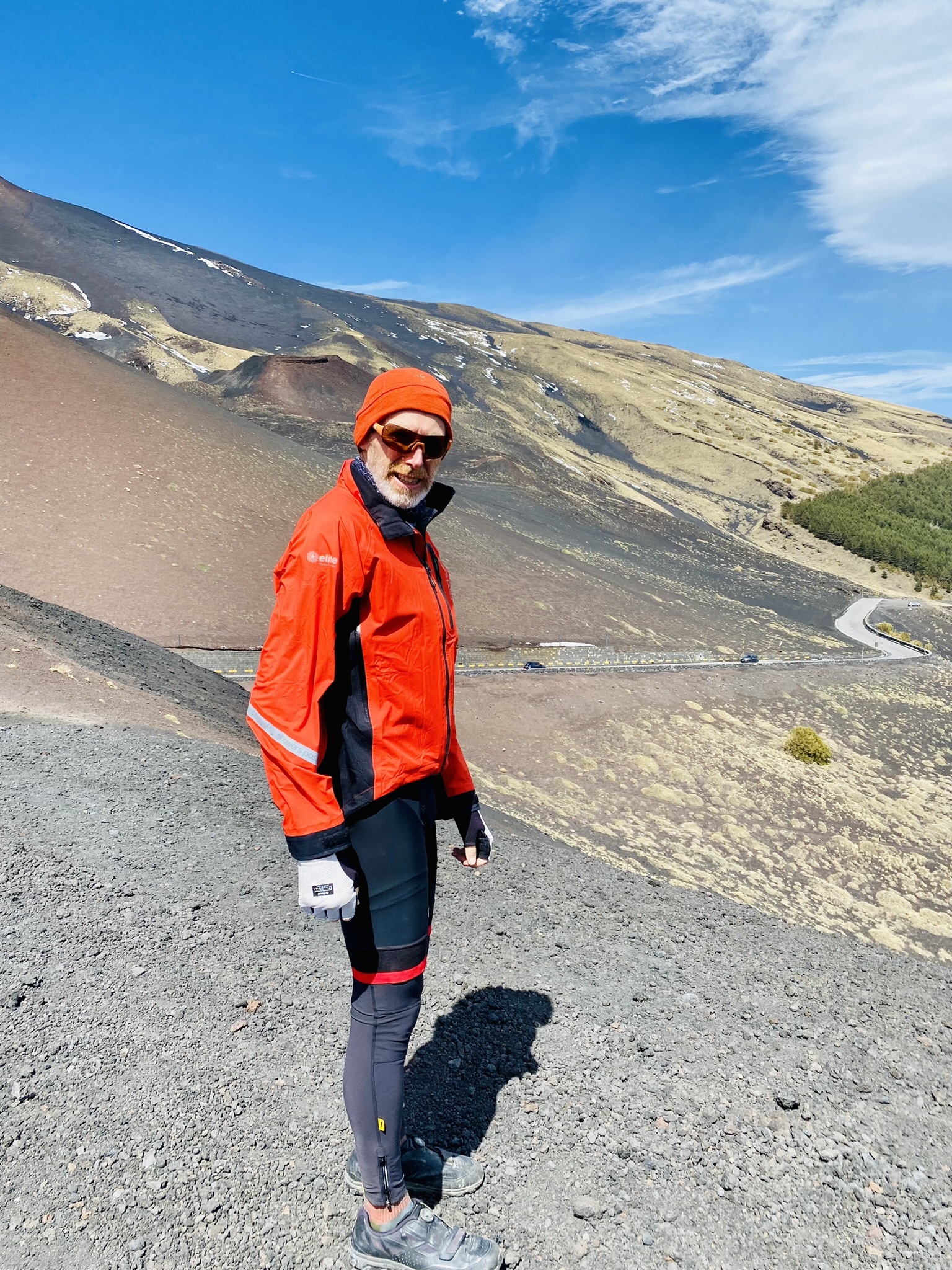 Al had gone ahead because he was getting cold waiting for me and wanted to get to the top and put his warm layers on. I didn’t see him or his bike as I rode all the way to Rifugio Sapienza, where I spotted an e-mtb business. I headed over there and had a nice chat with the young man working there, his first day. I wasn’t trying to chat up a good-looking young Italian (probably younger than my sons) but was asking him if they happened to have an SPD cleat bolt. I’d noticed on the ride up that I was missing one. It’s probably been missing since yesterday, not that I could have done anything about it as Sicily doesn’t have many bike shops. The rental place didn’t; all their bikes have flat pedals. We even looked in their miscellaneous parts box but no luck. At least the remaining bolt was tight.