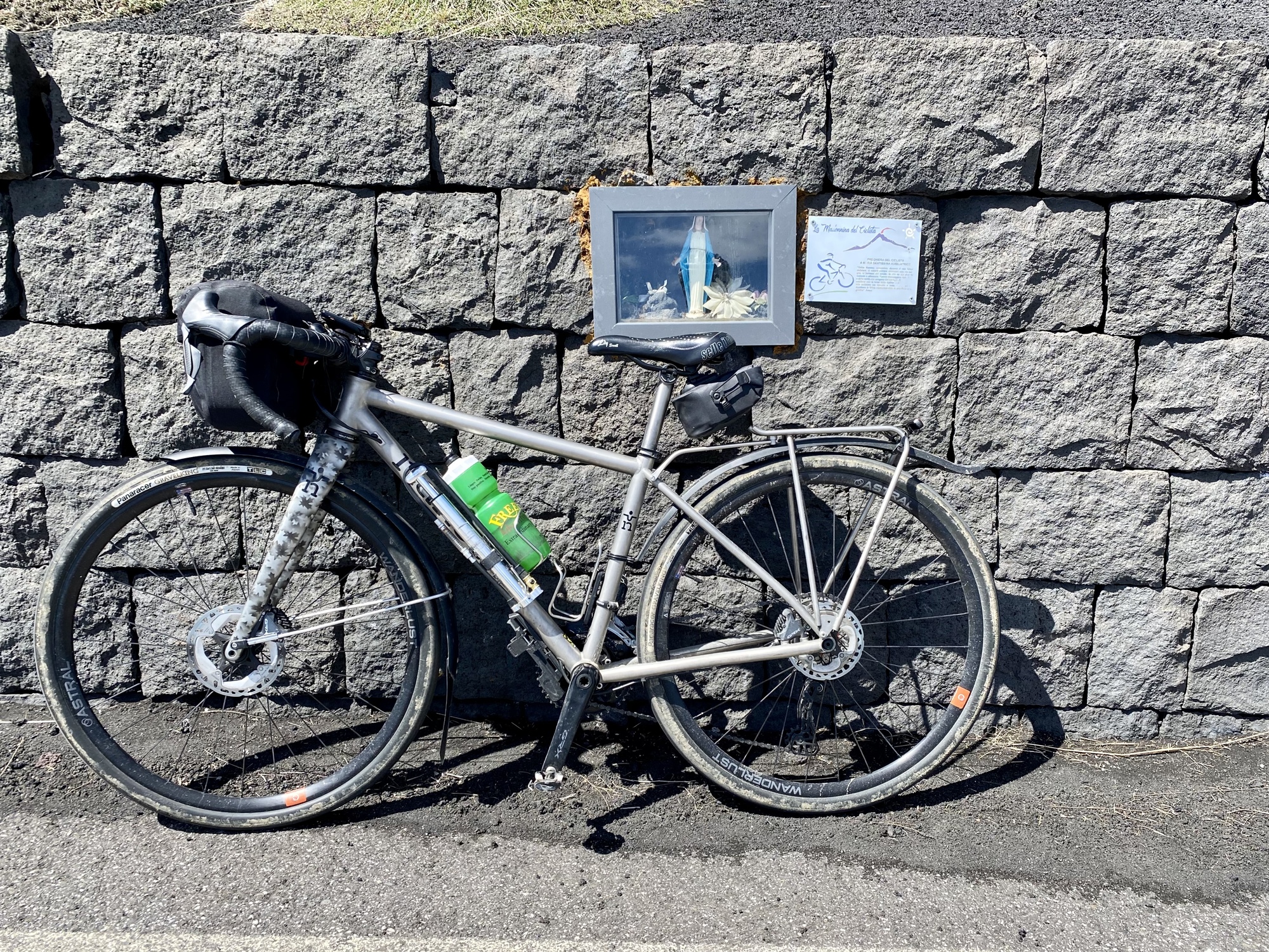 Once I found Al (he’d ridden to the Rifugio and back to the Crateri without us seeing each other), we walked around the smaller, lower crater (inferiori). That was enough in cycling shoes, not to mention having just climbed 1400 metres on our bikes.
