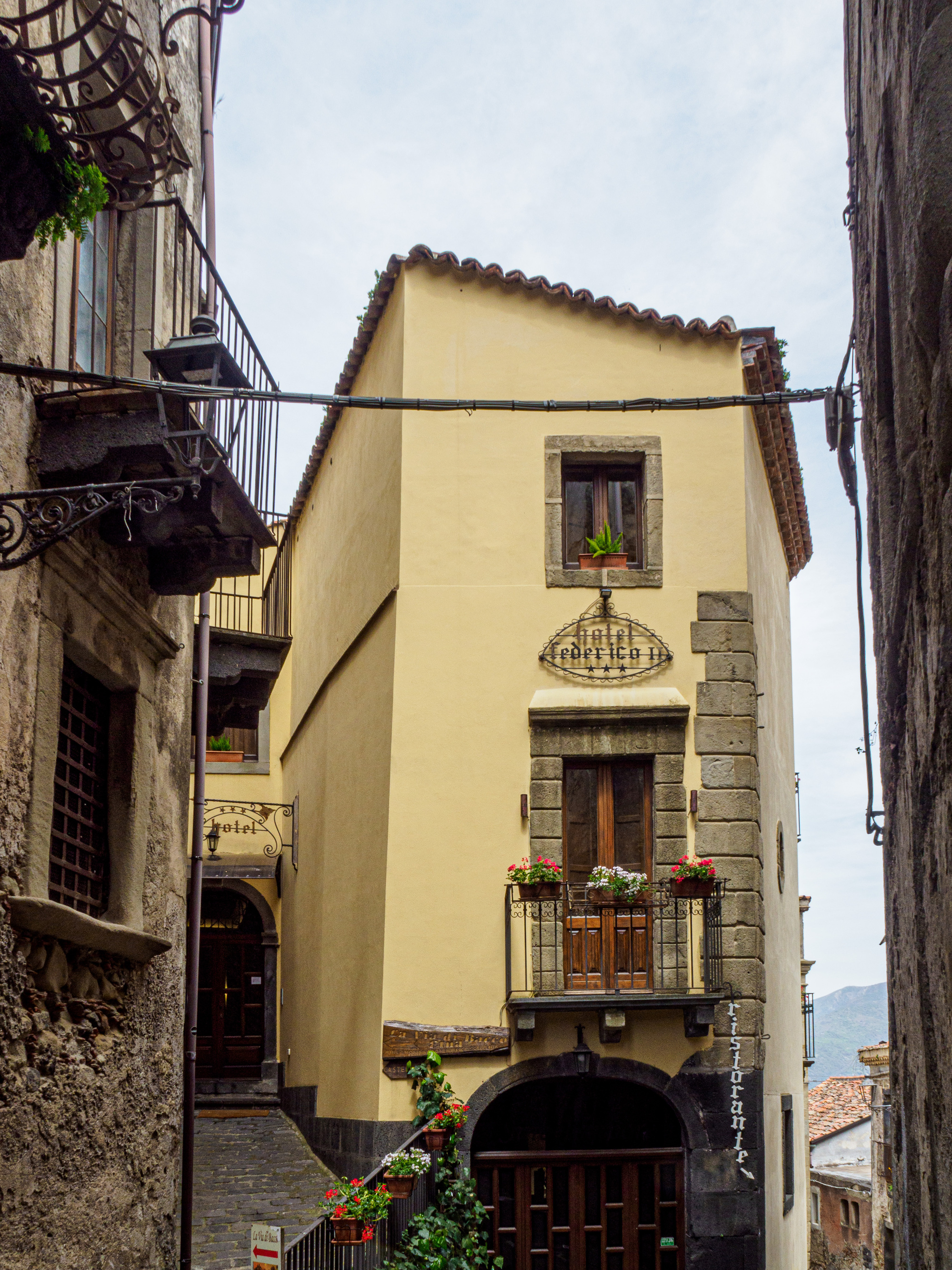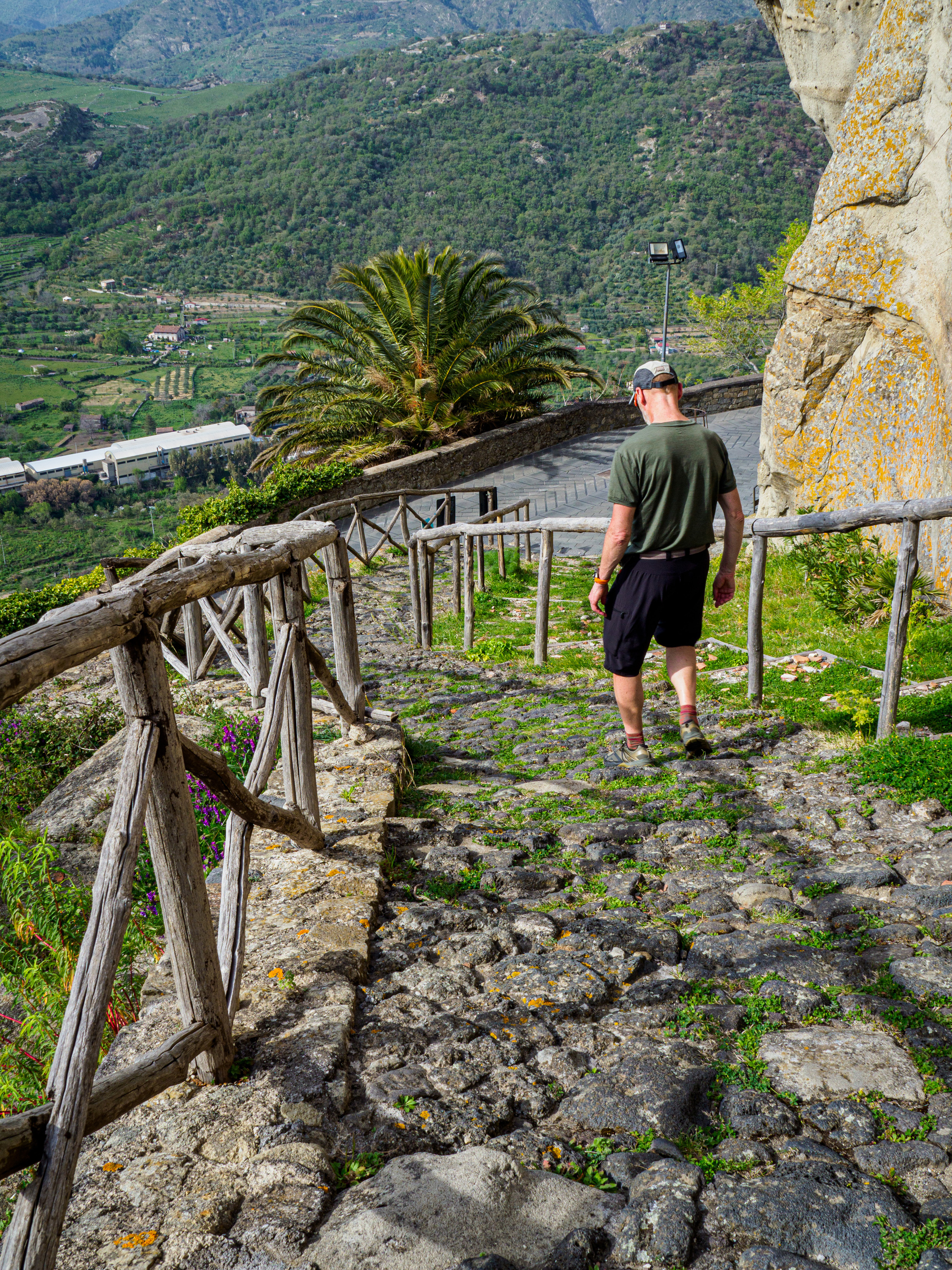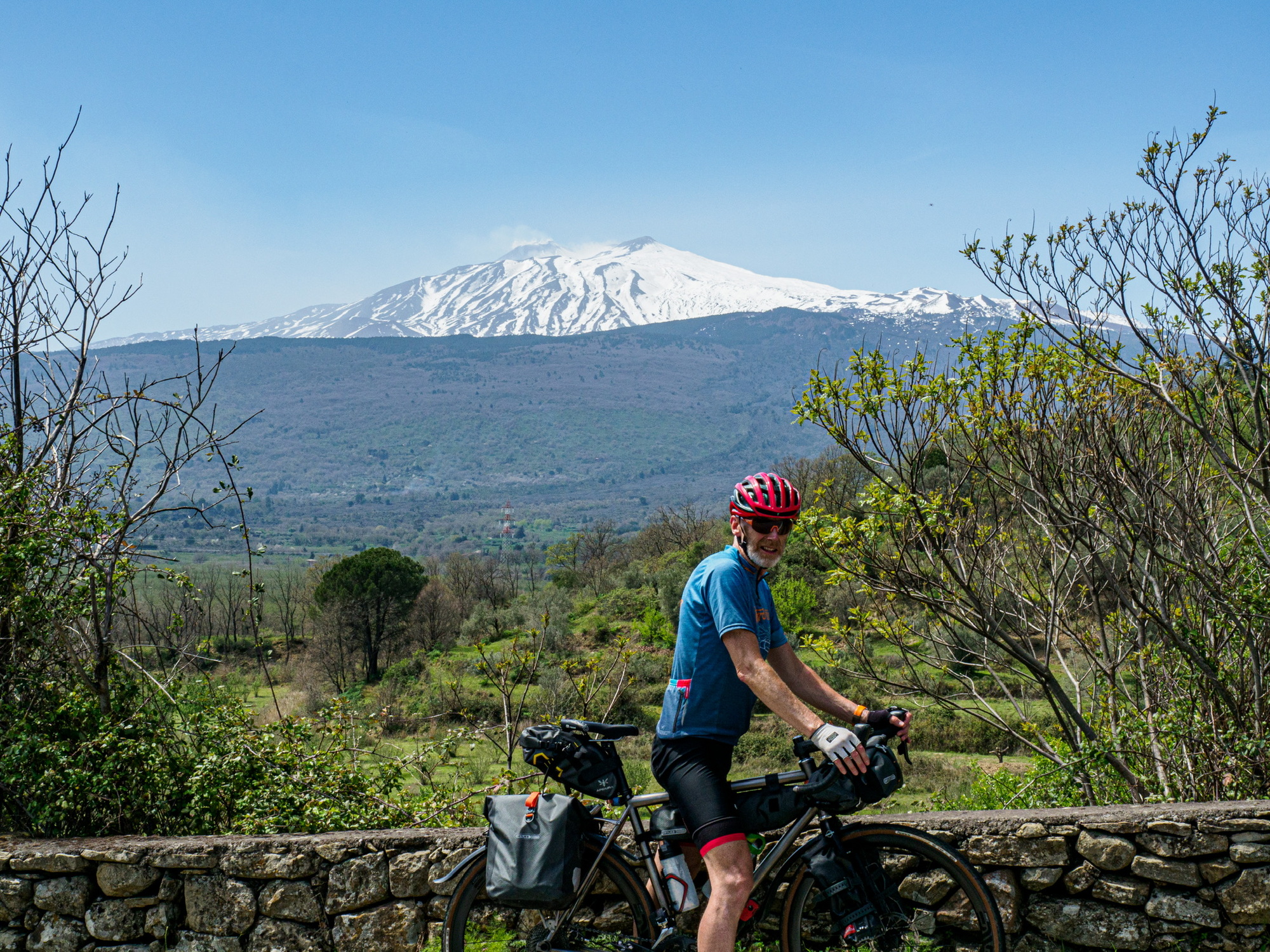 I’d created two possible routes, one taking Via Mareneve, the scenic road that climbs over the northeast shoulder of Etna, and one that sticks to SP 59 between Fornazza and Linguaglossa. When we got to Fornazza and decision time, we both opted for the low road. We had already climbed 300 metres and the question was whether we wanted to climb 300 or 900 metres more. Al said it was fine by him to stay on the lower road but it was my call. I think he wanted to take the easier road but didn’t want to admit it! I chose the low road and it was very pleasant. Fewer photos from the road again today, perhaps we’re getting accustomed to the scenery after 4 weeks…
