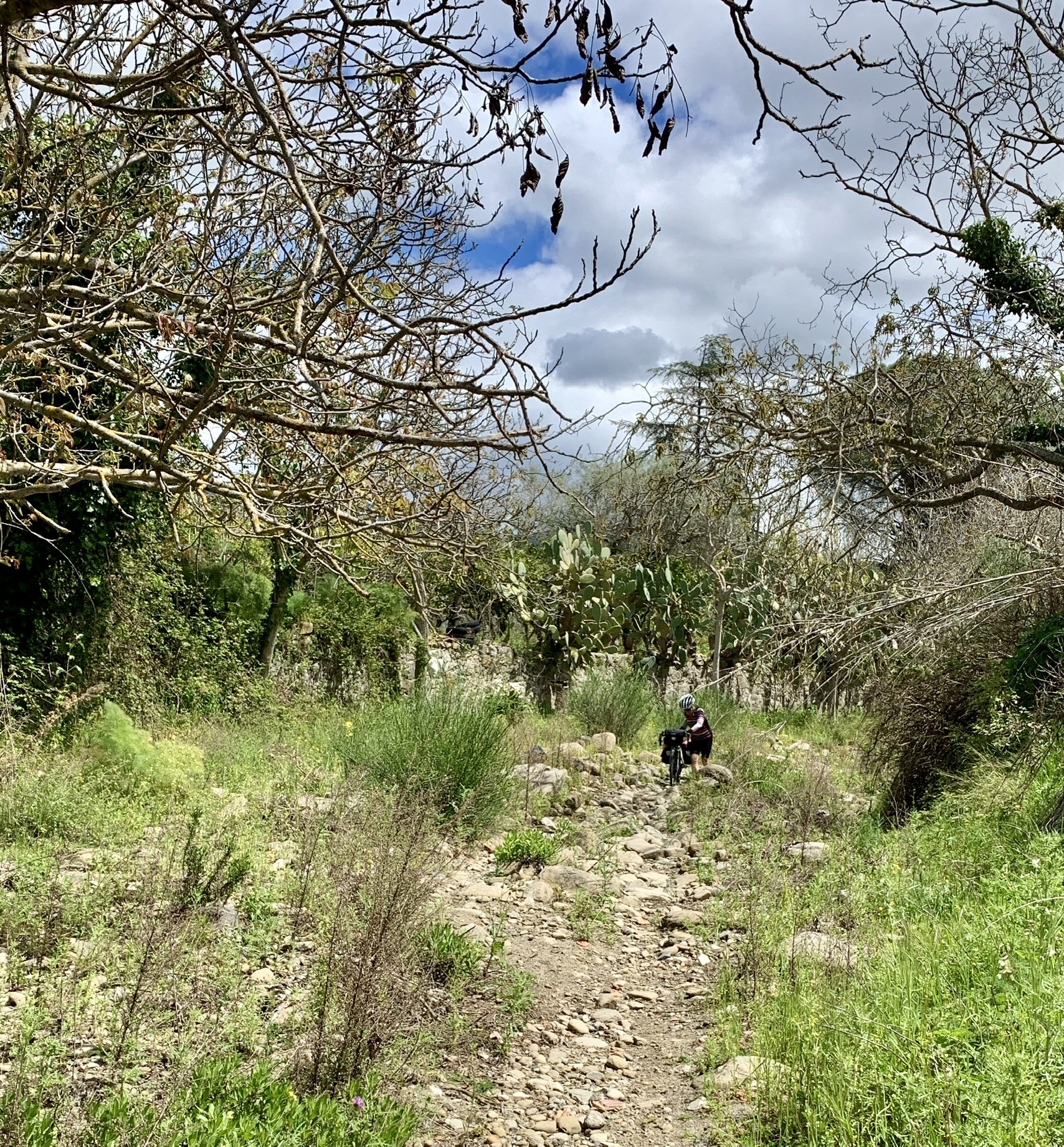 Given the forecast and our experience at elevation on Monte Lauro, we decided to change our planned route to stay low in the Alcantara valley. As the day progressed, and the rain started and stopped, we didn’t regret this decision because every time we looked up to the shoulder of Etna, it looked miserable up there.