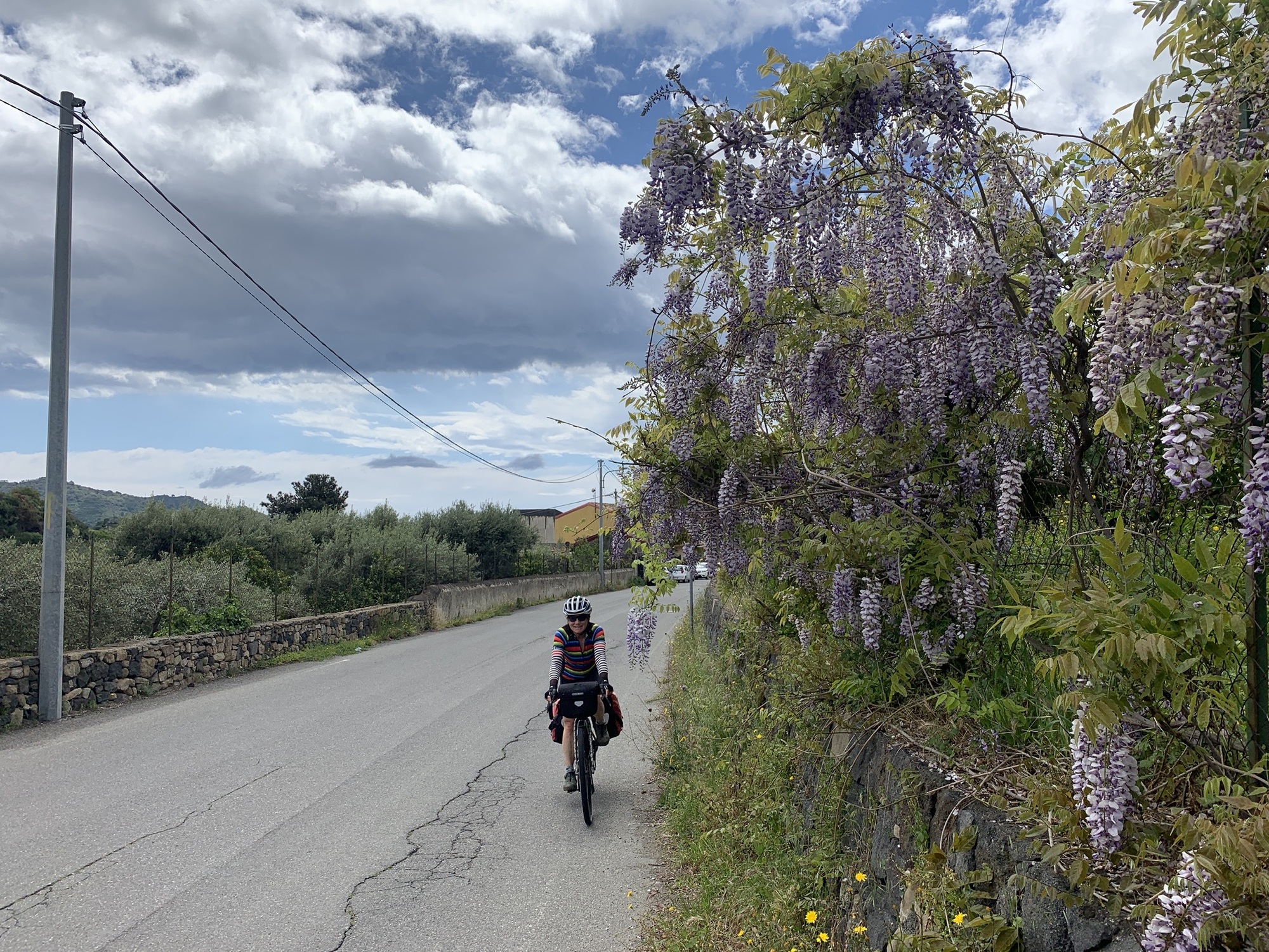 Back on our bikes just in time for the rain showers to start again. They were off and on so we never soaked through (we’d brought only rain jackets on this trip) but it was a chilly headwind the rest of the way into Randazzo. We found our accommodation, Ai Tre Parchi B&B, with no circling around or wrong turns. A record! Nice and warm inside as the rain started again. We have two nights here so will see what tomorrow brings.