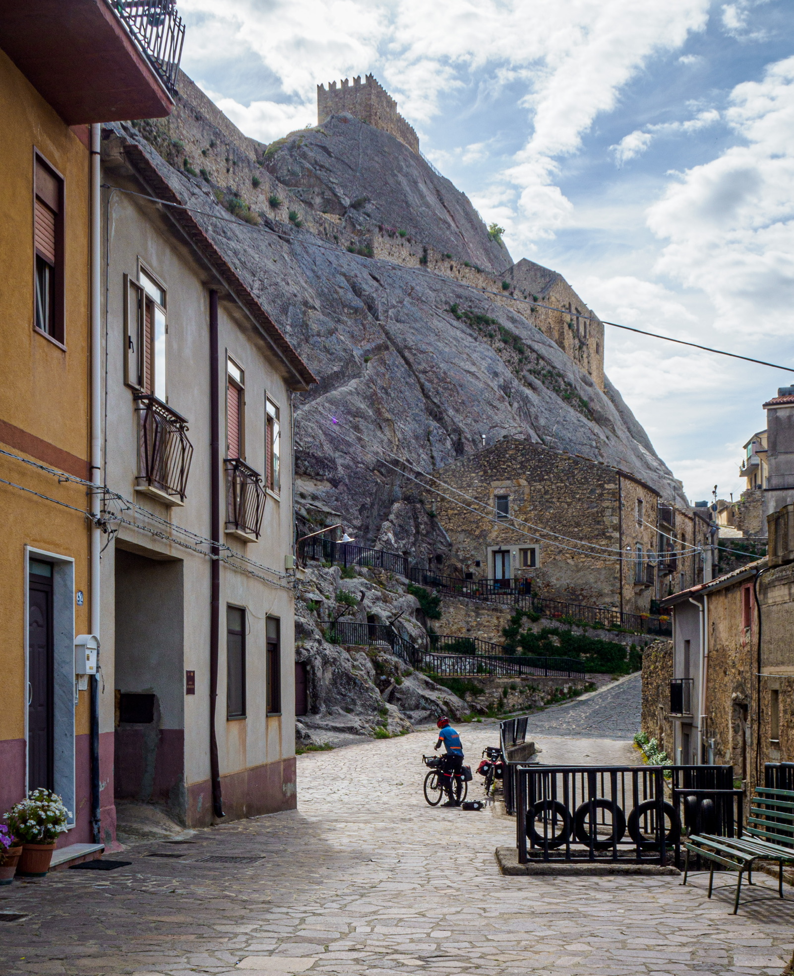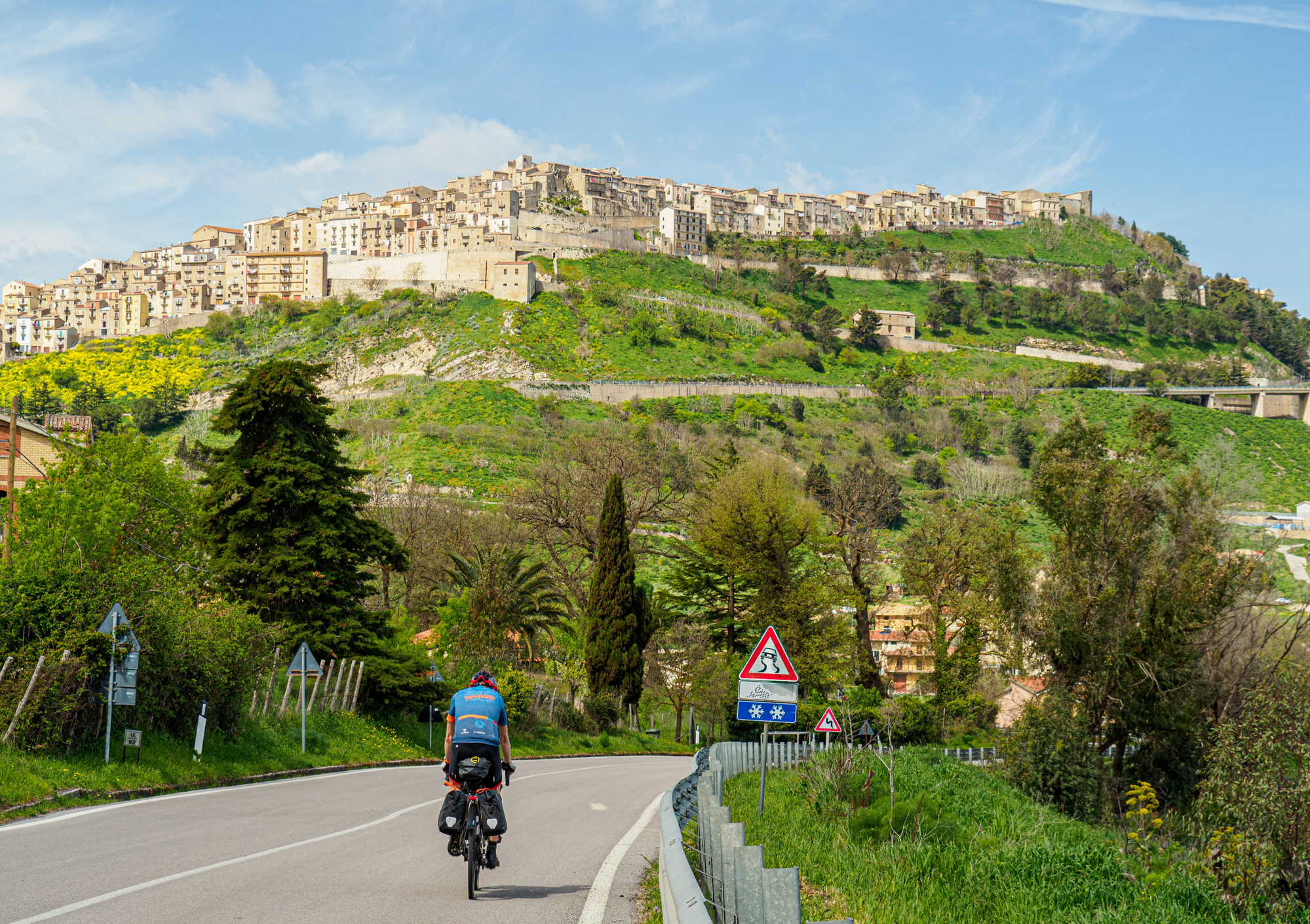 Approaching Gangi, where we each had cappuccino and a fantastic cookie. Our route contoured around so we didn’t have to climb through the town. Up to, but not through.
