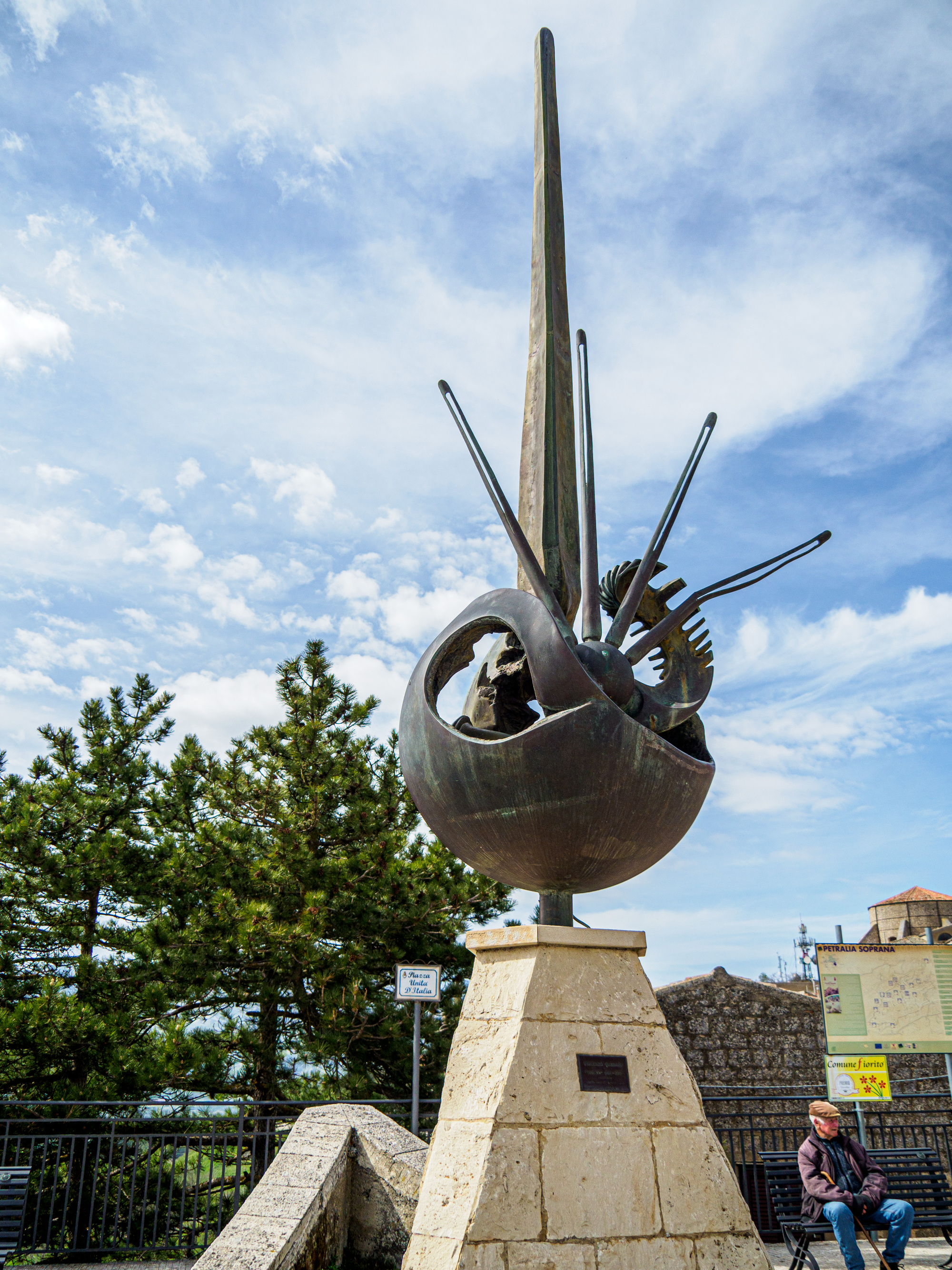 This is “La Cometa”, created in 1993 by Vincenzo Gennaro, an Italian sculptor born here in Petralia Soprano in 1944. It reminds me of Marvin the Martian. Why? No idea!