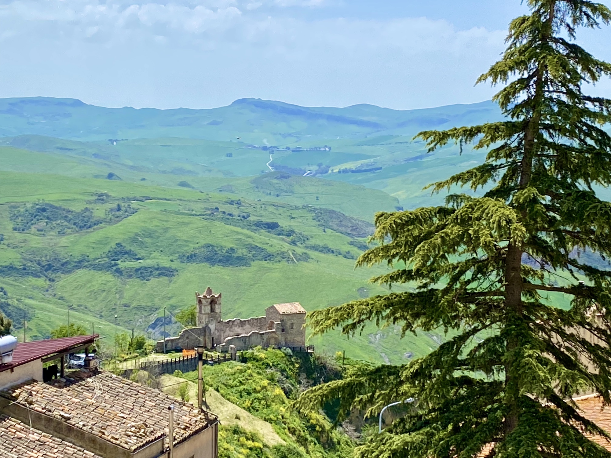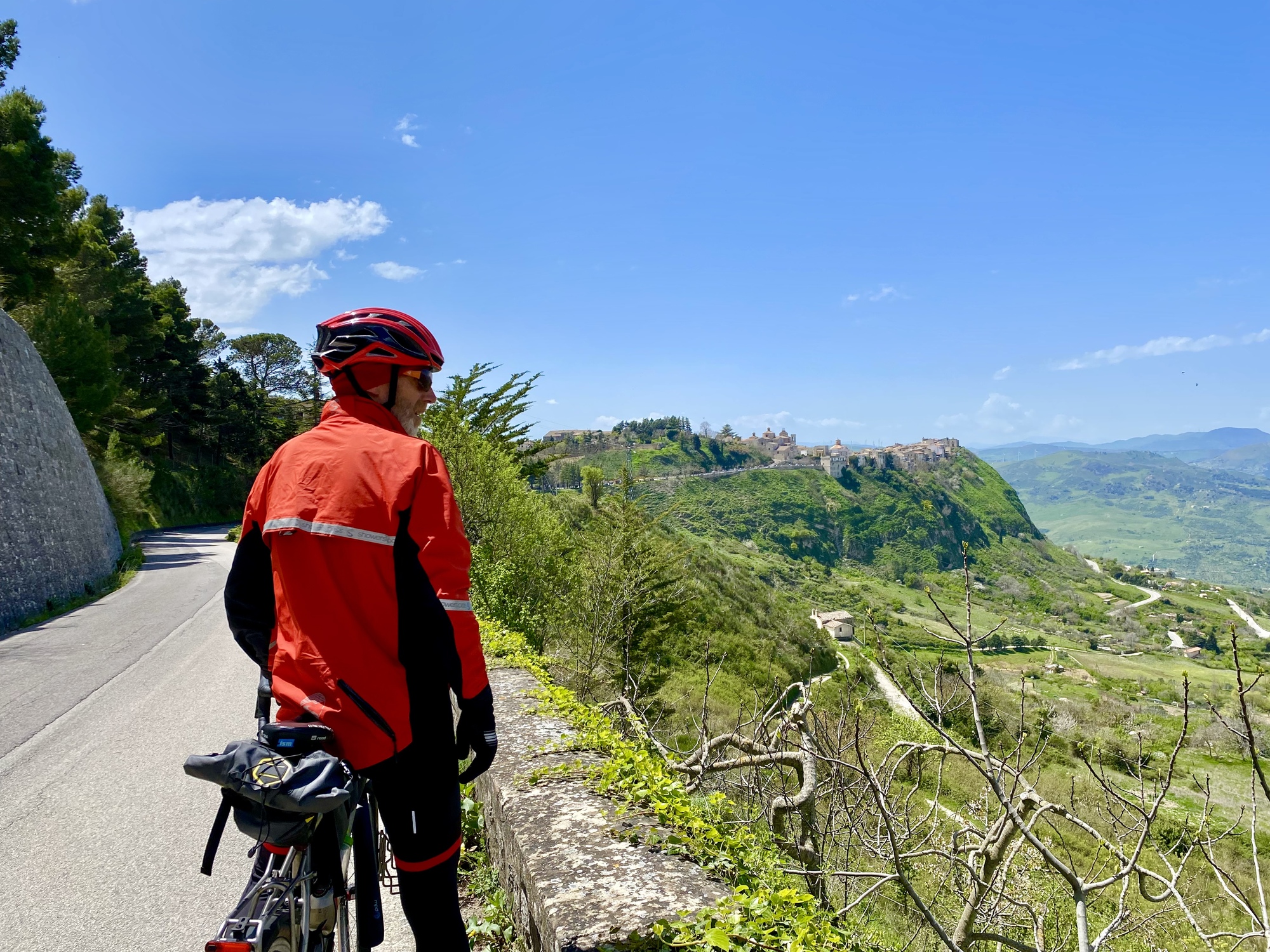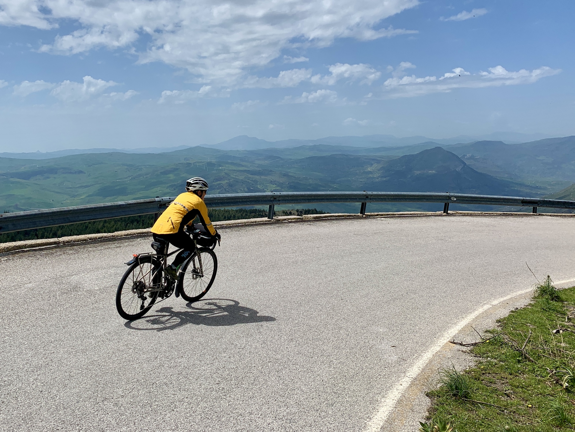 The first 25 km of today’s route were the same as planned for tomorrow’s ride to Cefalù. We decided that some changes would be needed by the time we had ridden the first 5 km. Descending through Petralia Sottana was (for me) terrifying, on steep, bumpy cobbles. We went down and then up, and discovered a road intersecting with our route that might have been better so I made a mental note to check it when we got back.
