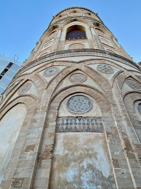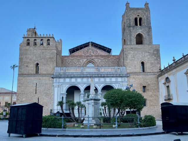After checking in and carrying our bikes up to the first-floor landing, we went for a walk to figure out where the Cattedrale di Monreale was, since it was the reason for our stop here. We ate a light dinner at a very nice (for us) restaurant which seemed popular for Italian family celebrations—there were at least 3 happening there on this Wednesday evening.