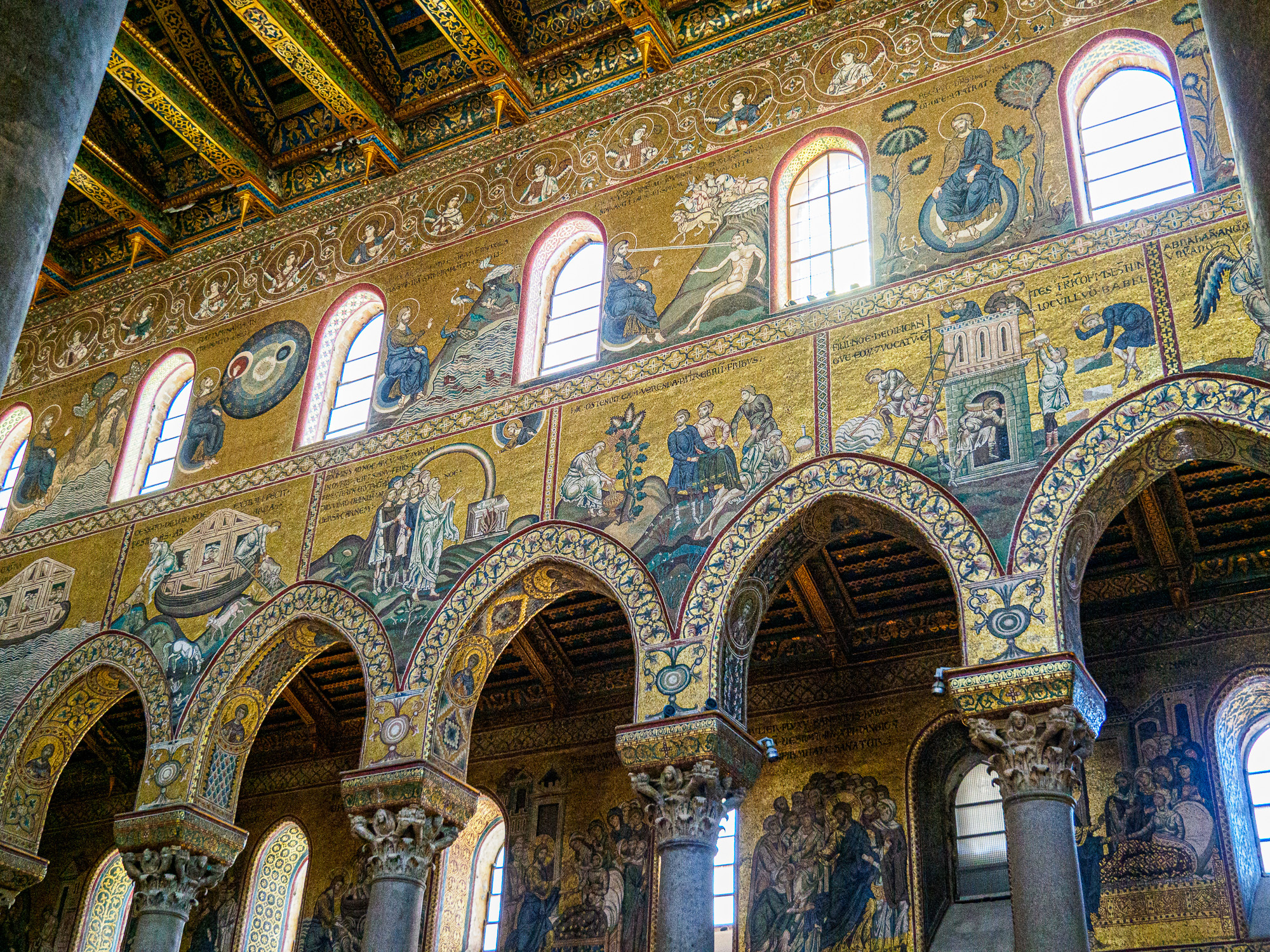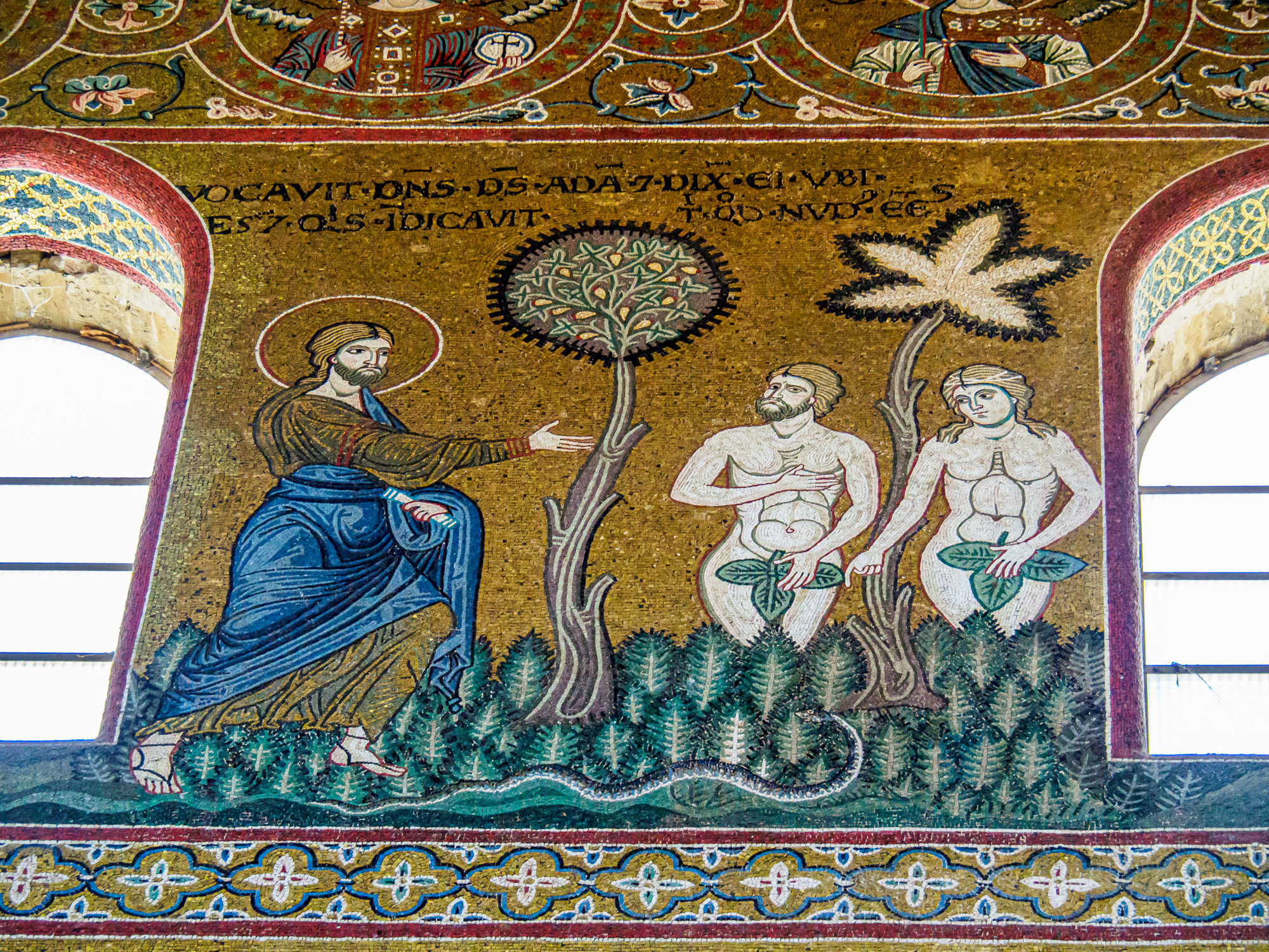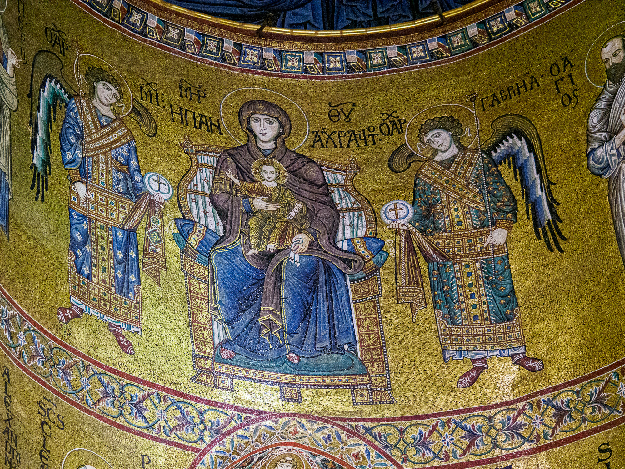 We were waiting to enter the Cattedrale di Monreale by 0830 and were first in line. That didn’t stop a French family from pushing past everyone in line to enter first, presumably to visit only the cathedral since they didn’t buy tickets. Despite the signs about proper dress, their two teenage girls were allowed in in their ultra-short cutoffs.