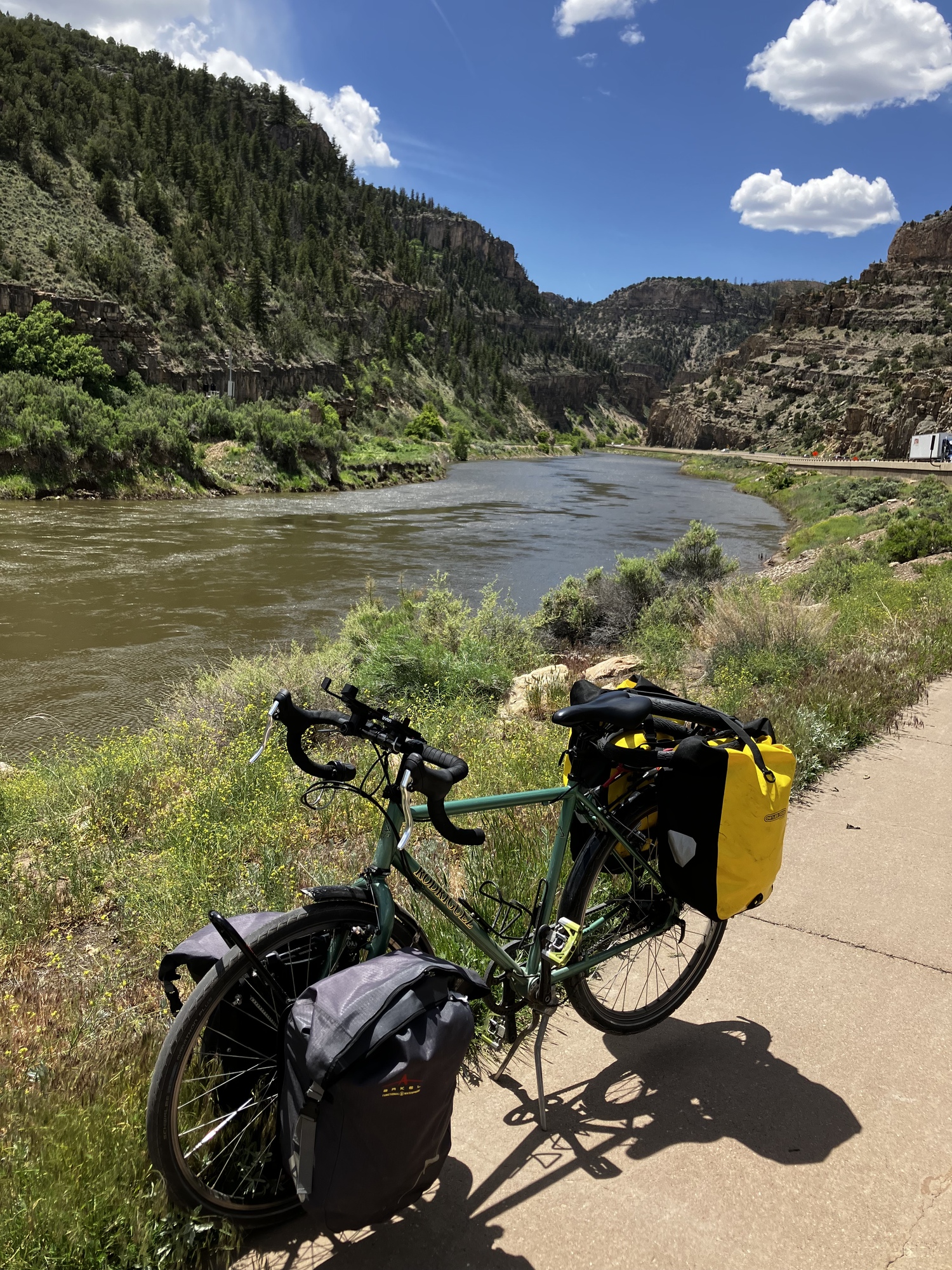 Hanging Lake is another area that has been closed because of the the fires and mudslides. I thought I had read they were now open again, with a reservation system. As we passed by, we didn't see a single person, and there was a trail closed sign on the trail. It was delightful riding. Dare I say I was also enjoying the tailwind?