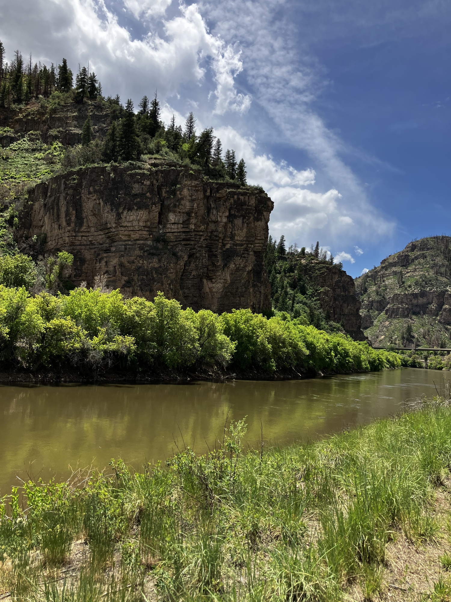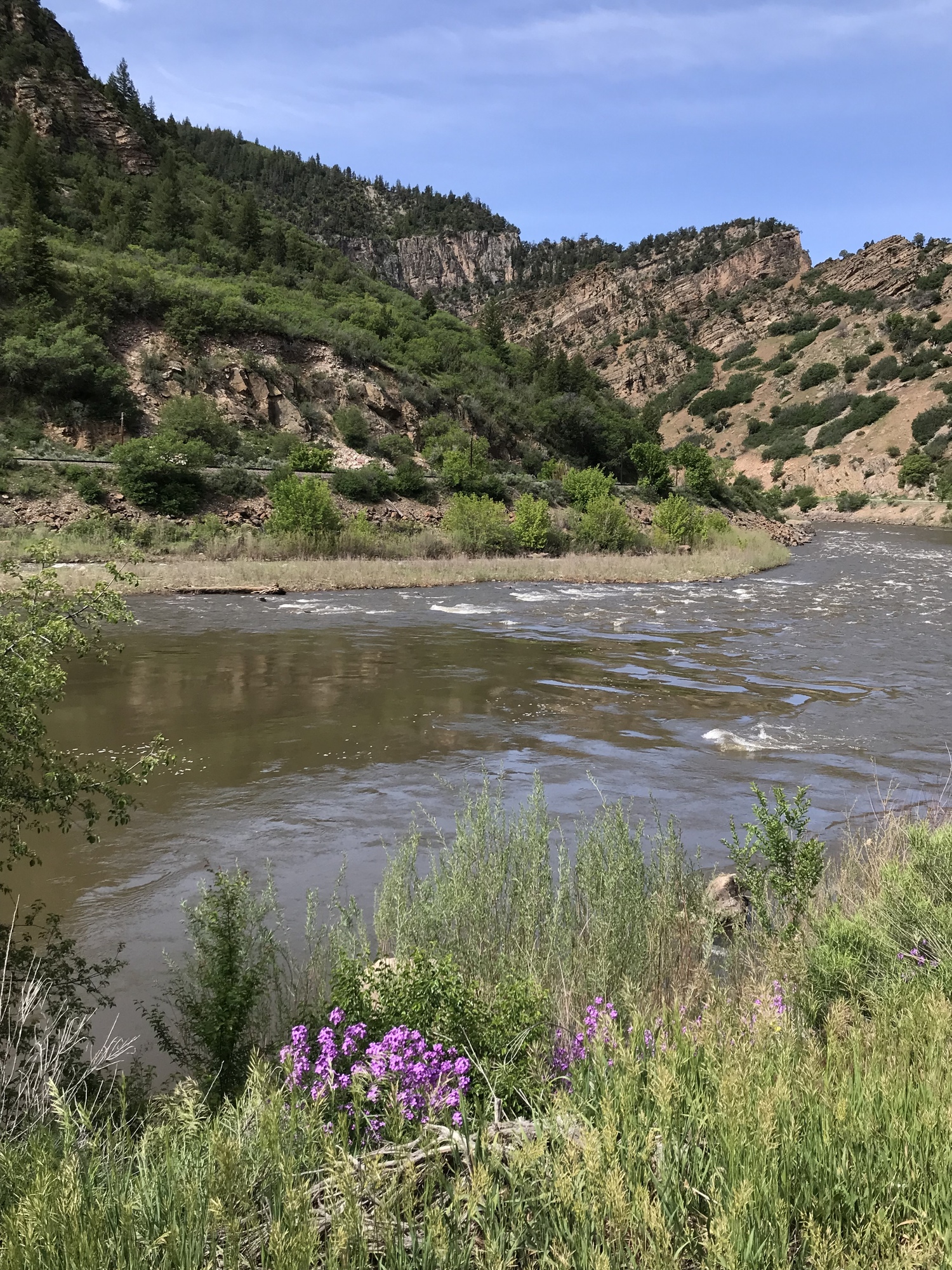 The Glenwood Canyon bike path has been closed for over a year. Two years ago there was a big fire in the canyon. The next summer, a sustained rain caused a series of mudslides. One of them was big enough to close the interstate for several weeks. That was a very big deal. The bike path was also swept away in the mudslide. It wasn't a priority to open, but did finally open just now, in time for Memorial Day. I expected that it would be in good condition, given how long it took to open it again. I was surprised to see overgrown grass and bushes, plus there was mud and sand in many areas. Typically the trail is quite pristine.