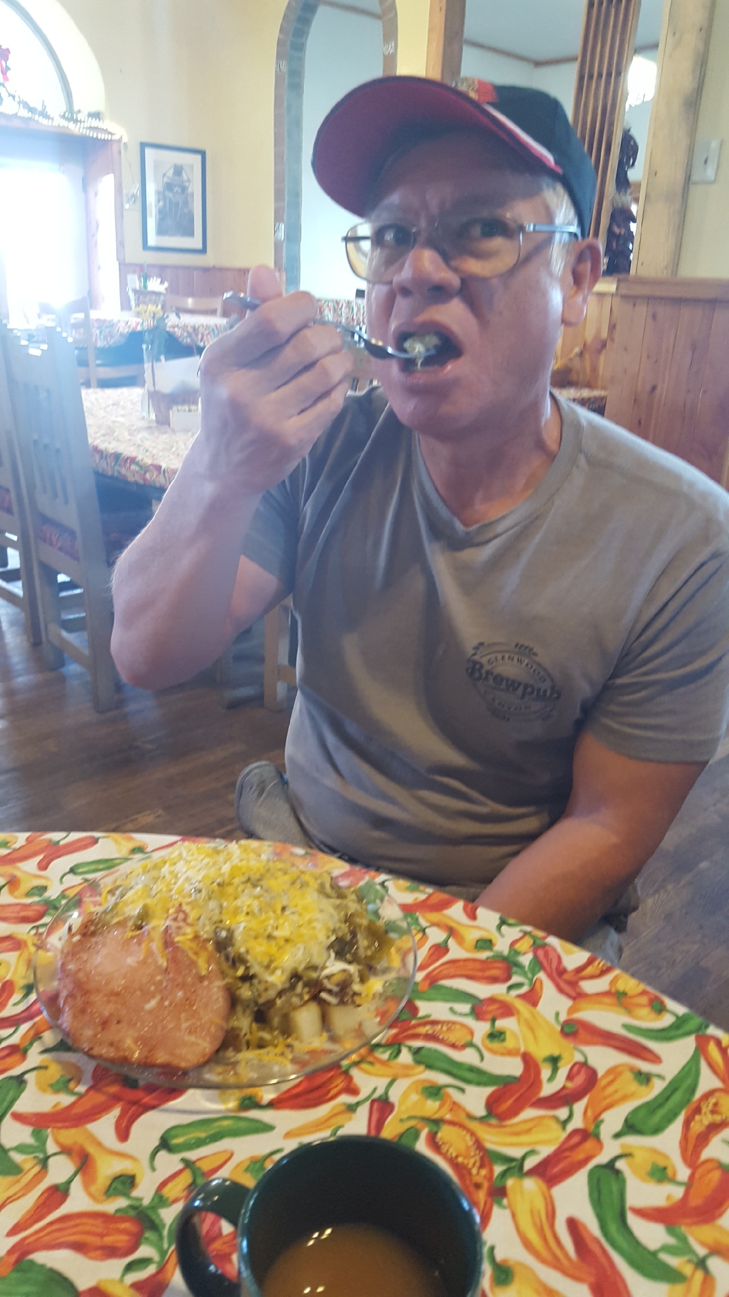 We were downstairs right at 9. Our bikes were outside. Oren was packed and ready to go. We still needed to bring our things down. It took quite a while to get our food. Then we chatted more with Debbie, who came to town special to make us a proposition. We could ride to Chama, she would pick us up and bring us back to spend the night, then she would drop us off again. That was a VERY generous offer. I wish she had made it last night. We might have considered it then. 10:30 was not the time for me to be starting such a big ride. I would have been out the door at near daybreak, had we been riding to Chama. We thanked her for the offer and rolled down the road.