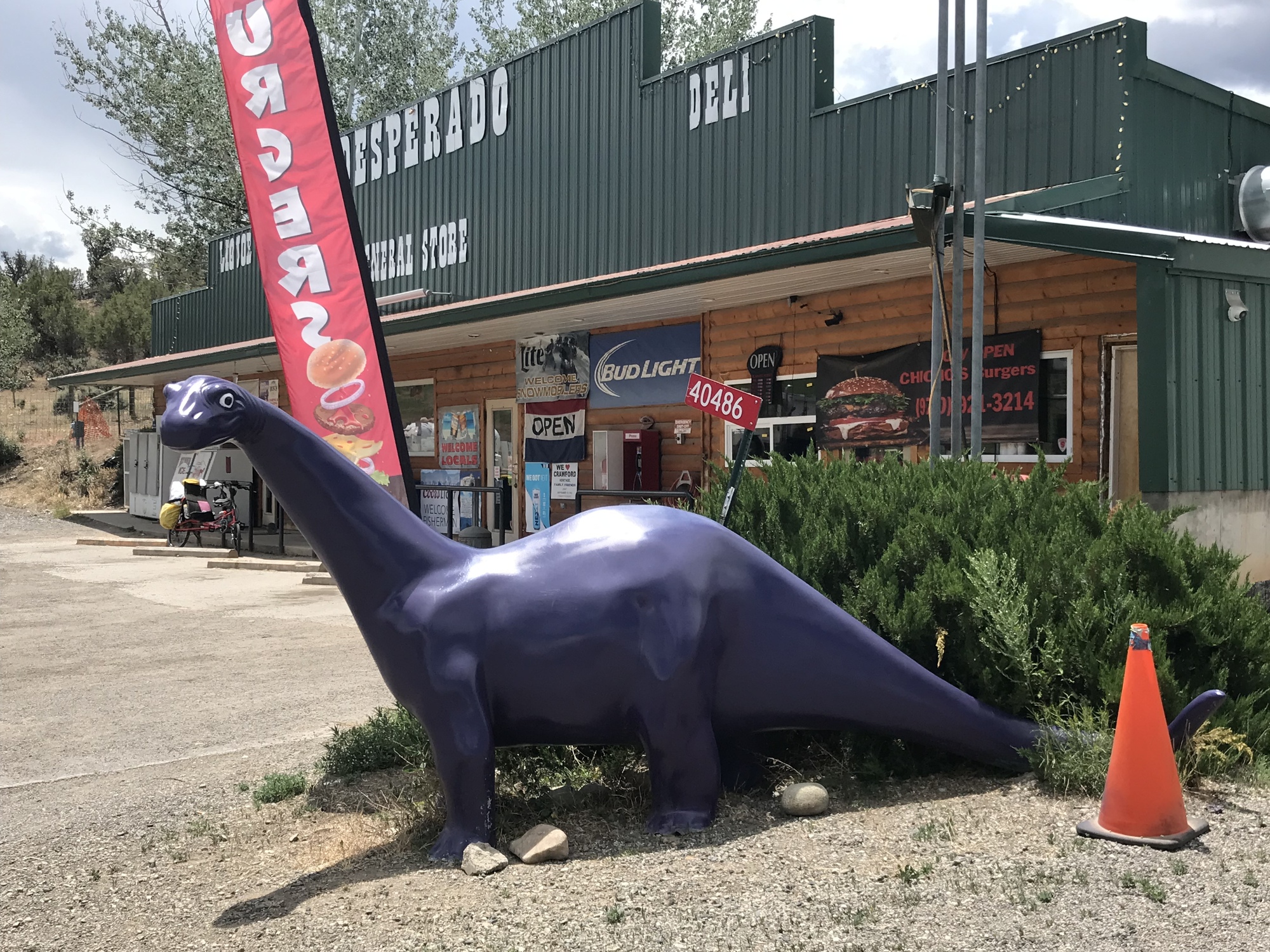 We stopped at Chico's hamburgers at the gas station before town. We had GIANT hamburgers that were delicious. We talked about my problem. Oren sat on my bike, and applied pressure to the pedals. He could hear the noise I'm talking about.
