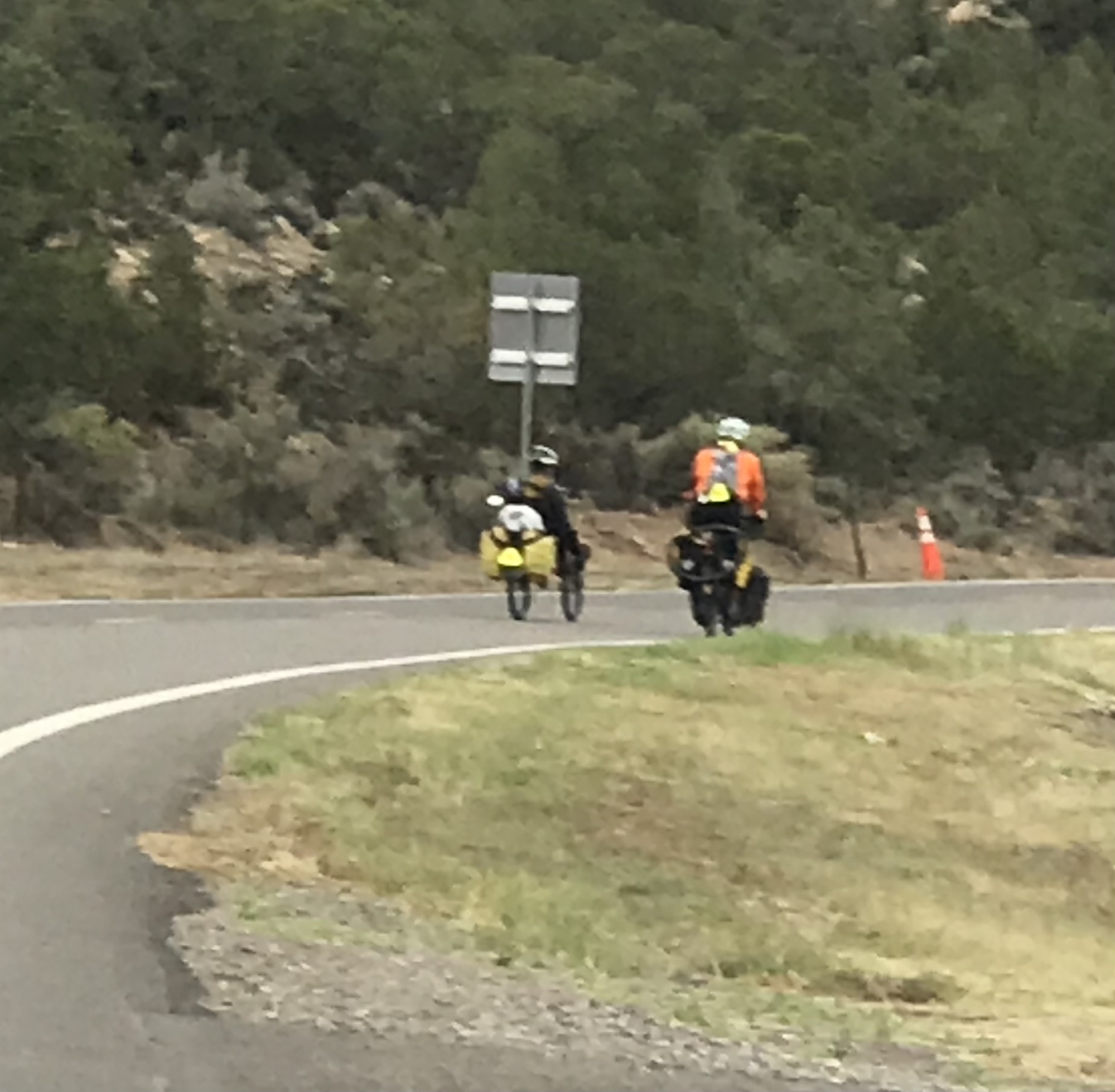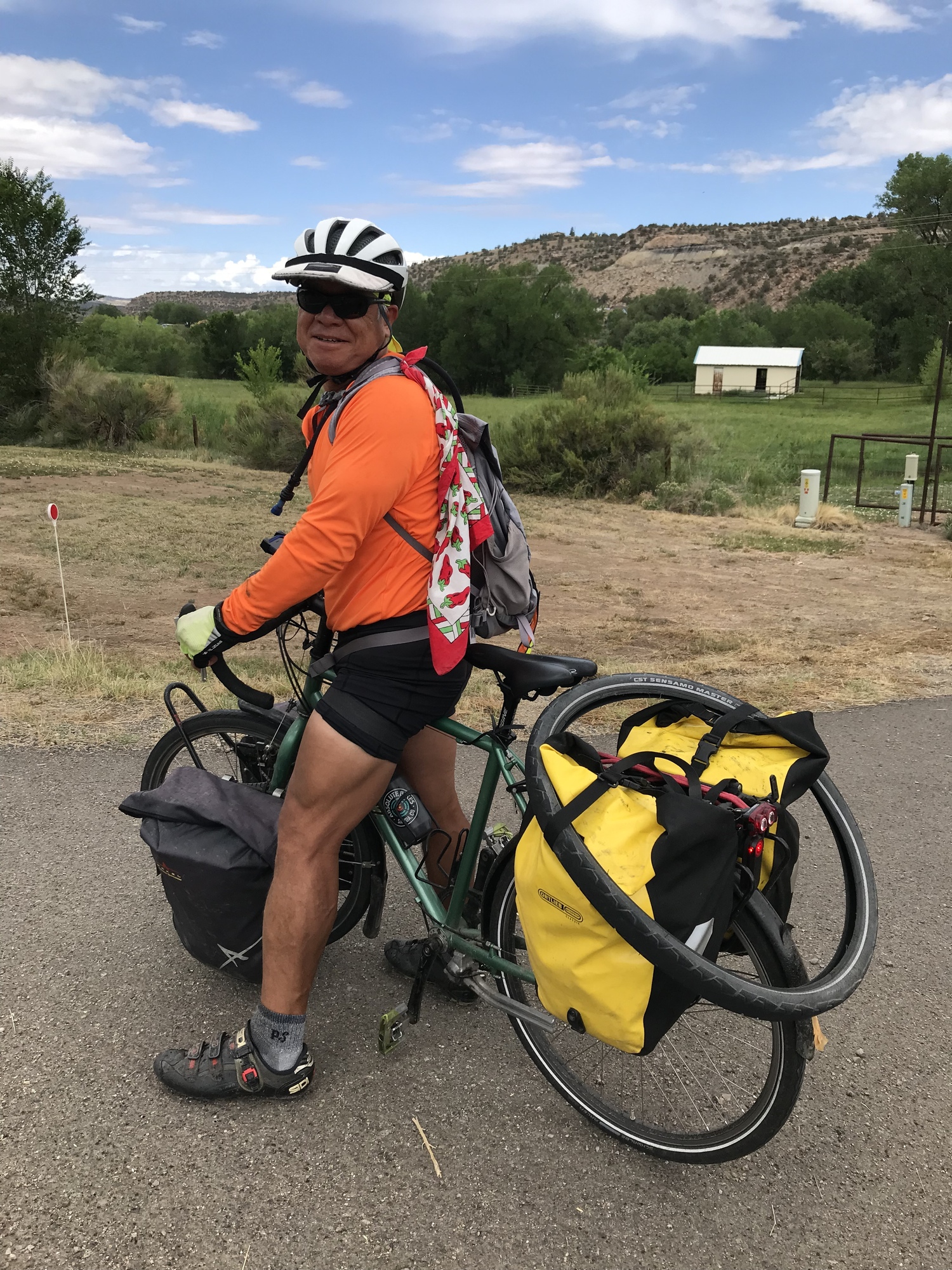 I was asleep by 8 PM last night and slept well until 6 AM. Do you suppose the day was more difficult that I thought? Today was a whole different story. We got to sleep in, and prepare for a leisurely, downhill cruise to Naturita. Jacinto rode with us. We ate just enough breakfast to be hungry once we got to town.