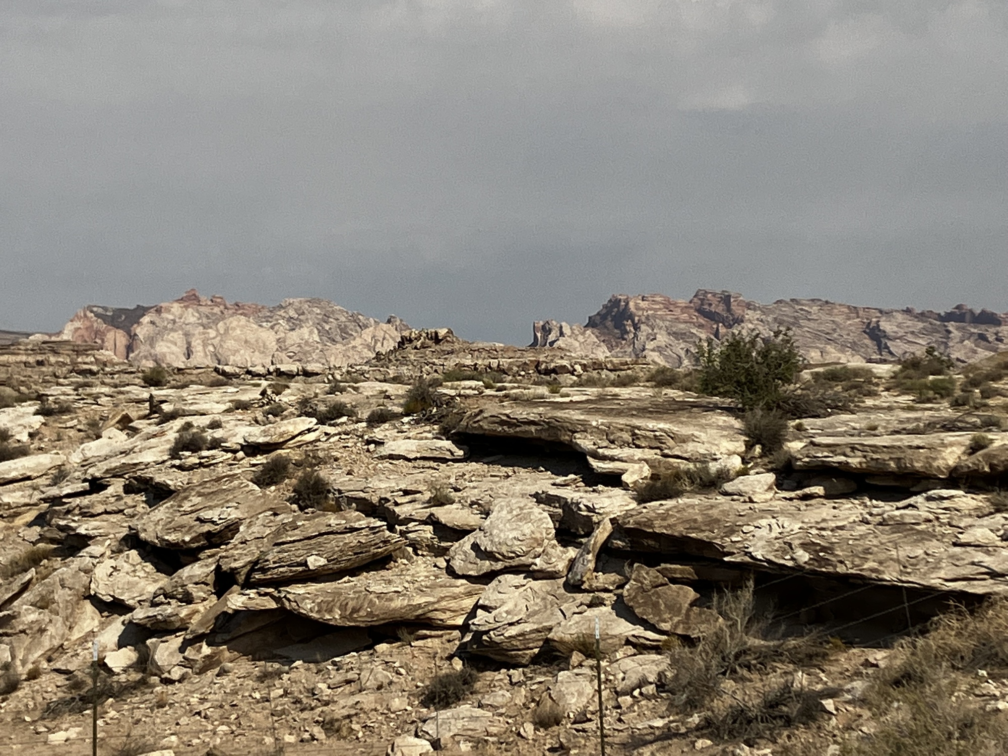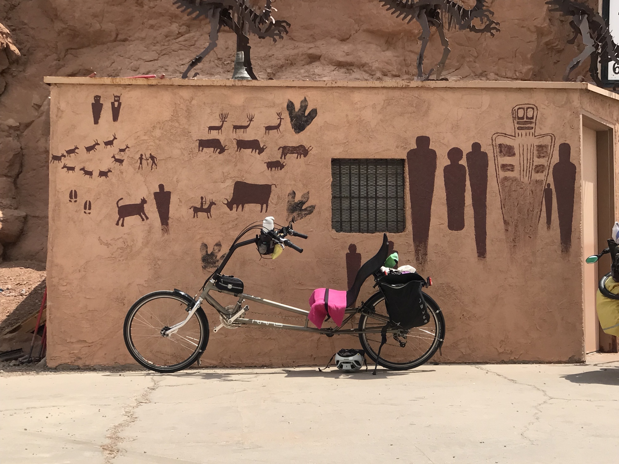 It's interesting to ride a route the opposite direction. In 2019, we rode into Green River. I didn't really recognize anything until we got close to Hanksville. There was the boat junkyard. I saw the Whispering Sands Motel - where we stayed last time with the very grouchy manager (who wouldn't let us in the room until exactly check in time, despite the fact that the rooms were clean and they were very empty). This time we are at the cabins next to Duke's Grill.