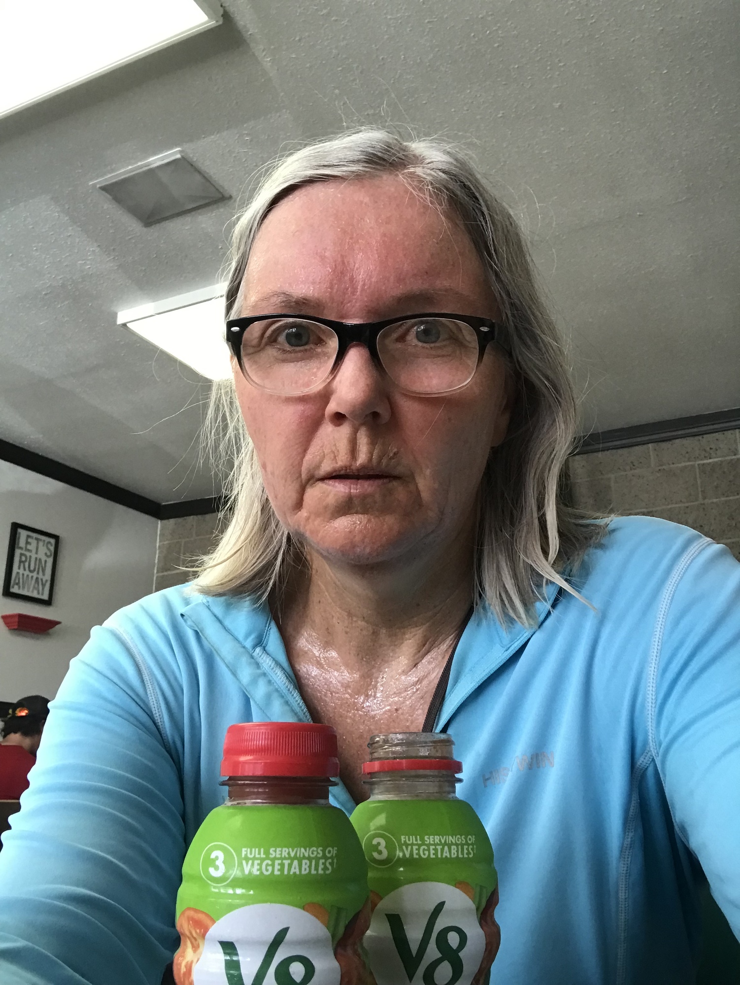 I thought twice before I bicycled downhill, past our lodging, to the Subway/convenience store. My intention was to buy a Subway, but the line was too long to stand upright. It was all I could do to sit still and drink V-8. Oren joined me and looked quite alarmed at my appearance. I walked back up the hill, I didn't even try to ride.