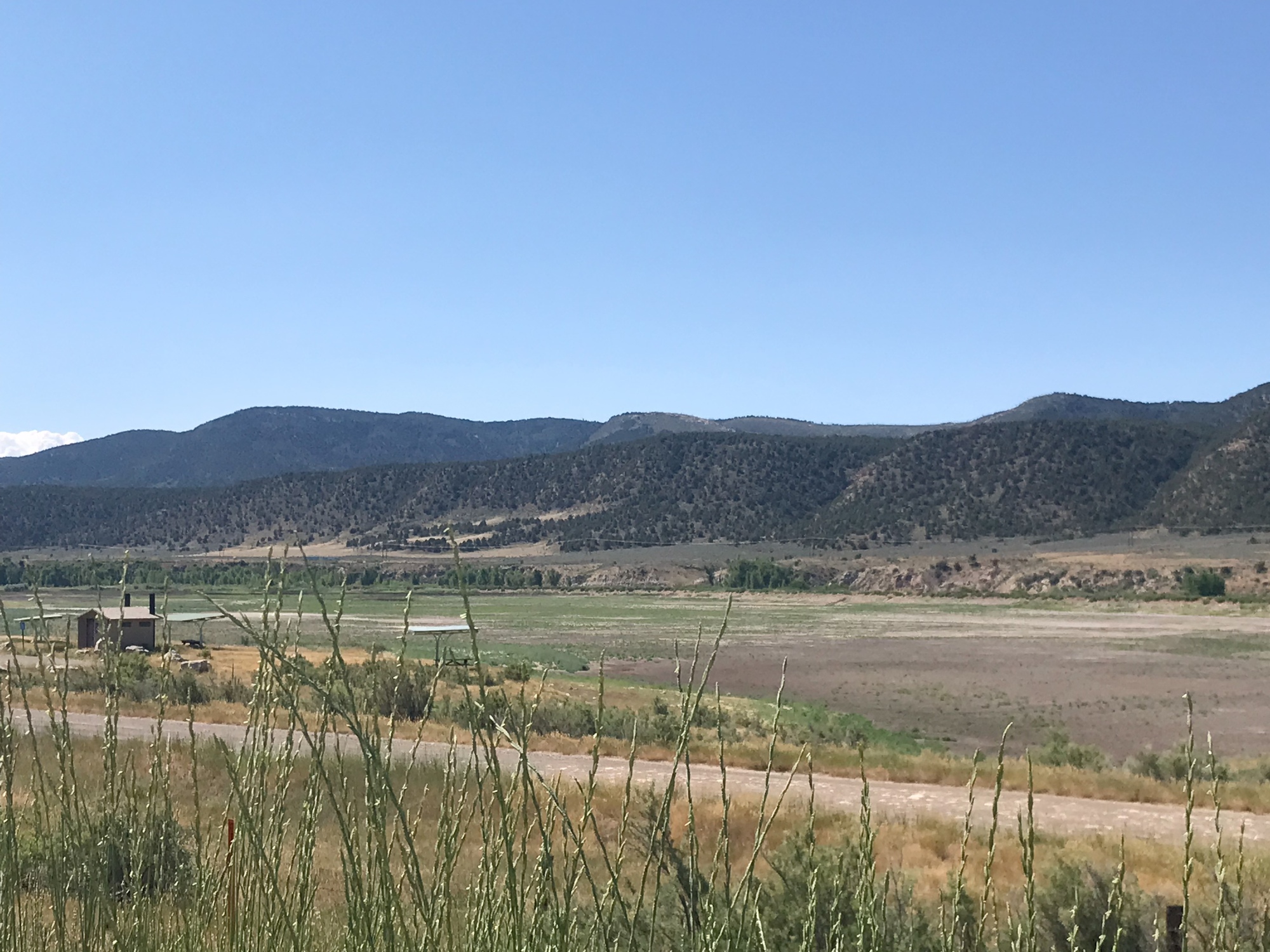 The day was heating up. I had two cold water bottles, and two warm ones. I mentally figured my miles an hour, and how quickly I could drink the water. Yesterday was overcast for long enough that I didn't drink much. Today, the clouds burned off and I was gulping water faster. I mixed a second electrolyte bottle. Usually I have just one for the day. I still had ice. I ate one bar that had chocolate. If I was going to eat that one, I had to eat it before the sun melted the chocolate.