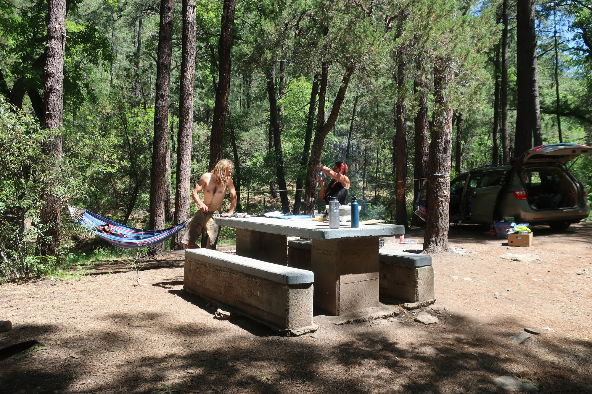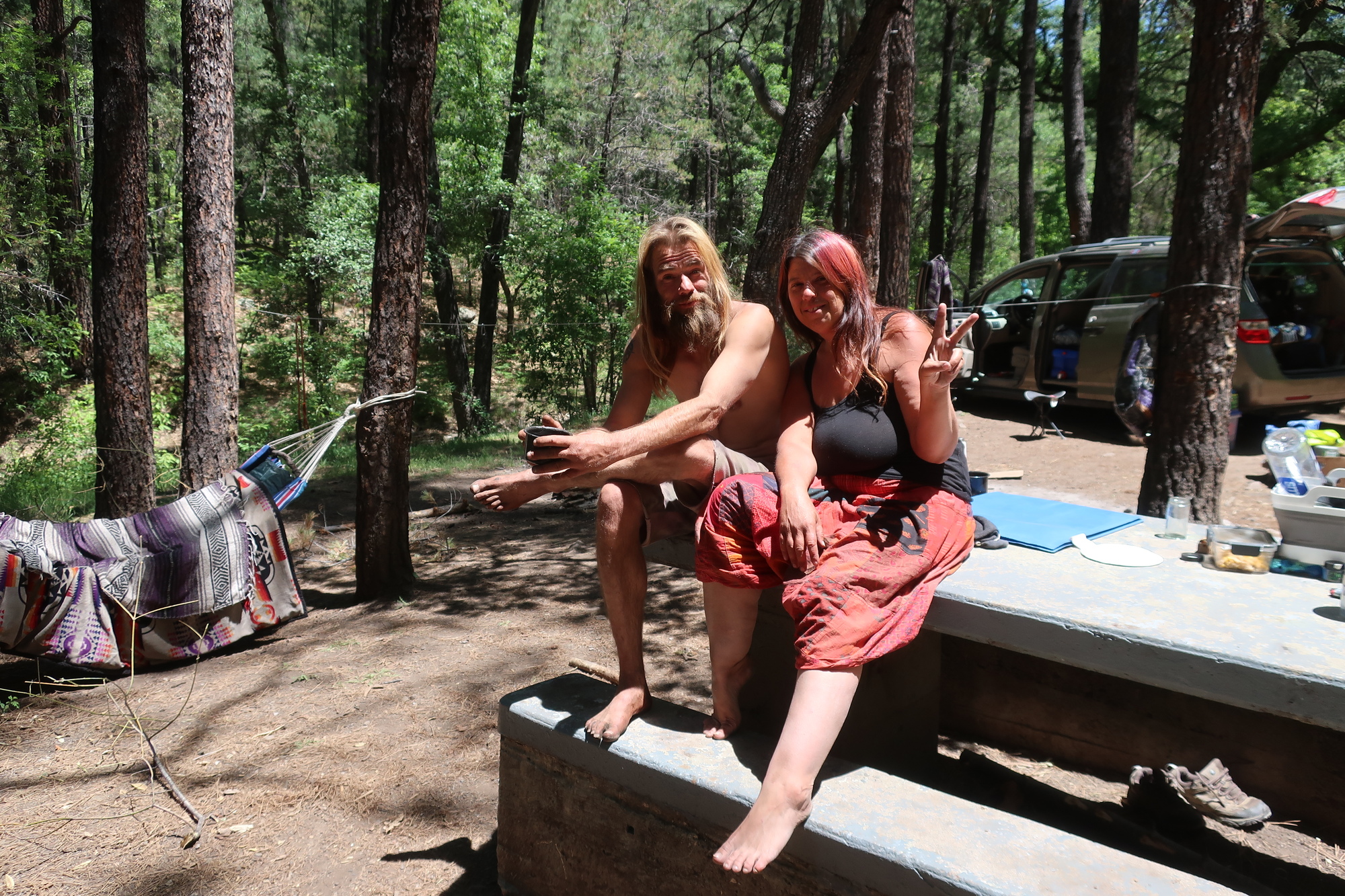 I pulled into Cherry Creek campground about 14 miles out of Silver City on the chance there was a spigot to top off my water bottles. It is a dry campground but Jason and Jen were there with their dog Sport and were eager to share what they had with me. They’ve been living out of their van for the past five months and are the among the most happy and chill people I’ve met.