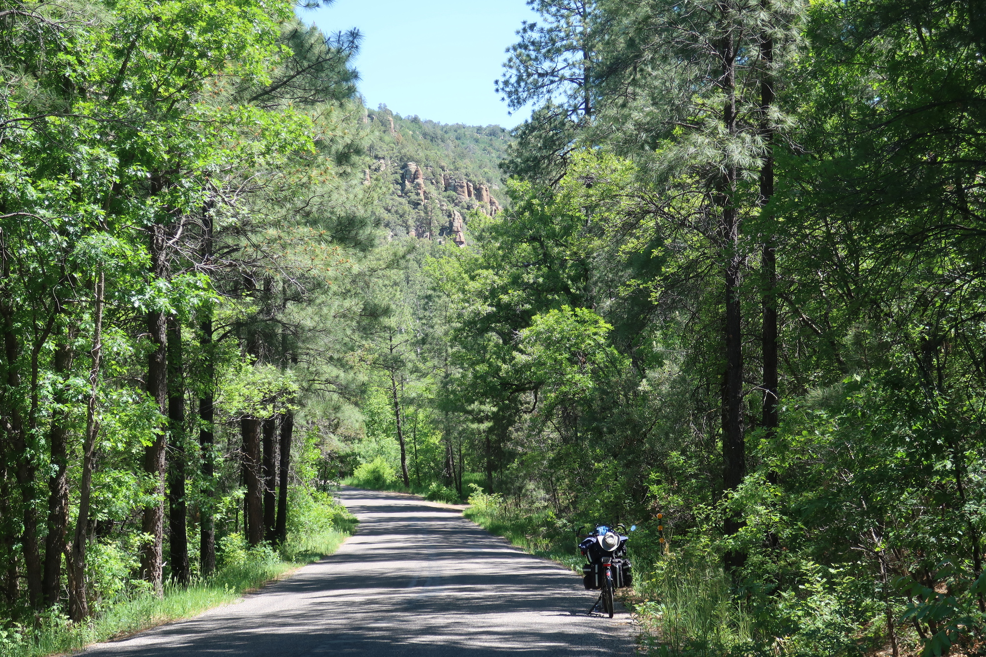 So, I kept on going. In spite of the hills (I was often in my lowest gear and walked a couple of times) it felt really good to be here in the trees. Nice. But I’ve had enough of hills that I want to stay where I am and begin tomorrow with a nice downhill ride before beginning the climb towards Gila Hot Springs.