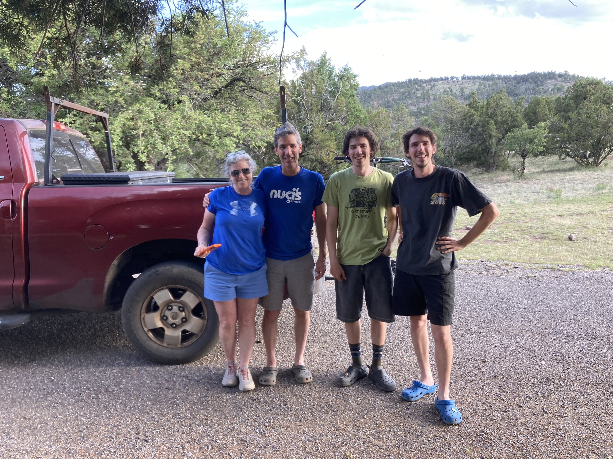As I was dozing in the shade waiting to get motivated to set up my tent, Michelle drove by looking for her husband and twin sons who are biking the divide while she’s following along with a truck. I told her about the hot springs which she took her family to once they appeared, and after they all drove over to visit me. They’ve driven from Georgia to ride the divide, Dad riding with the sons as far as Colorado then the boys will continue on their own. Michelle was equally disappointed that the stores were all closed and, determined to get me a treat, whipped up a delicious turkey and cheese sandwich with Dijon, which I ate on the spot and was much more satisfying than the stuff I’ve been boiling. So far I am only encountering good people on this trip.