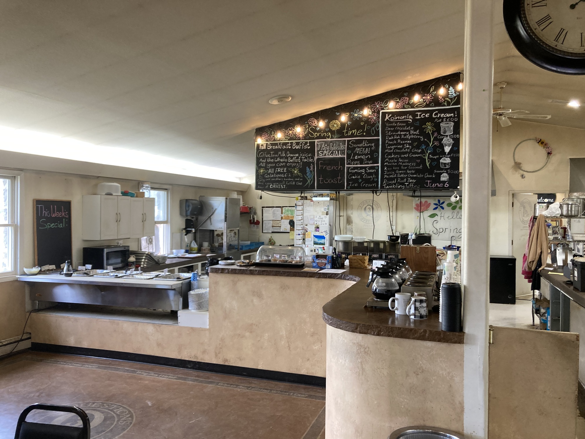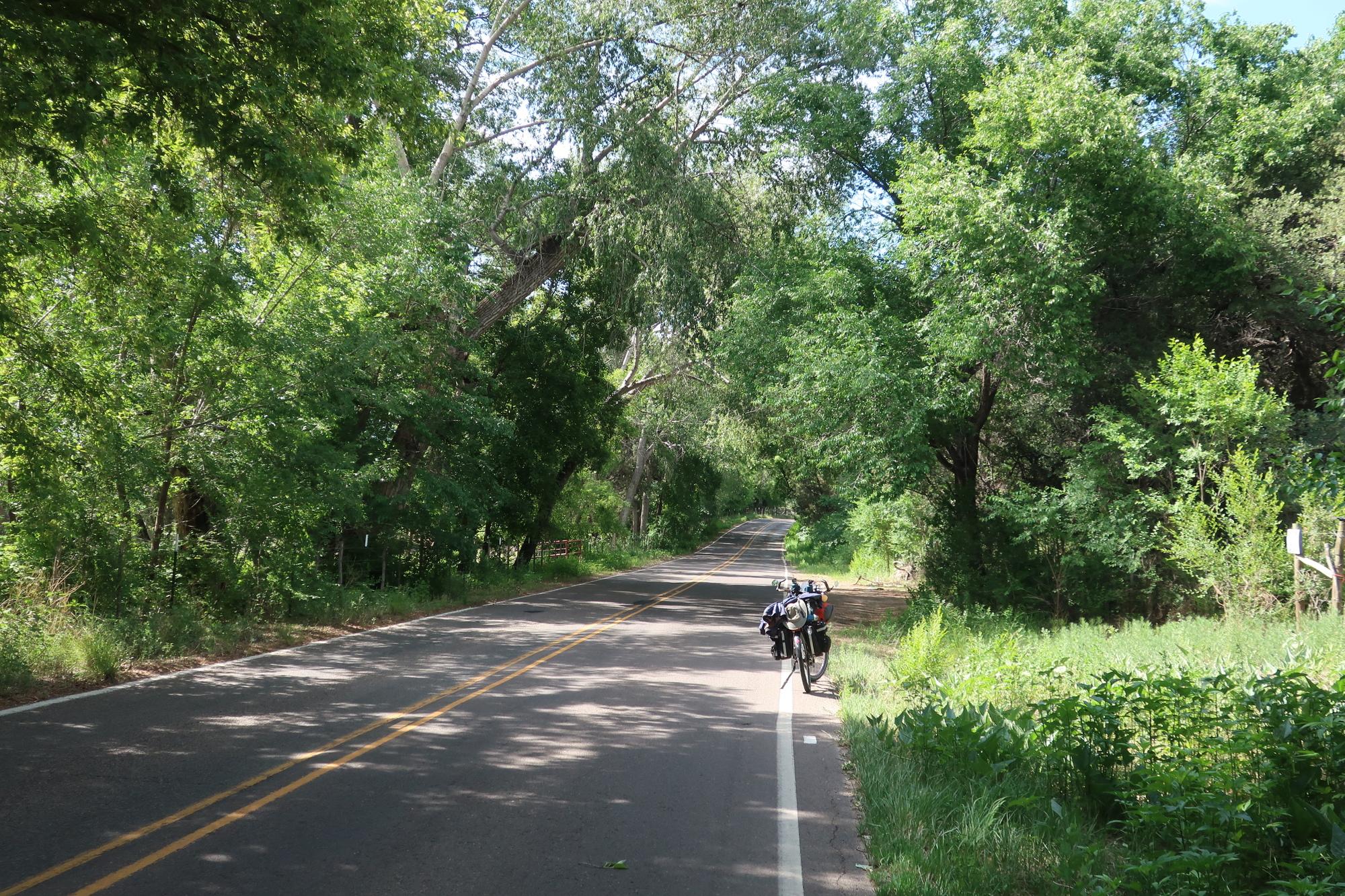 It was a pretty ride, but a headwind all morning made it slow. There were only closed places in Miembres, but I was told about 3 Questions in San Lorenzo, 2 miles further on. It’s a church which operates a bakery and daily breakfast buffet. The bakery sells the usual, and the buffet is free to whoever wants to eat. As much as you like. Pancakes, sausage, eggs, green chile stew! I embarrassed myself and then atoned with a donation.