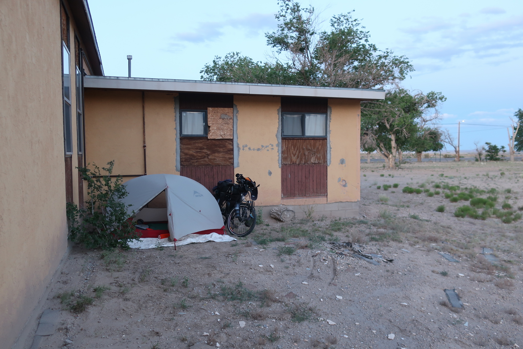 I left town around 3 and headed north towards Shiprock. This is all Navajo land, no real towns to speak of but many small communities every dozen miles or so. Gas stations along US 491 at intervals such that I didn’t need to worry about water. Places to camp discreetly were scarce, not much vegetation and lots of fencing. I opted to pitch my tent behind a church just outside Naschitti, figuring forgiveness would be more likely should it be needed.