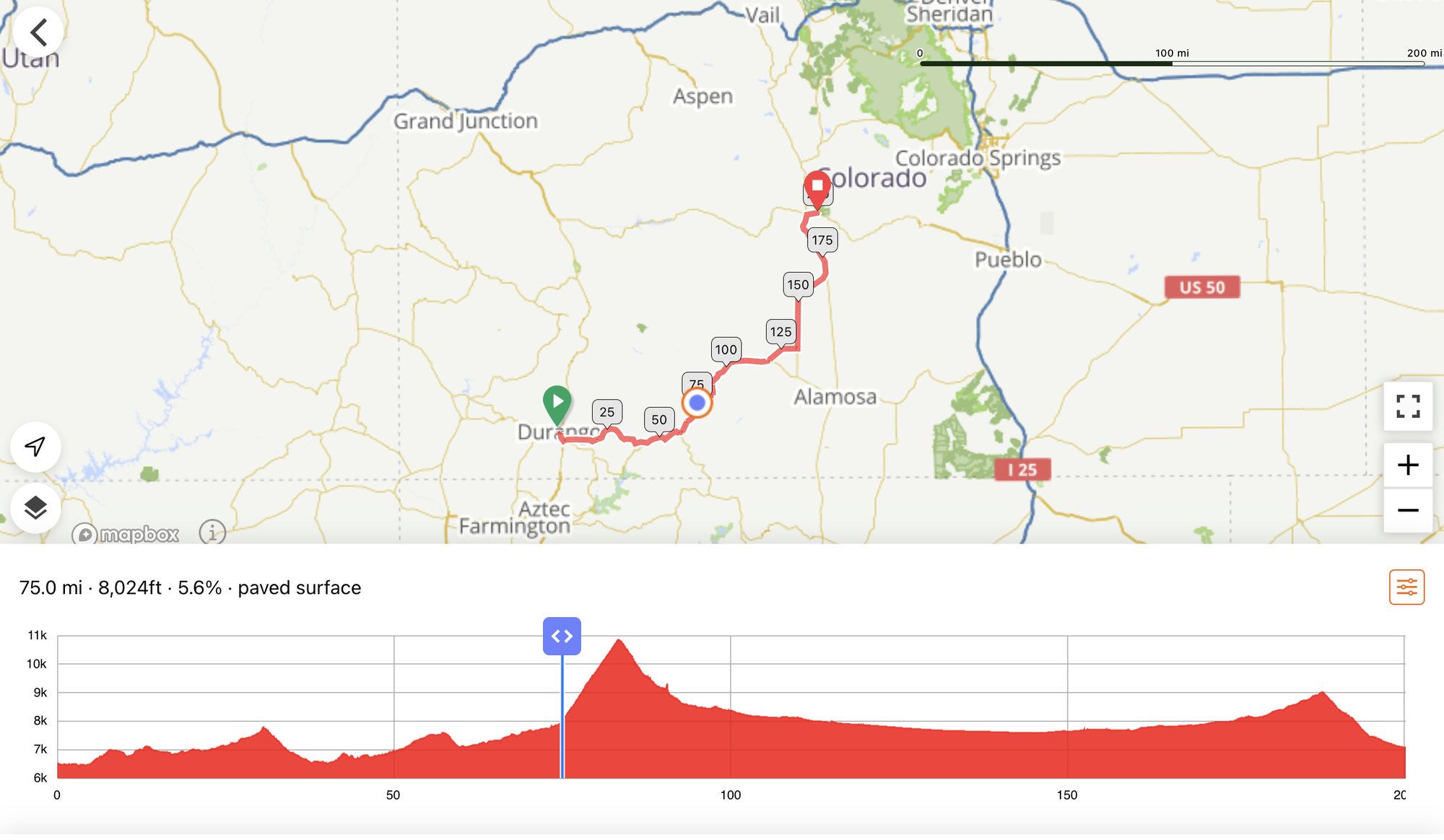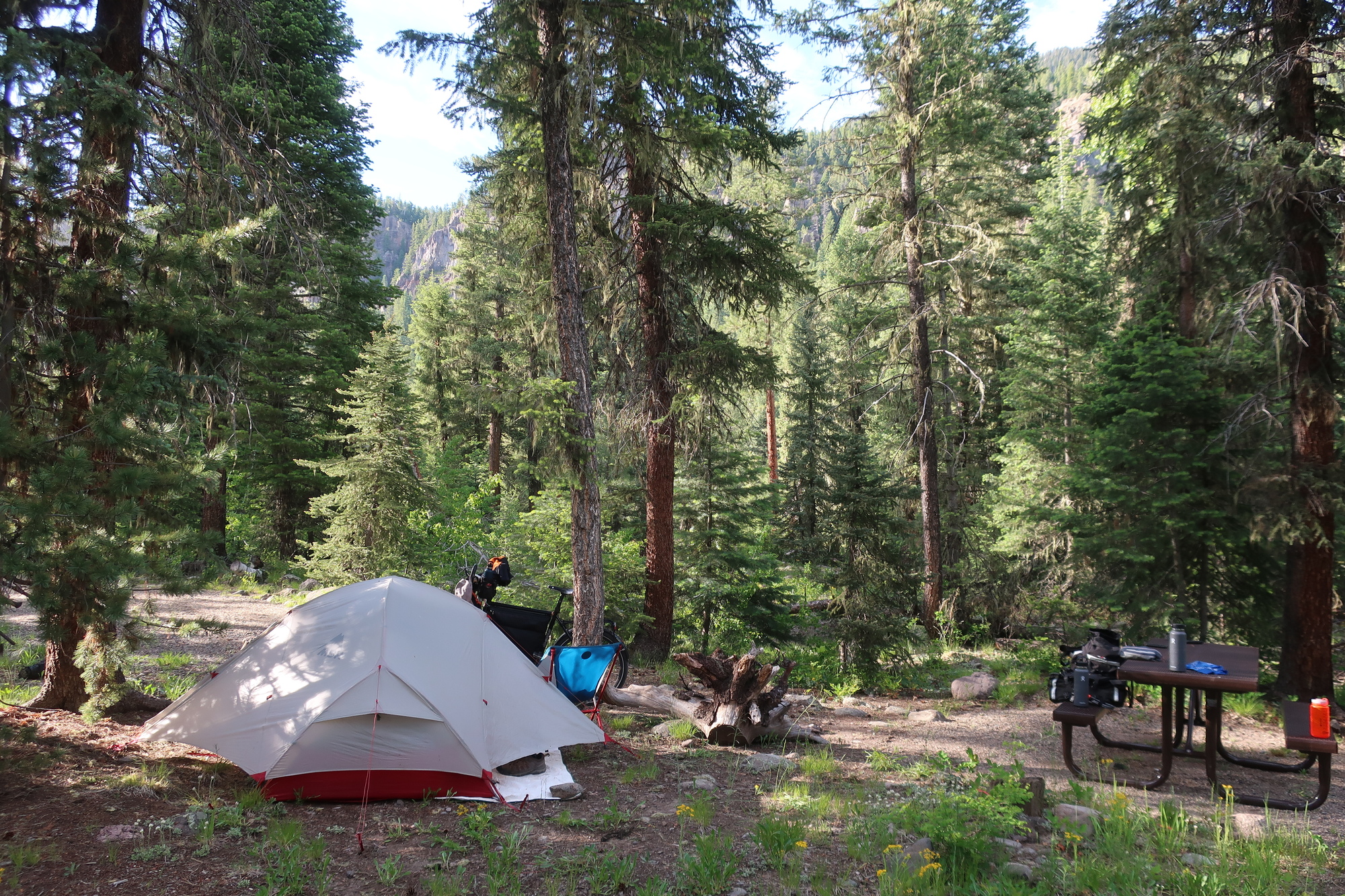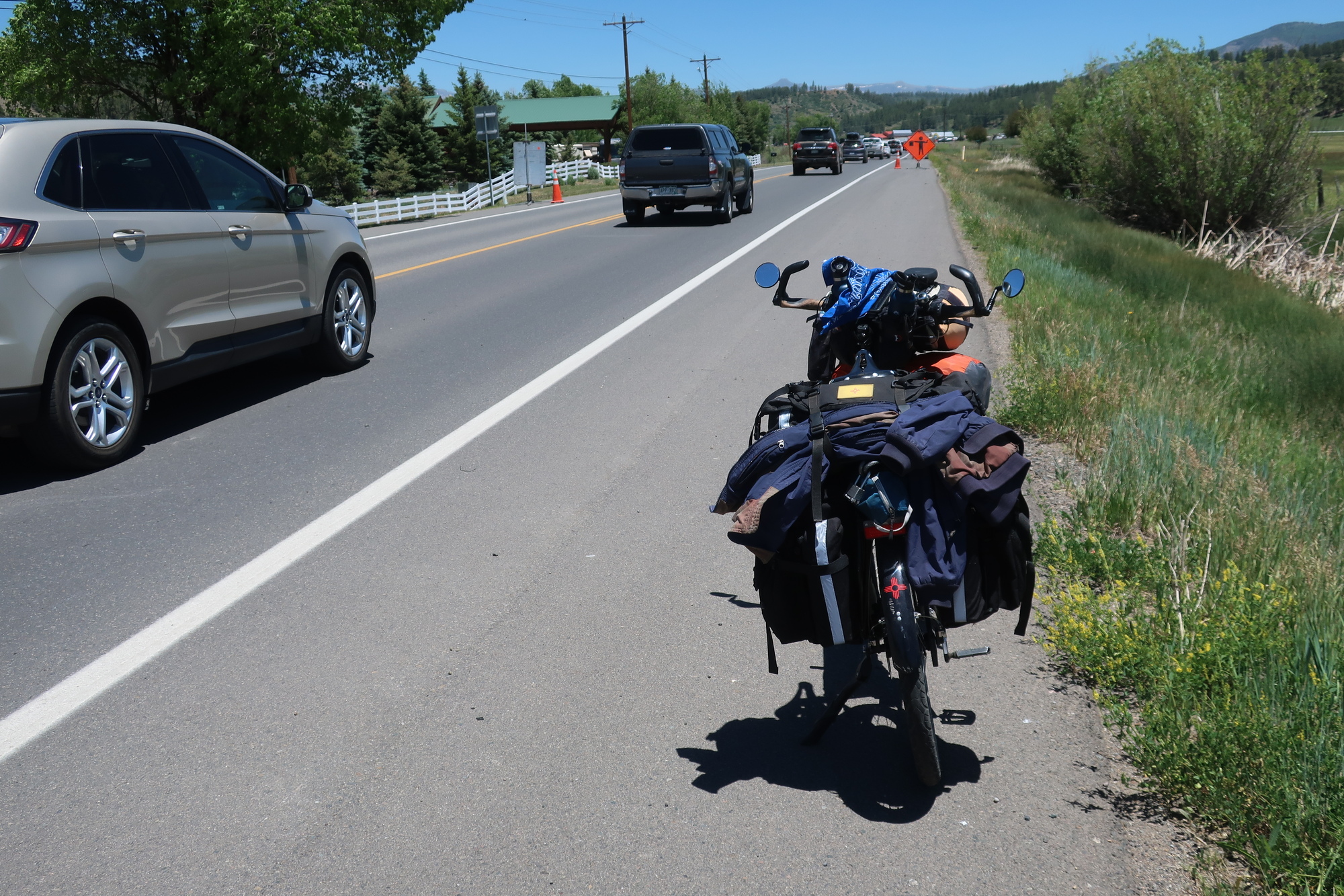 Chilly morning, had crackers with peanut butter for breakfast and set off for something more substantial in Pagosa Springs. I passed the turn off to Chimney Rock National Monument, a decision which I will regret but not today. After only a few miles I came upon a small store and got a coffee and donut, which was a nice unexpected treat. US 160 is really busy. There’s a nice wide shoulder so it’s not tense riding, but there are so many cars that it just gets plain loud. Pagosa Springs itself was a construction nightmare, I didn’t spend long there. Picked up some supplies for tonight, had brunch and then left. Noisy though it was, the road was absolutely gorgeous, I would often have to stop and stare. I don’t know if it’s the green, or the water or the mountains or the temperature, but all combined it was a sensory delight. I enjoyed today. I’ve seen the grade for tomorrow’s climb over the pass and it does not frighten me. My funk is gone.