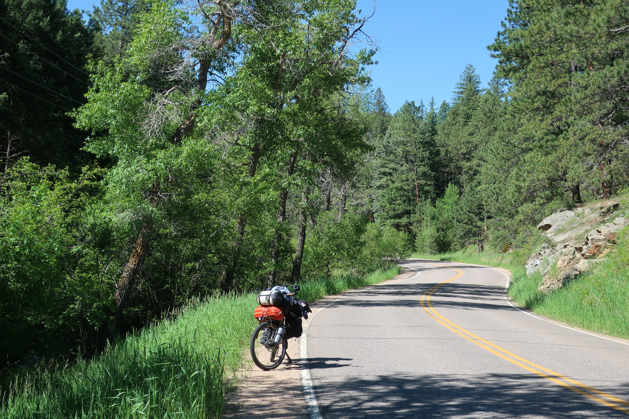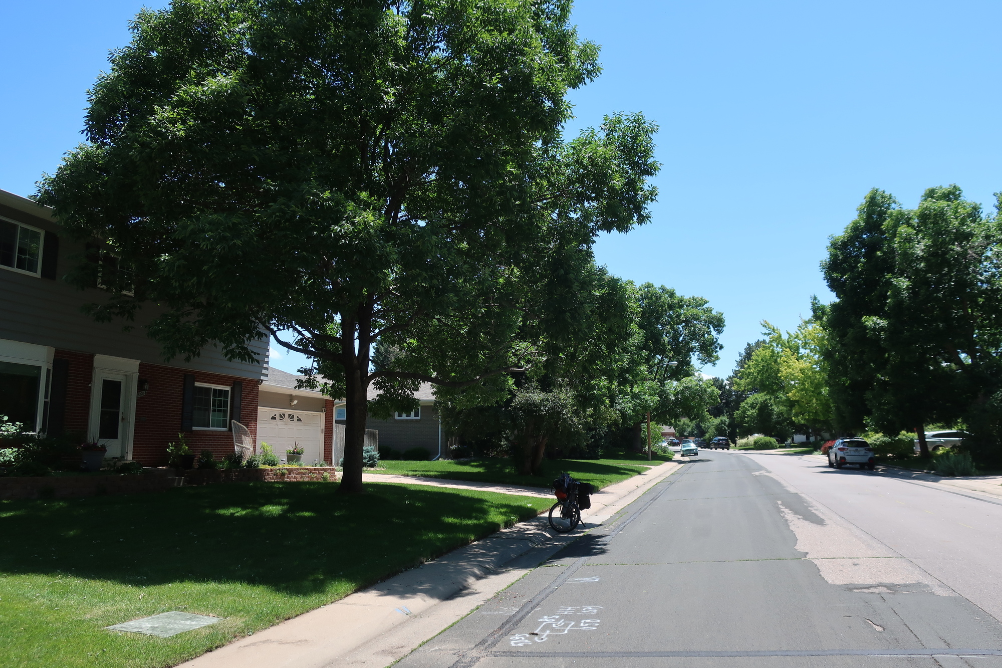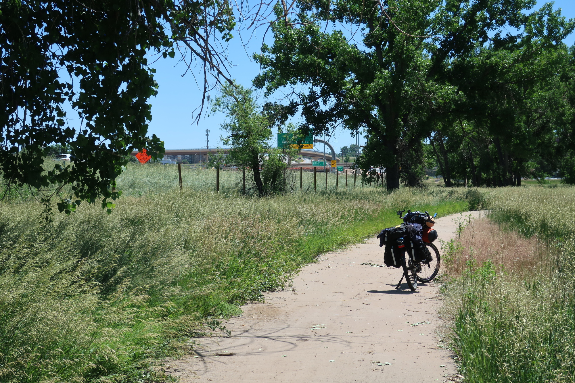 Today was pretty nice. I woke up at the start of a downhill ride with a coffee and bagel place 3 miles away. I left US 285 for county roads at the first possibility and it was back to bike touring magic again. My concerns about navigating a city as big as Denver on my loaded bike have been unwarranted, there’s and excellent network of bike trails that have kept me largely off city streets. I took a detour to the ancestral home, where I lived ages 5 and 6 (or was it 6 and 7)? I was pleased to find it matched my memories, but the field behind the house that lead to the creek where my brother fell out of a tree and cut himself and frightened us, or at least me, was empty no more. I have a couple of core memories from this place, the smell of freshly mowed grass brings me here every time. So when I smelled grass being mowed while standing in front of my old house I was transported here, which wasn’t here, which was odd but nice.