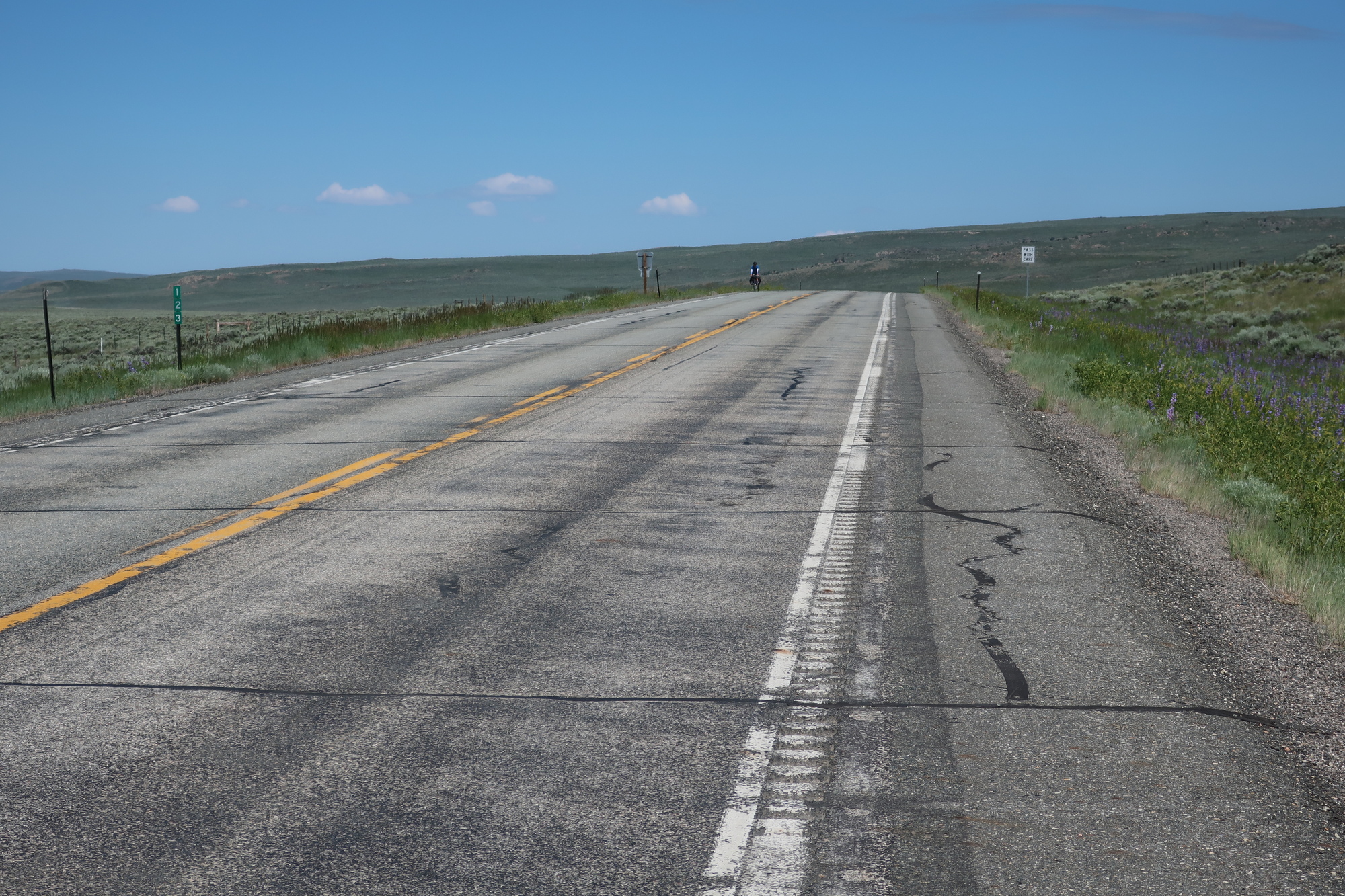 No Welcome to Wyoming sign at the border, I feel cheated. Largely downhill all day, but with strong, unfriendly winds, so it was a slog. Strong, unfriendly winds are in the forecast for the next several days as well. I’ve been expecting this, so my head is in the right place.