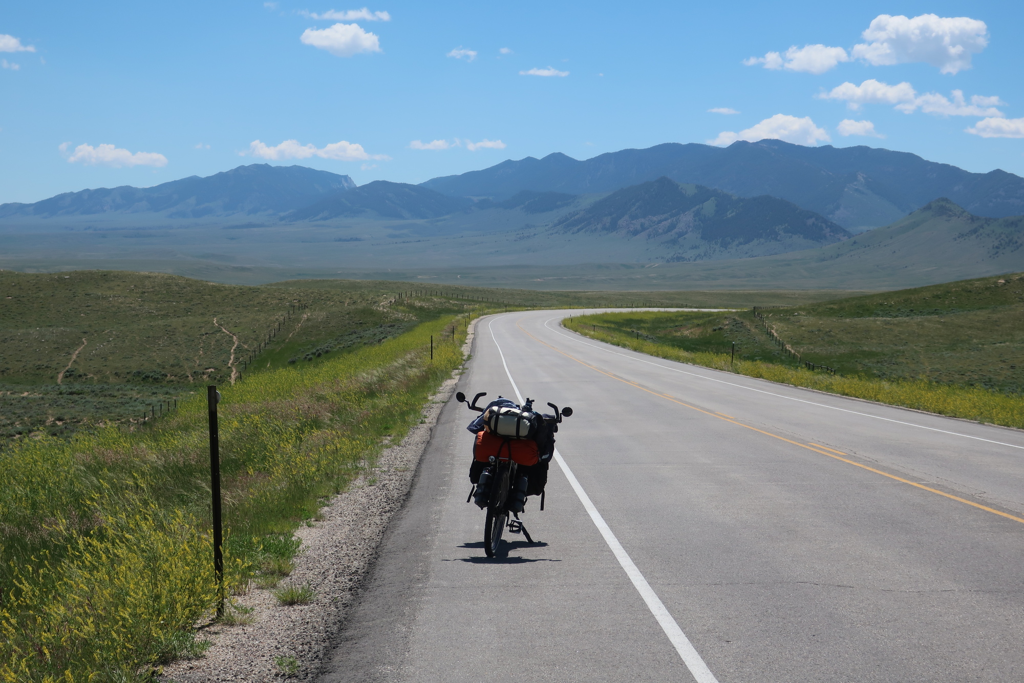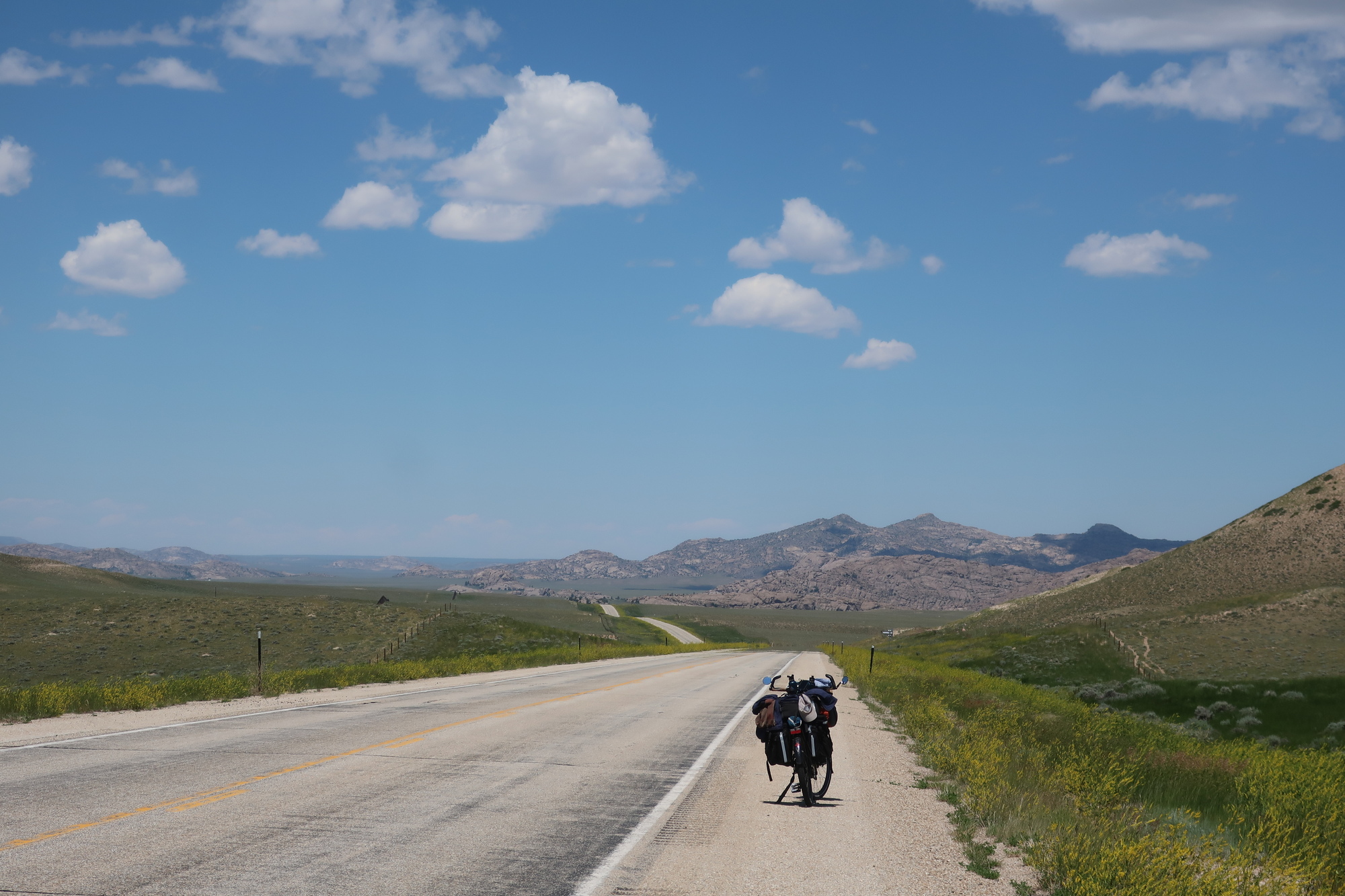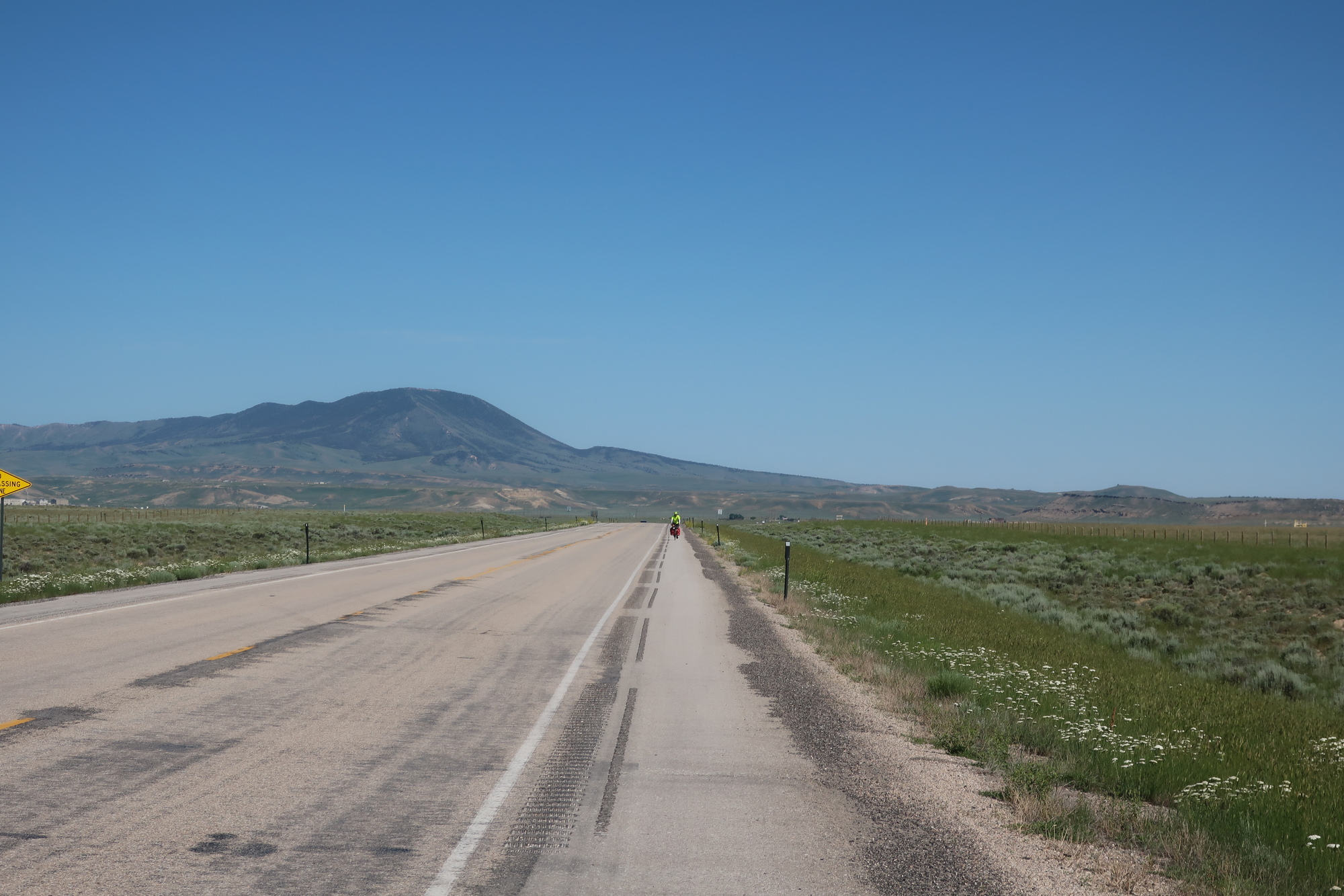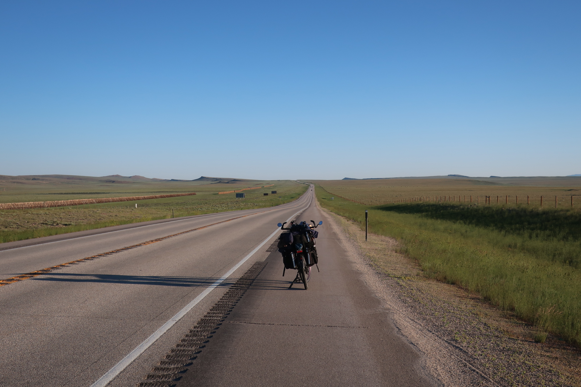 Yesterday evening I was joined at my tent site at the KOA by Spencer, a young engineer who’s riding the Transamerican route west. I’d say we’ve been leapfrogging together since we merged paths a few days ago in Walden, but that would imply I was occasionally in front. Spencer races bikes for fun and has an average speed twice mine, so that never happened. He got up early to beat the wind, I heard him rustling about at 4:30 and that motivated me to do the same. I was on the road before 5:30, stopped at the Kum and Go on the edge of town for a coffee and stale donut for breakfast and set out. The wind wasn’t bad until the last 15 miles but the scenery was nice so it didn’t matter. There isn’t a lot to Jeffrey City. A decrepit $90 cash only motel, a restaurant bar that at first glance looks like it’s been abandoned for years and a church with a basement unlocked for cyclists. The bartender and chef has to be in his late eighties and doesn’t give a fuck about anything. There’s food “if you want a sandwich”. He put the ingredients on a plate and told me to build it myself, said he didn’t want any complaints about how it was dressed. There were two guys scouting the town for a music video by a country artist who I don’t know but I gather is big by the way they told me his name (Branson?). Anyway, they are hoping to feature the bar and bartender in their video. I’d watch it.