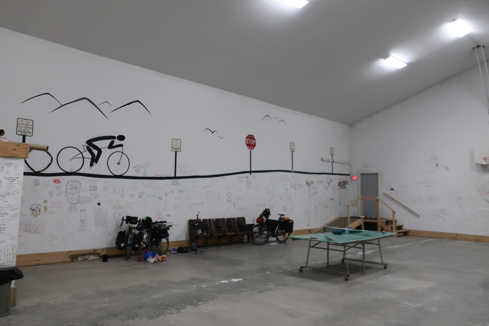 Tonight it is Spencer and myself. The walls are f covered with graffiti left by previous cyclists. The place must have been repainted in 2017, no entries are dated early. And zero from 2020