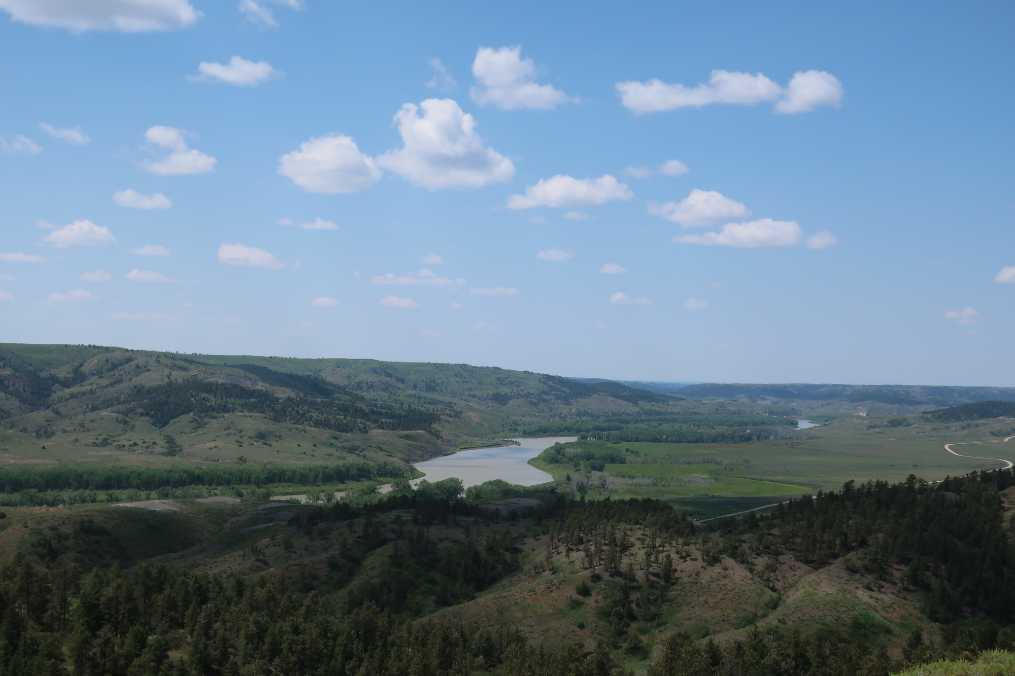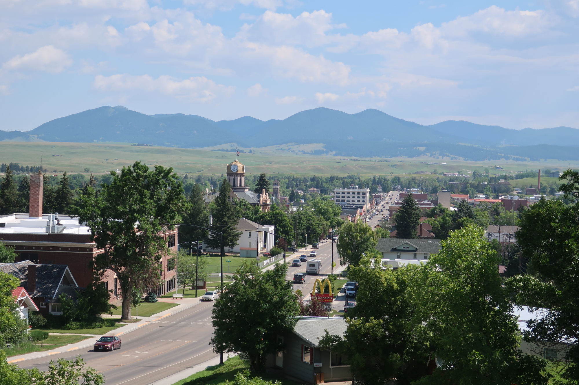 Al and Jo took me on a couple excursions. A pretty drive up to the spring that feeds the creek which runs through town, the Judith Mountains that are next to the town, and a visit to the American Prairie Reserve. The latter is an ongoing project to acquire sufficient contiguous prairie land to support the native prairie biome. Cows aren’t invited so local ranchers don’t approve, it’s a topic of high local interest. We’d hoped to view some bison, and while they did not materialize I did get a very good look at the land and was left deeply impressed. The prairie intimidates me. Except for in the very occasional river valley there are no trees, nothing but grassland extending to the horizon which is so far away in every direction. The lack of any potential shelter anywhere made me uneasy. I’m curious if I would have had the same apprehension if I’d driven here instead of cycling. I suspect not, certainly not as much.