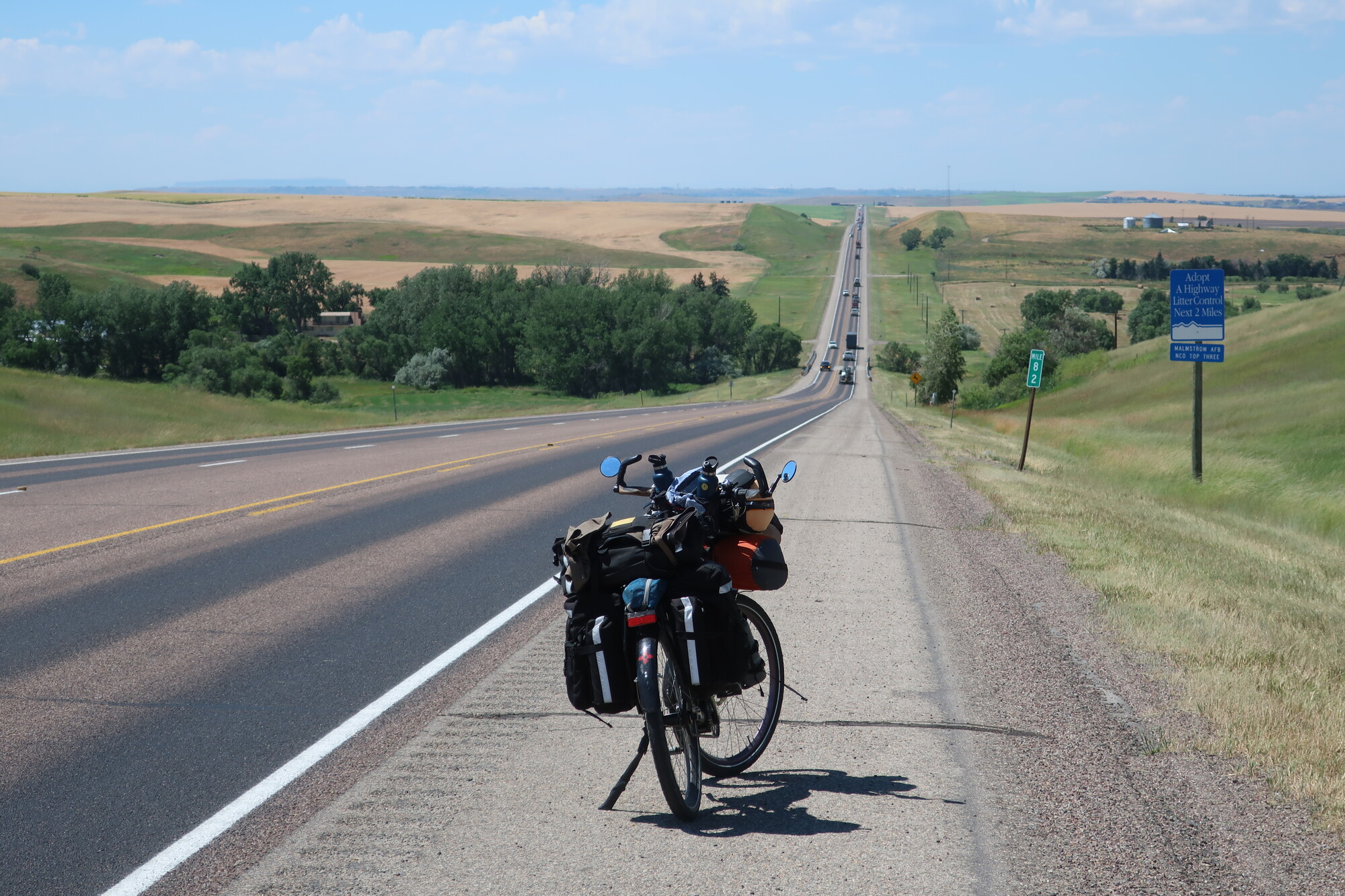 Not a lot of pictures today. I was at the bar at 6 am sharp for breakfast and on the road soon thereafter. I was hoping to beat the headwinds which were expected in the afternoon, and almost made it. But the bit that I caught was ferocious, I can’t recall struggling as much with the wind as I did today. But it’s past, and already the memory fades. I need new shoes and should probably get them here, but also want to leave early to minimize tomorrow’s wind. I’ll decide in the morning.