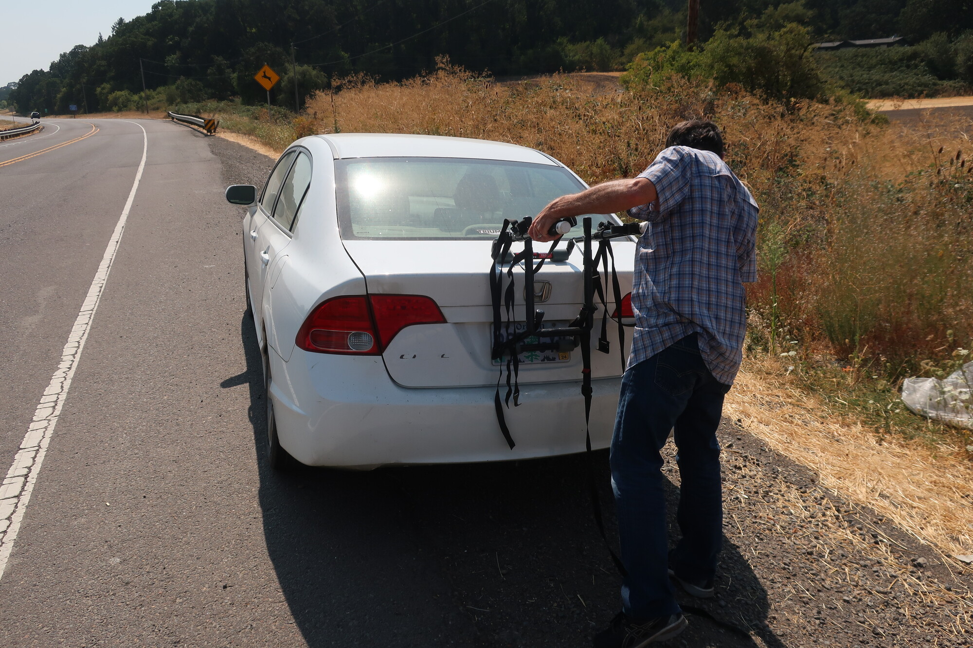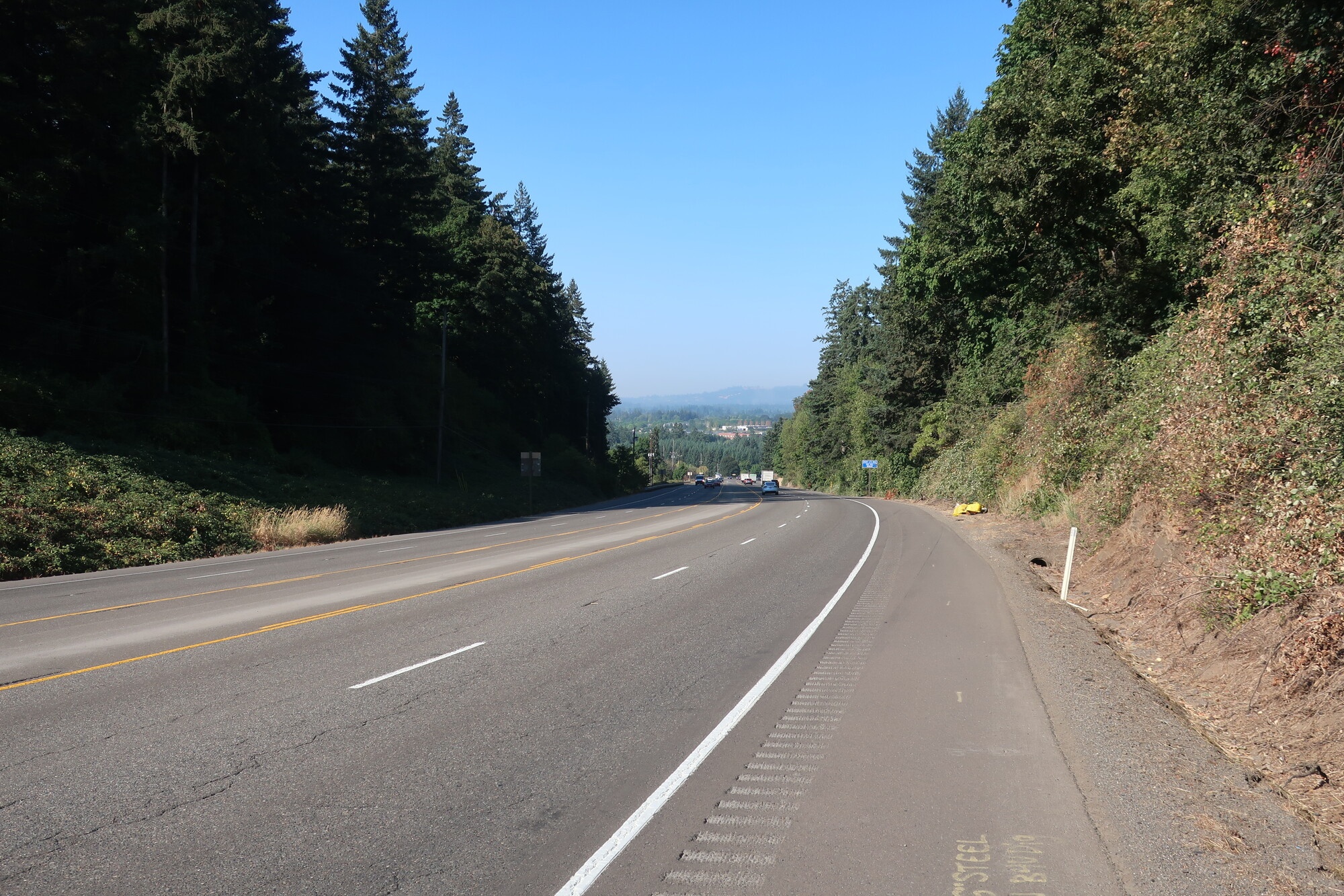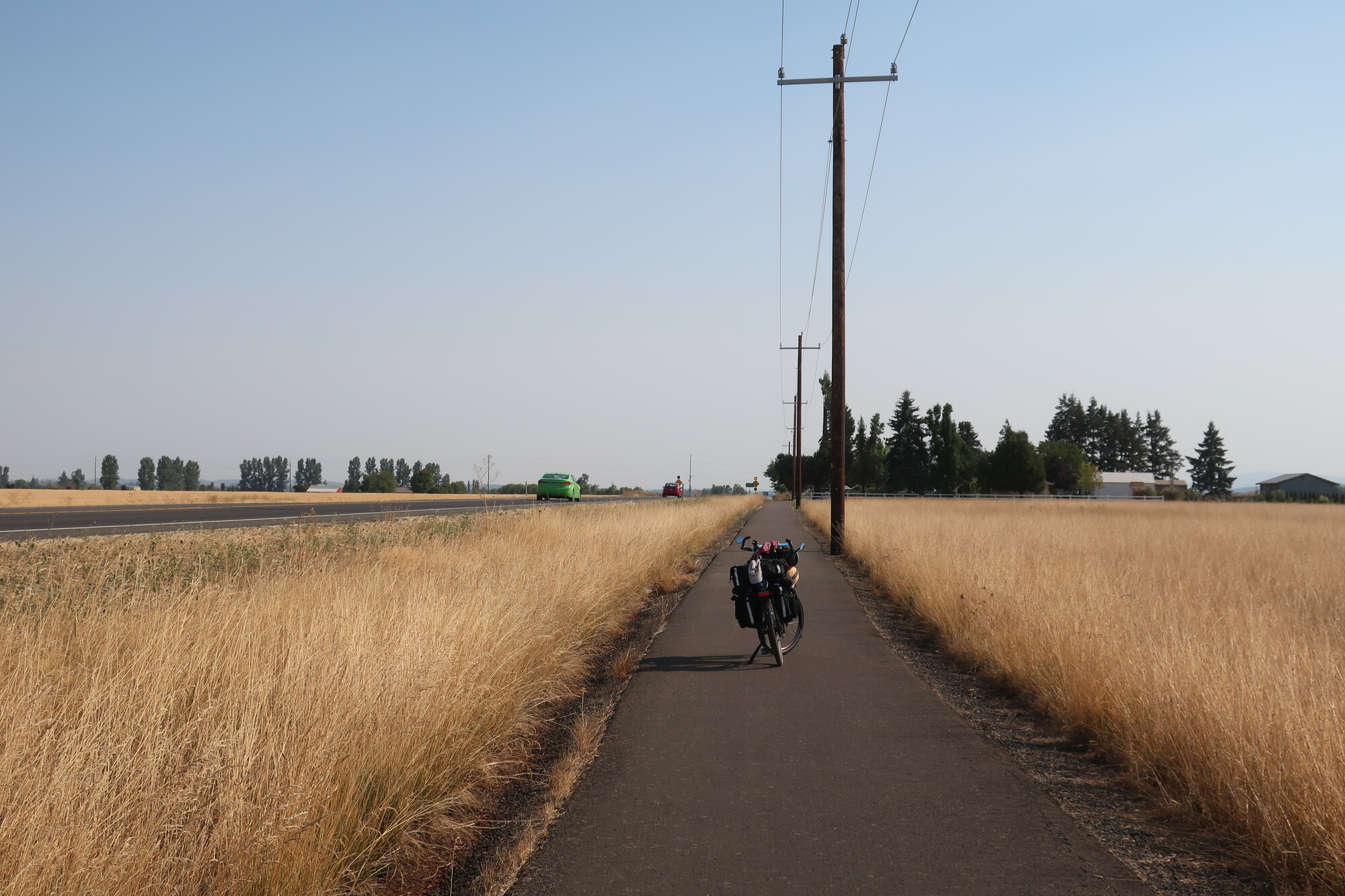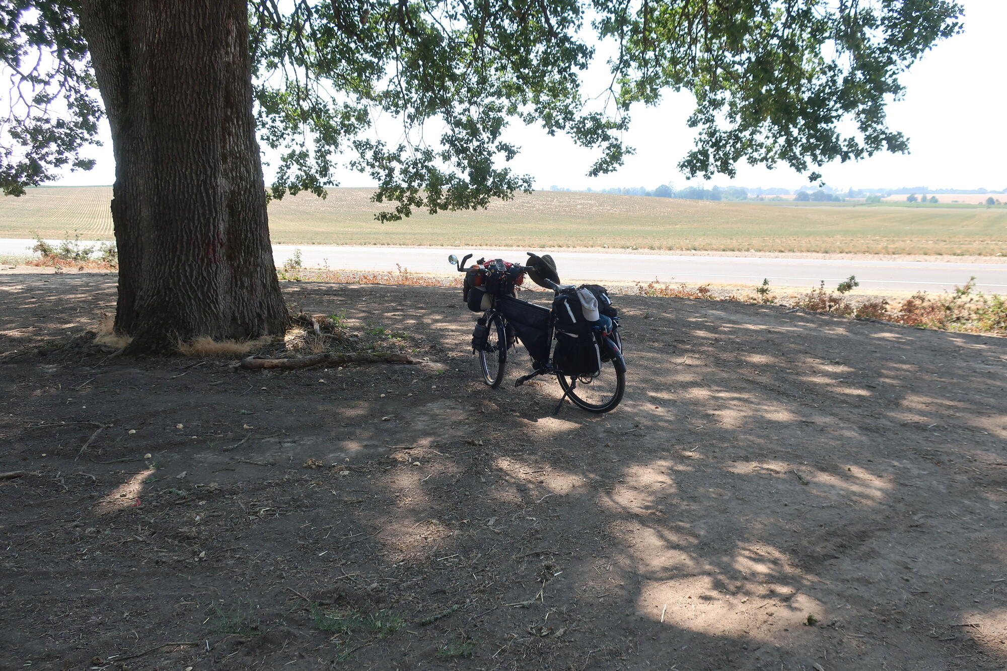 I was up and on the road before sunrise, motivated by the memory of yesterday’s heat. I was able to make it over the top of the only challenging climb of the day before things got really fierce, and treated myself to a long break in Newberg after I coasted to the bottom. I thought I was resting after a workout but what I was really doing was letting the last hour of tolerable temperatures go by without riding an inch. It got to be over 100 and the heat coming off the asphalt was soul sucking. While in Newberg I booked a motel in Monmouth, giving me an air conditioned target to aim for and which I am relieved to have reached. Things are supposed to not get nearly as hot tomorrow and pleasant after that and I’ll be done talking about the weather.
