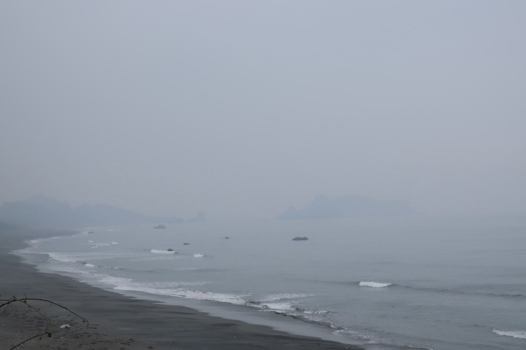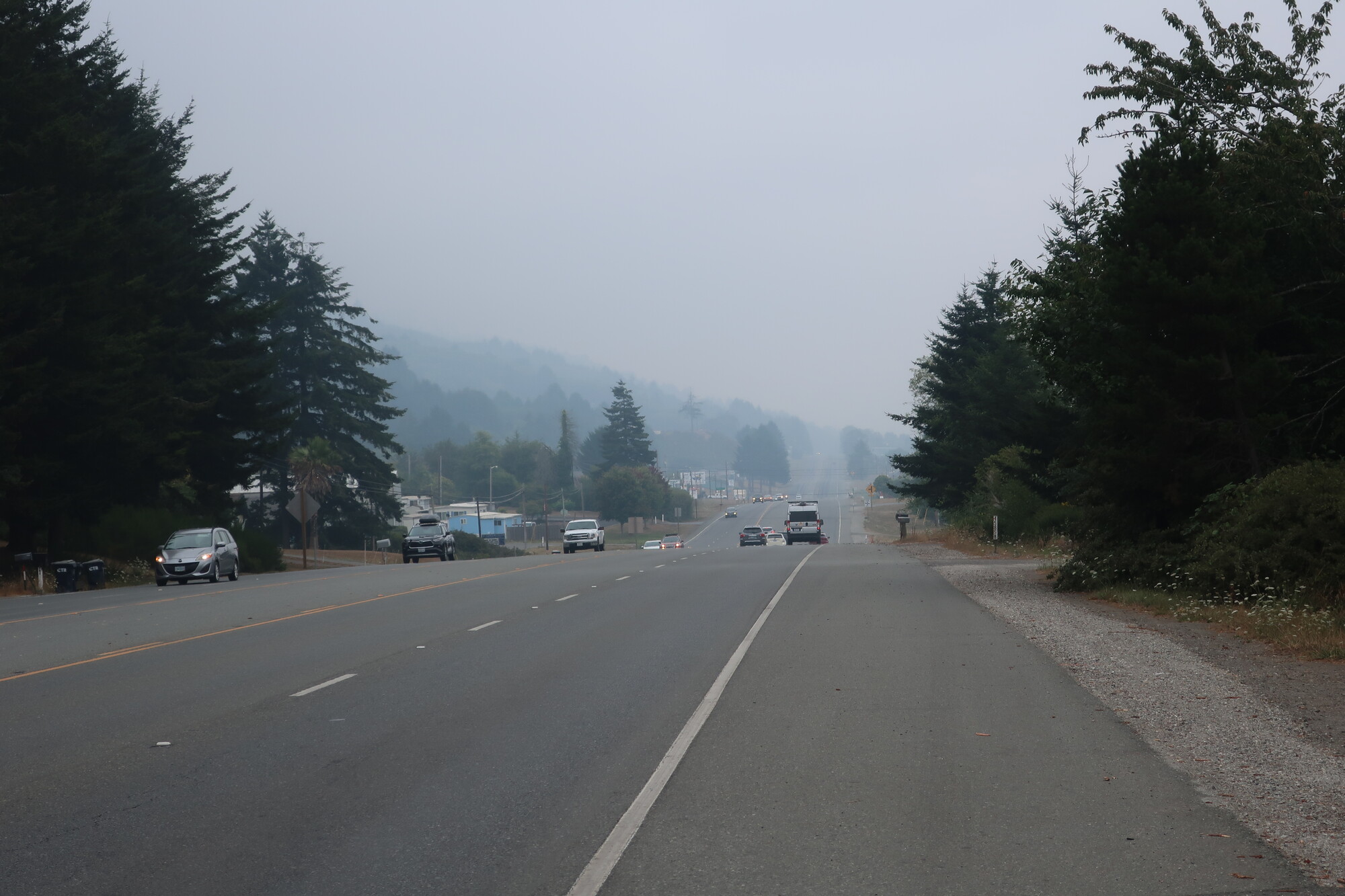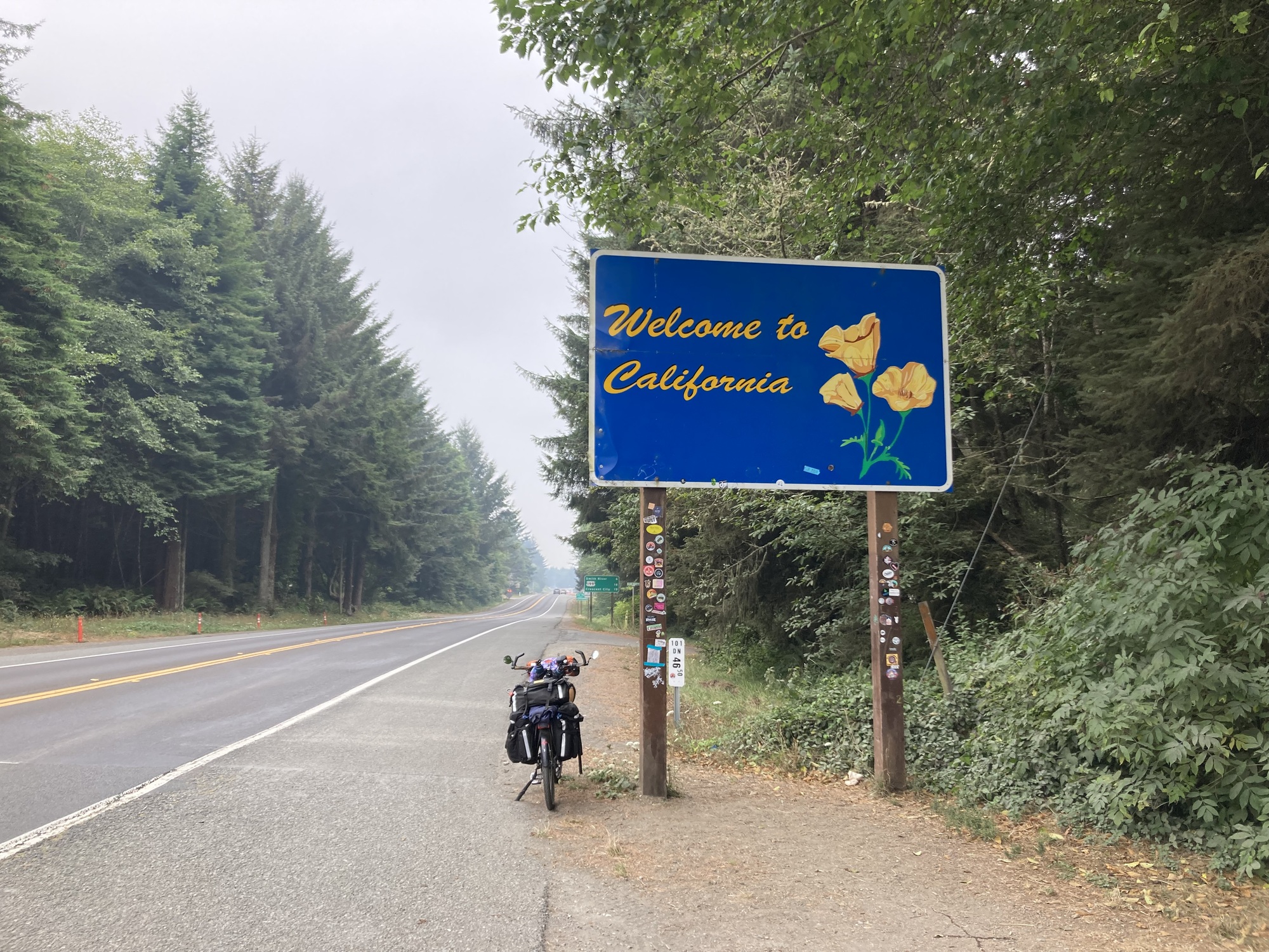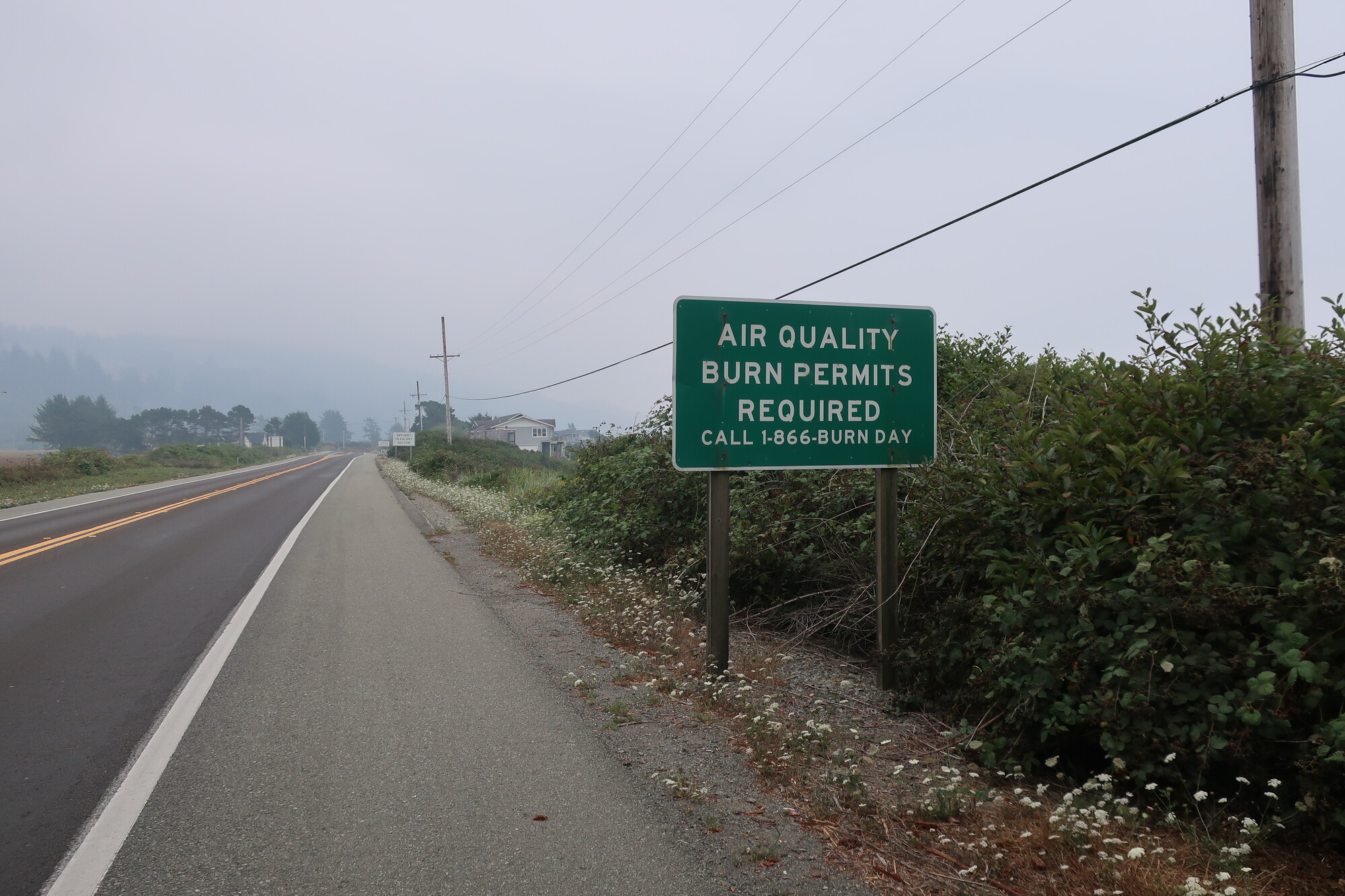 I didn’t get out of my tent until late, having decided in the night that I’d stay another day, have a leisurely breakfast in town, do laundry, find all I needed at Fred Meyer’s and give the air another day to clear. None of that happened. All the independent restaurants I remember being in Brookings seem to have remained on the other side of the pandemic, the laundromat never opened, and Fred Meyer’s was sorely lacking in bicycle appropriate camping gear. I studied air quality maps as I munched my McGriddle and decided that waiting for the smoke to clear was a fool’s errand and returned to the campground, packed up and left at noon. A very late start but I wasn’t going far. I’d heard through the grapevine that there was a church in Crescent City that hosted cyclists, googled around and found St. Paul’s Episcopal, where I’ve got the entire auxiliary to myself and a sofa to sleep on.