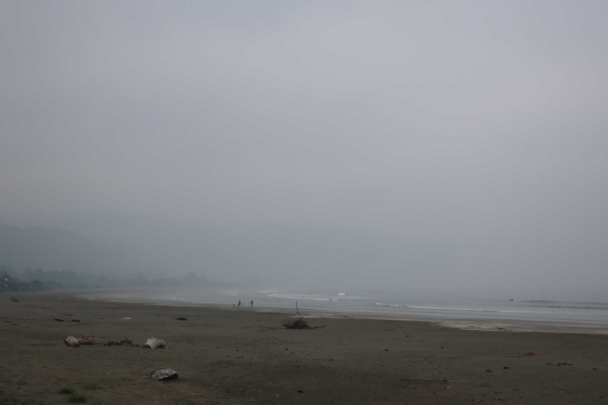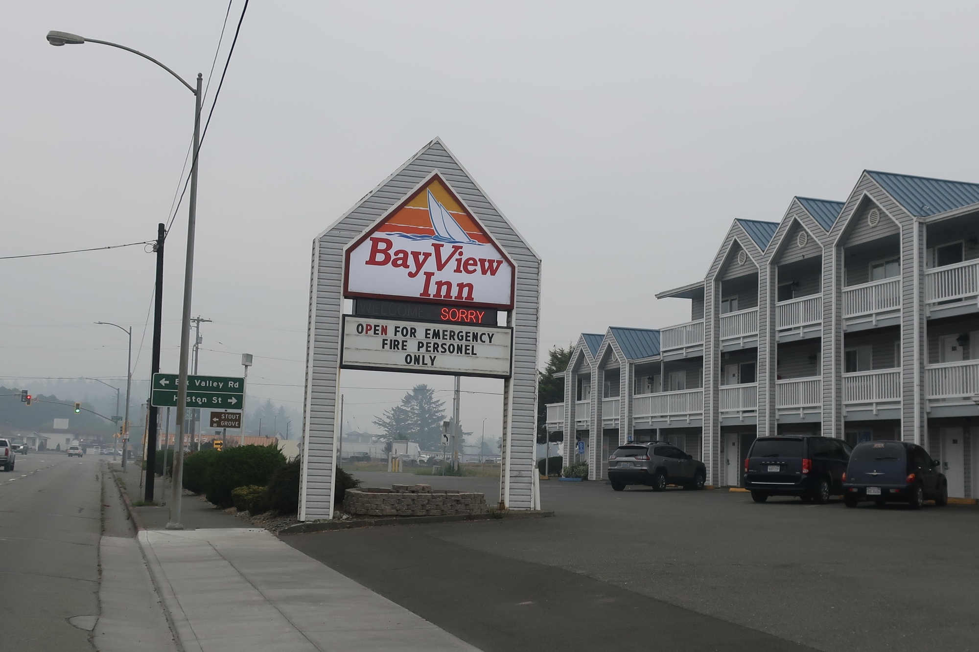 While googling a breakfast restaurant I discovered there’s a Walmart in town, rode over and scored a decent air mattress which I can carry on my bike. My mood lifted immediately and immensely, just knowing I have a comfortable end point makes any intervening unpleasantness easy to dismiss. So even though the morning air was the worst I’ve seen to date, I left town in high spirits knowing it was only going to get better. I stopped to take a picture of the gloom and while doing so, coughed. And when I did I somehow tensed up in a way that absolutely destroyed my right leg. I’d never felt such pain, ever. I yelled involuntarily, I could not stand. I flagged down a truck with a pair of painters on their way to work and they took me and my bike to the local ER where I was X-rayed and diagnosed with an inflamed arthritic hip. I got a shot of ketorolac which made the pain subside considerably and am fully mobile again. This is different from the overdeveloped quad pains I was dealing with earlier and which have largely subsided. I’m taking two days off to see what happens next. Fortunately I’m welcome to stay at the church, there’s not much else available with all the firefighters in town.